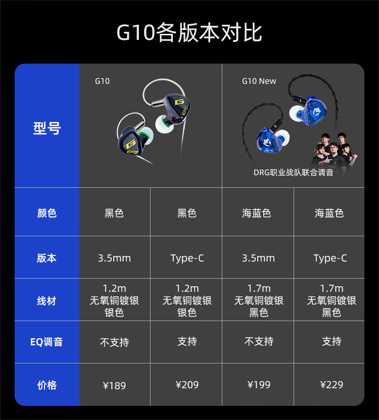 EPZ g10 【职业战队调音】游戏耳机入耳式 有线耳机电竞吃鸡 听声辨位降噪麦克风电脑耳麦type-c耳机 新款【海蓝色】1.7米有麦 type-c版+送USB
