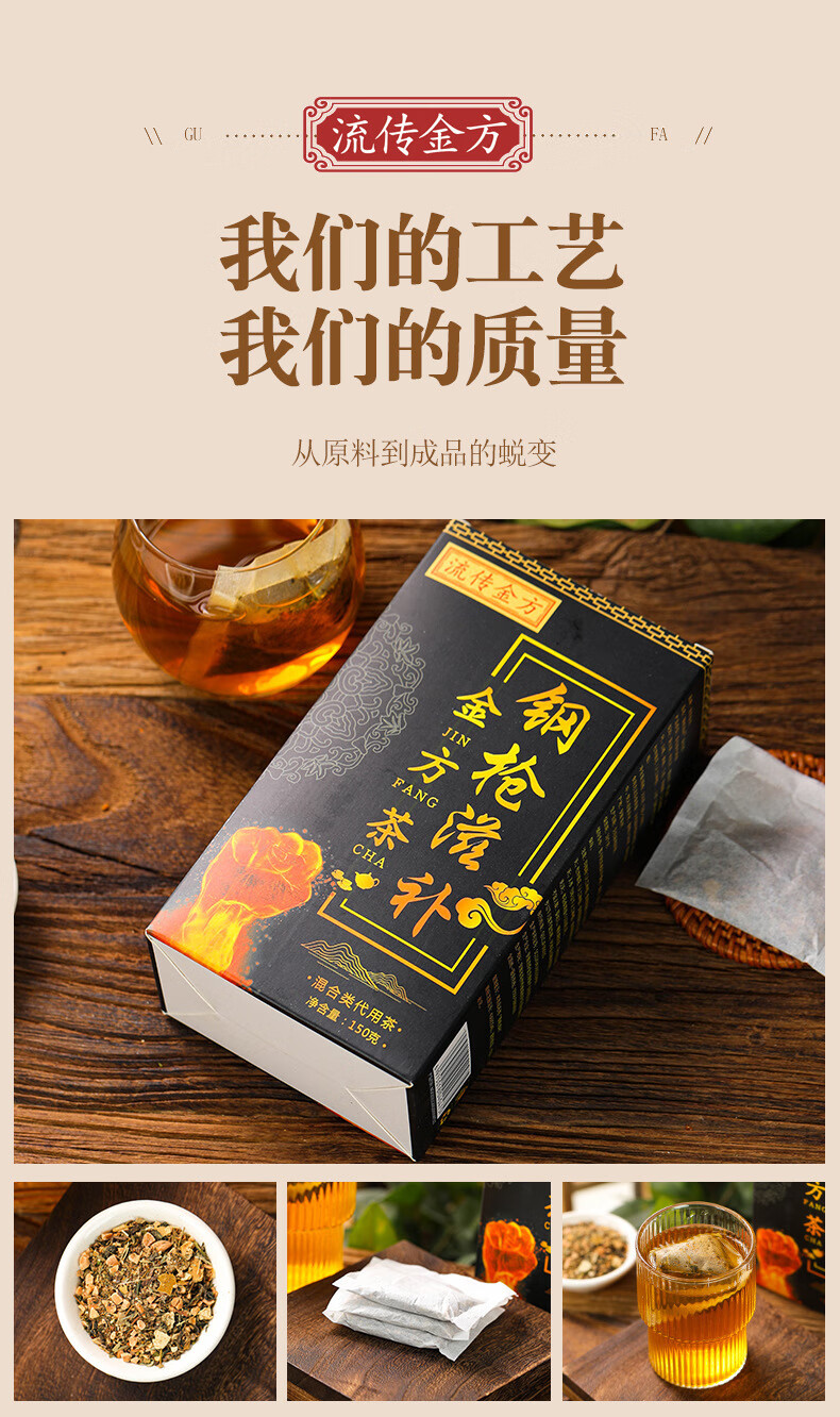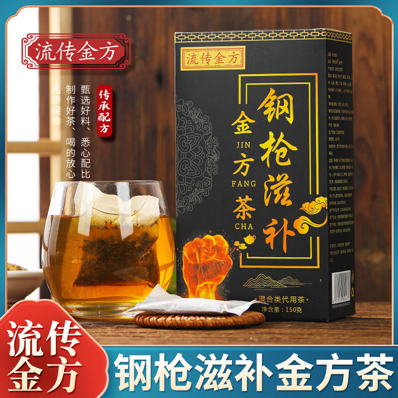 流传金方钢枪滋补金方茶 人参黄精杜仲雄花男宝茶茶袋泡花茶 钢枪滋补金方茶 (盒装袋泡茶150克)