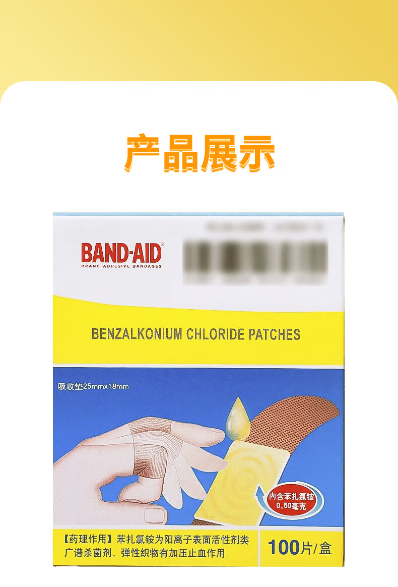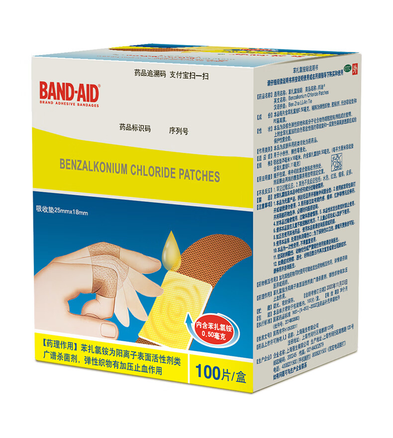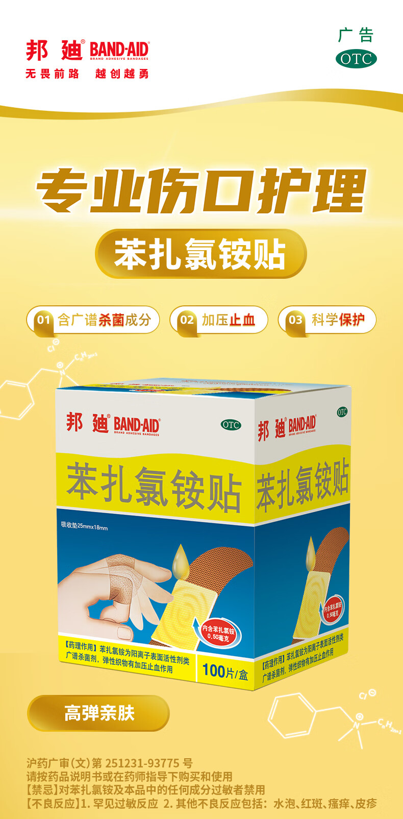 【原研药】邦迪创可贴100片强生家用创口贴苯扎氯铵贴杀菌透气无菌敷贴邦廸止血贴防磨脚贴弹性凑单常备药