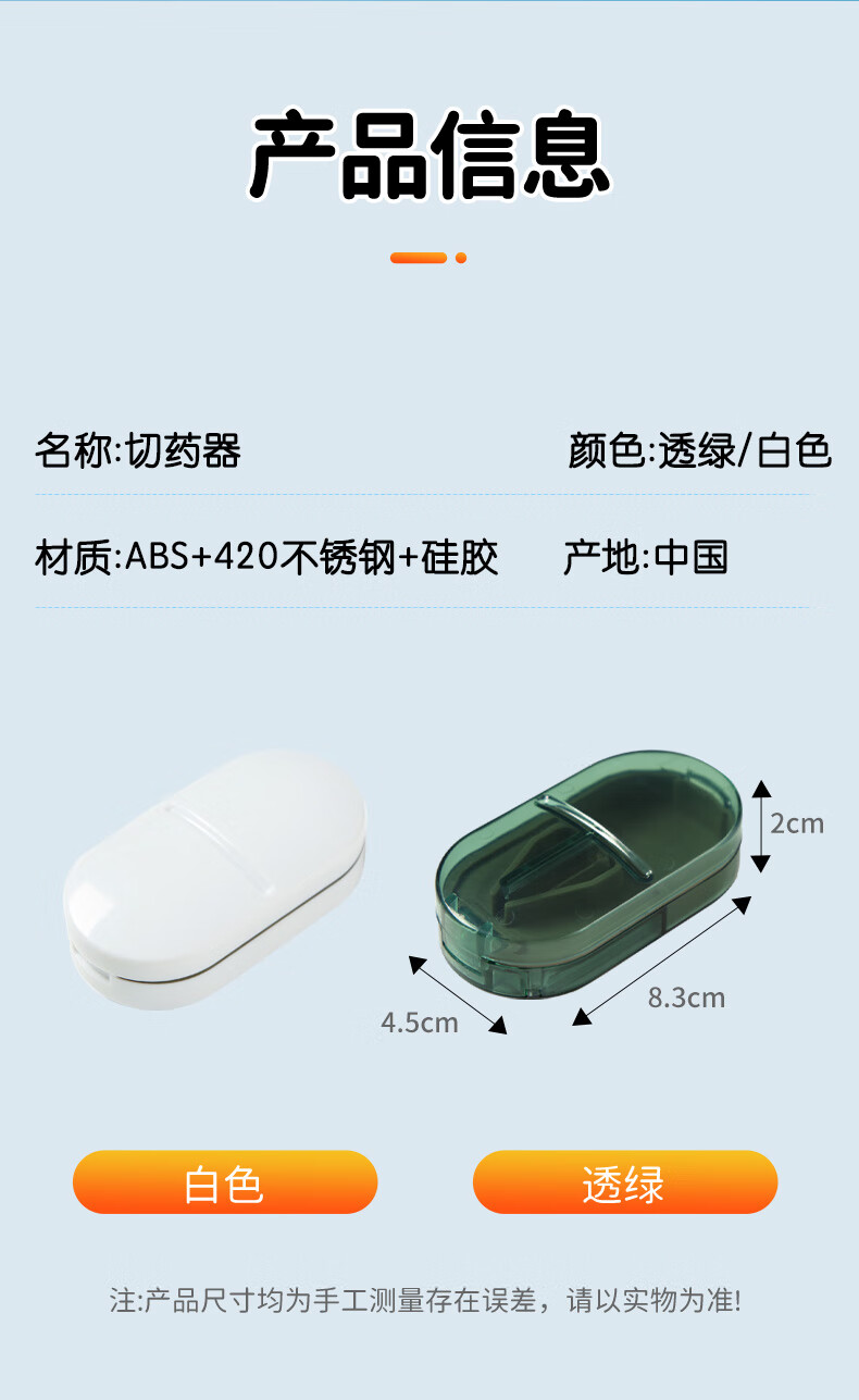 瑞合锦切药器分药器一分二四分之一药片分割神器药品分装白色qyq003