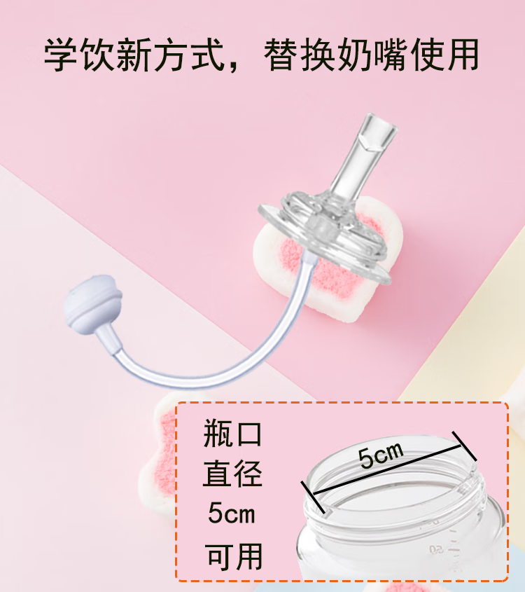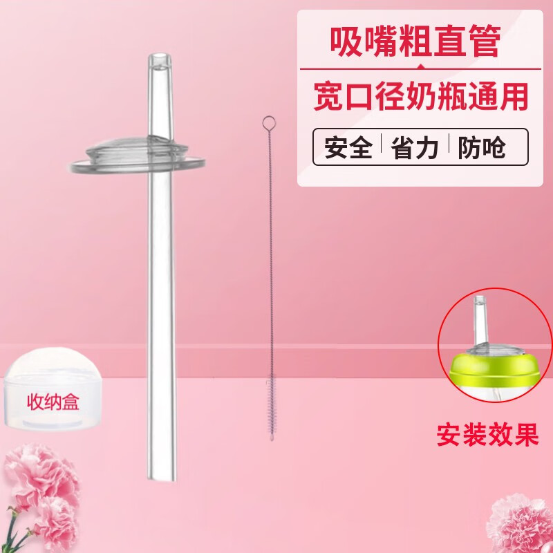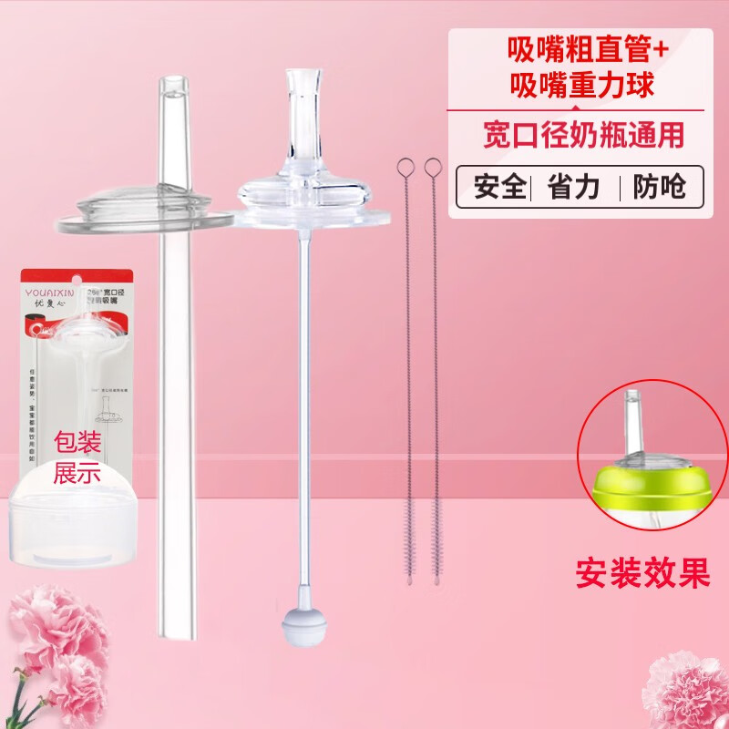 优爱心(YOUAIXIN)奶瓶吸管配件 适用呗亲奶瓶配件吸管直饮嘴 吸嘴鸭嘴重力球 鸭嘴水杯头手柄吸管6件套白色