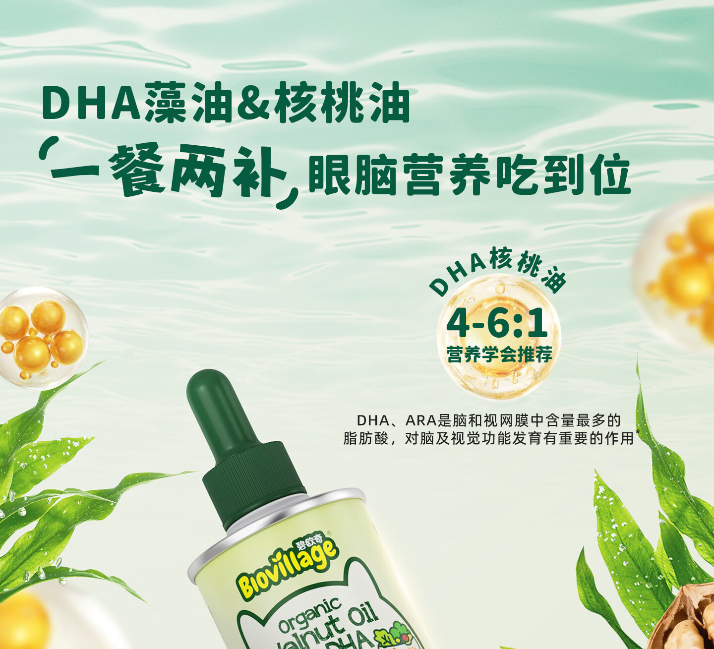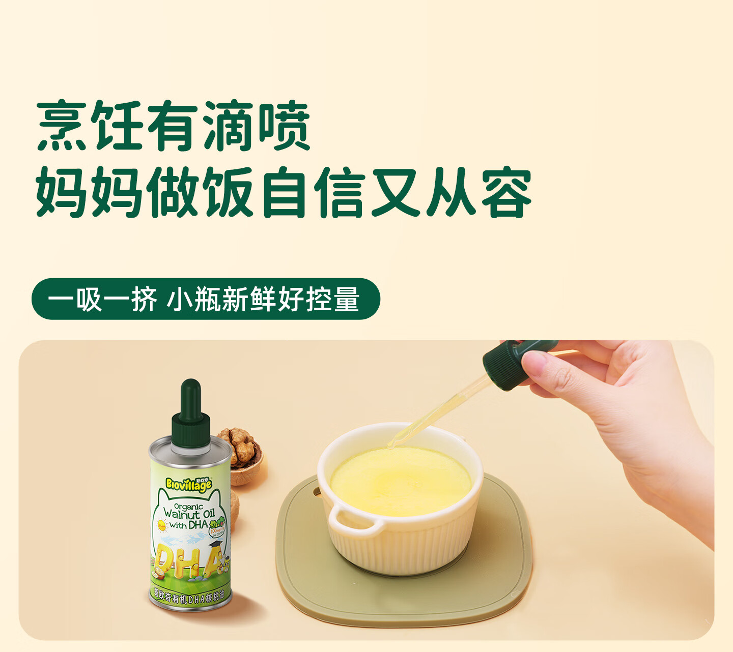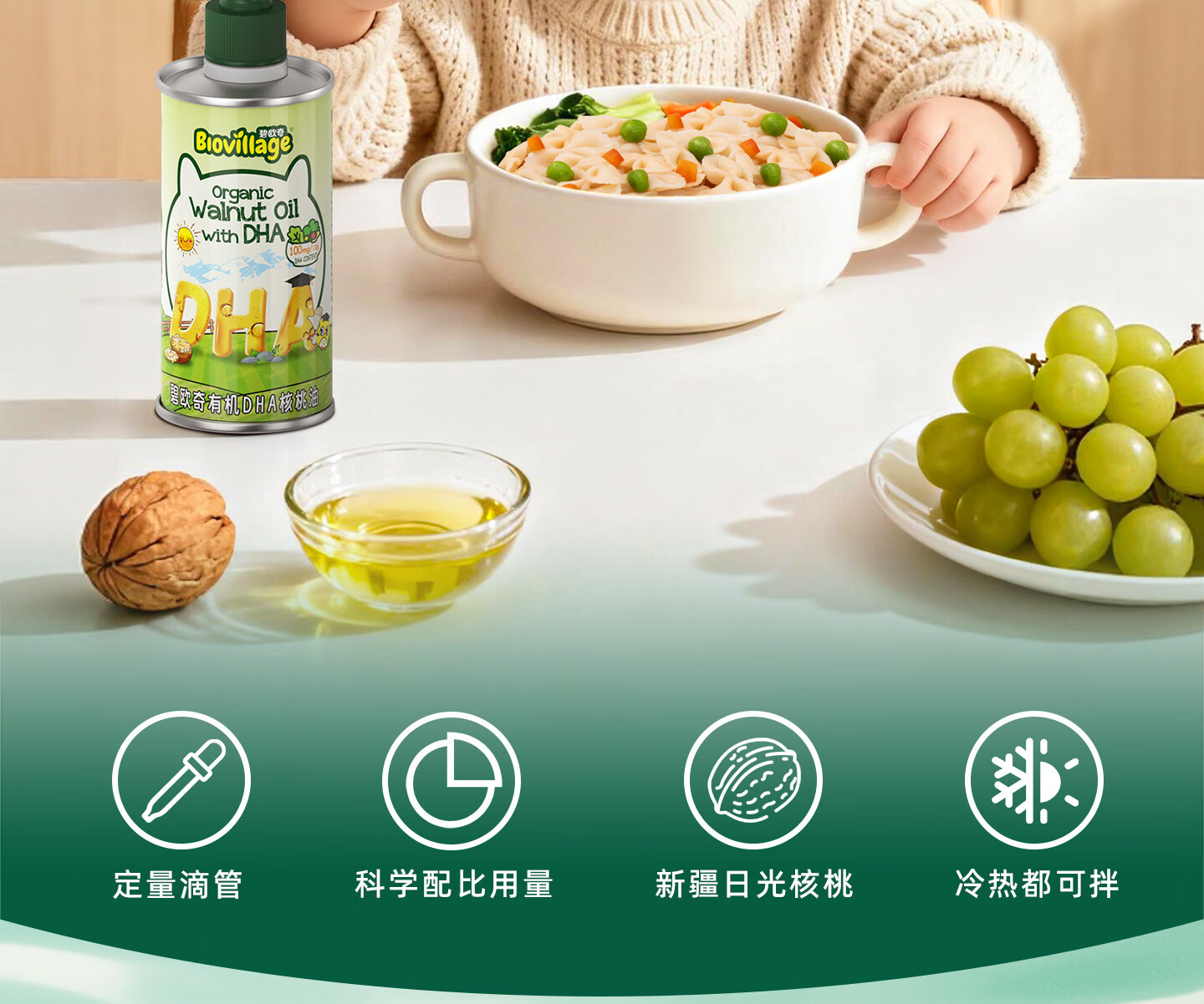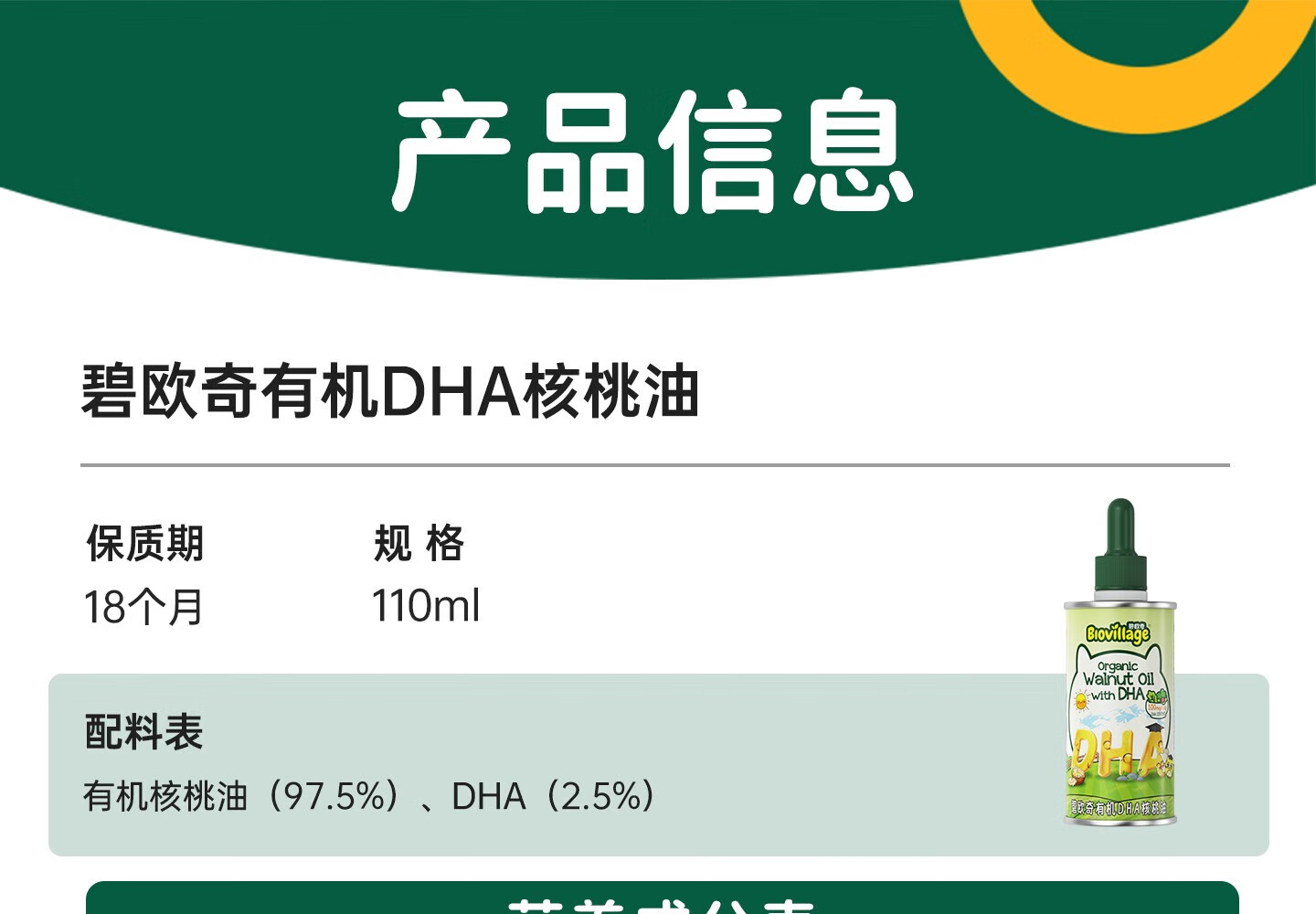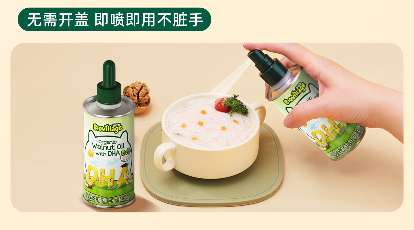 碧欧奇有机DHA核桃油滴管控量营养辅食油6个月以上送宝宝婴儿食谱 有机DHA核桃油110ml*2