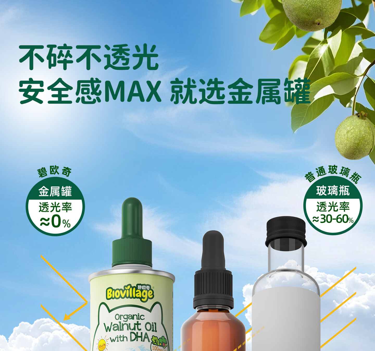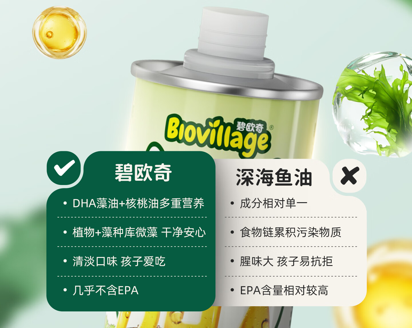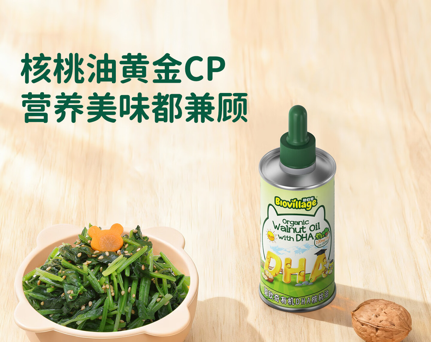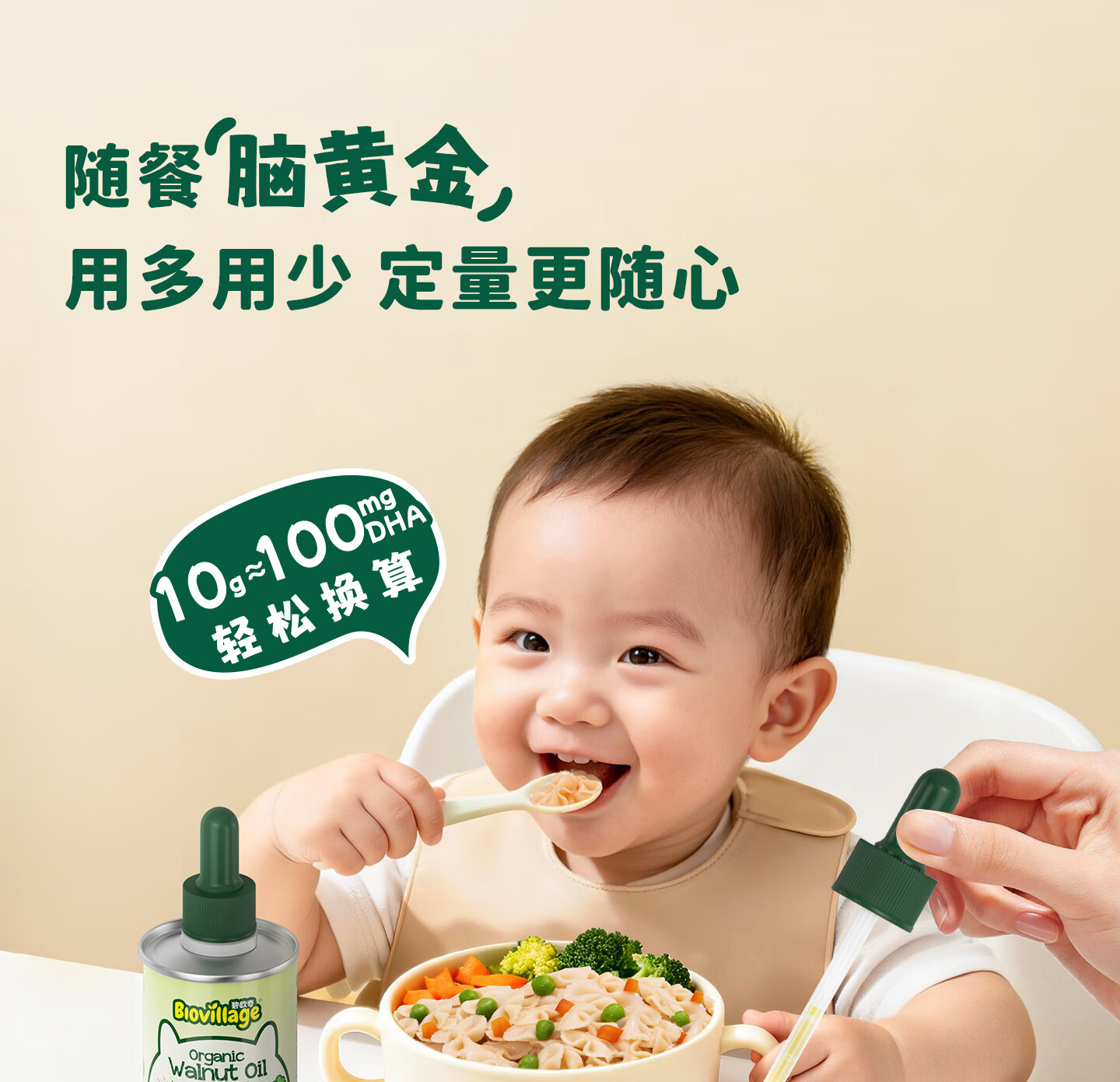 碧欧奇有机DHA核桃油滴管控量营养辅食油6个月以上送宝宝婴儿食谱 有机DHA核桃油110ml*2
