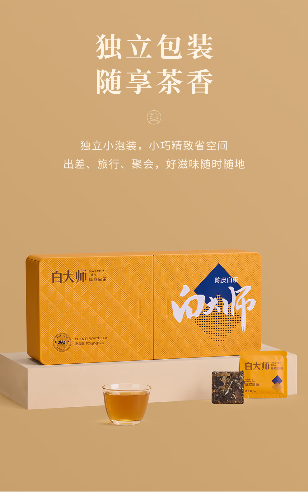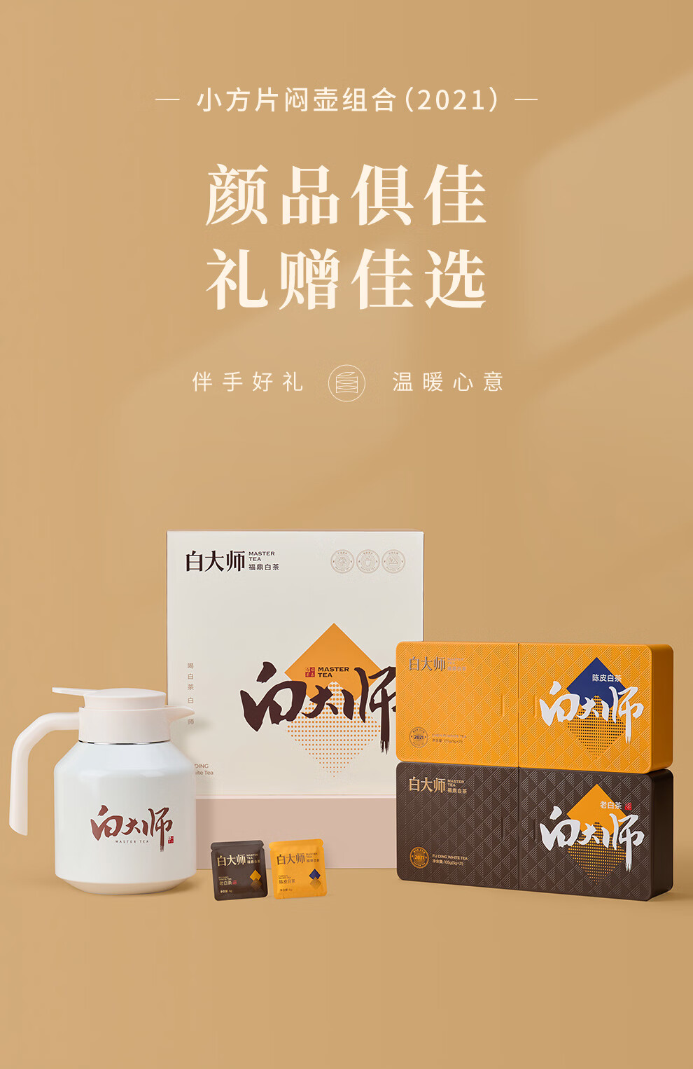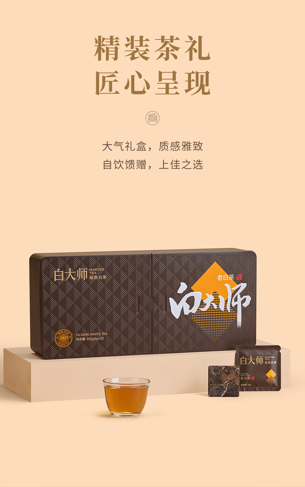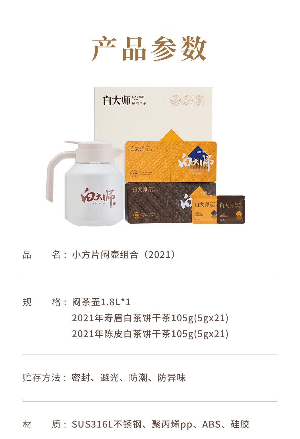 白大师白茶福鼎白茶闷泡壶2021年陈皮白茶寿眉小方片茶叶礼盒415g