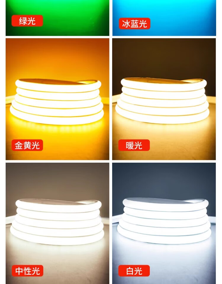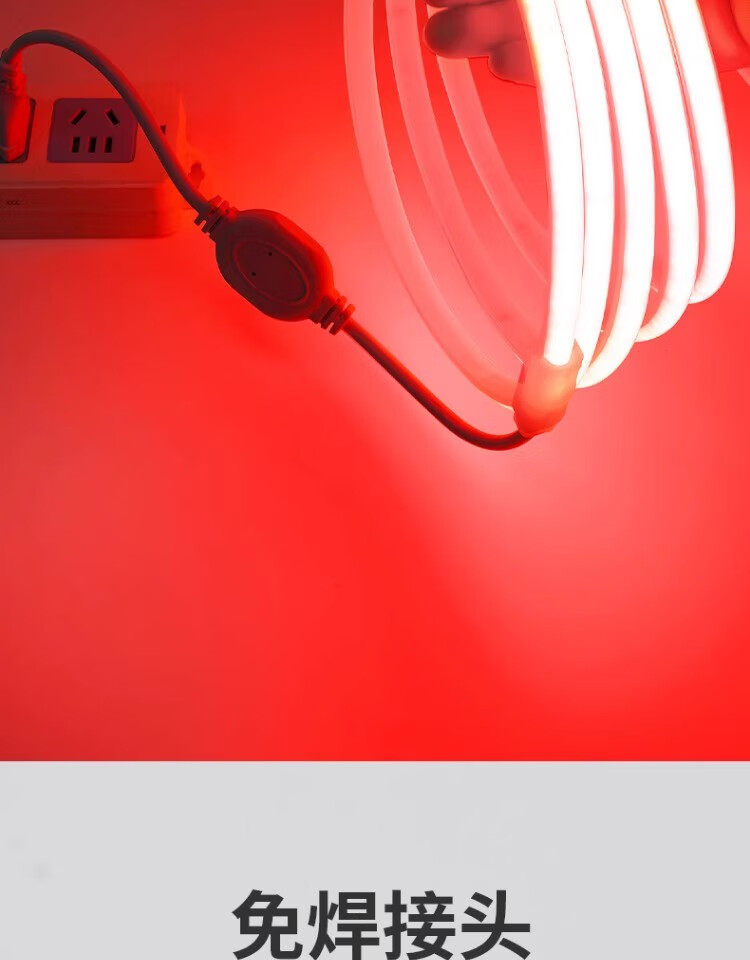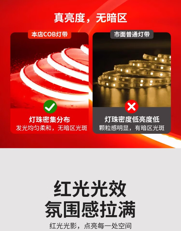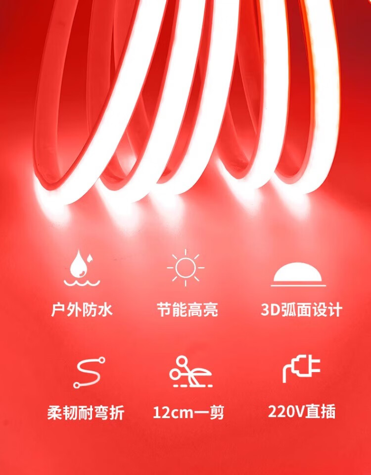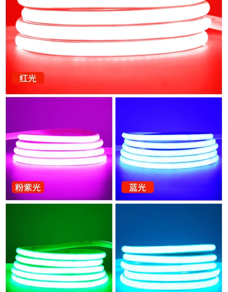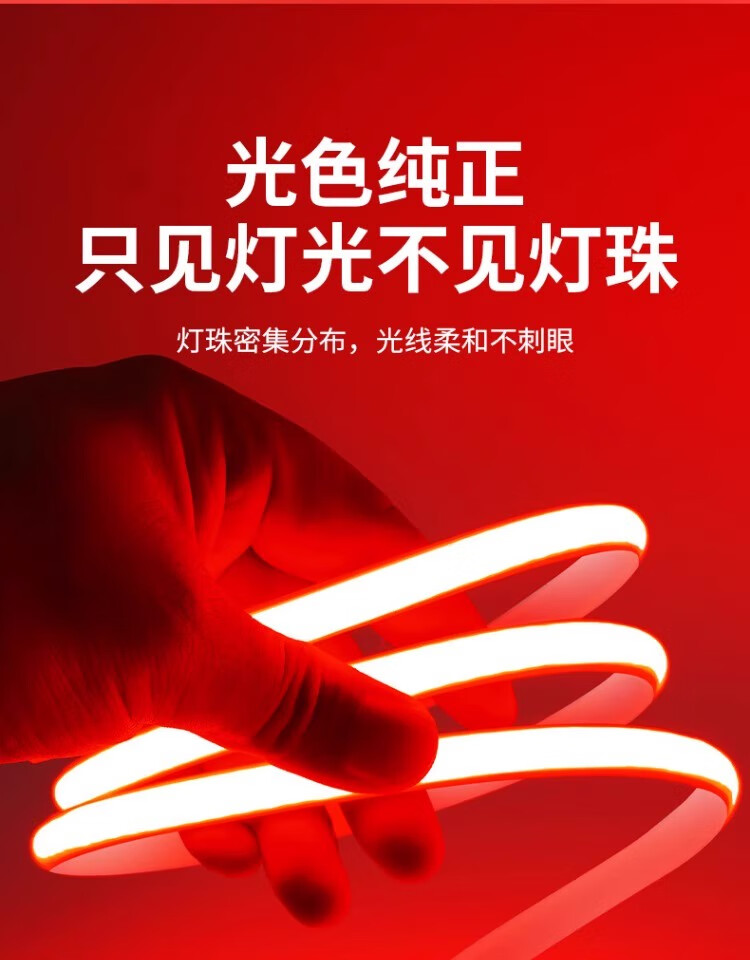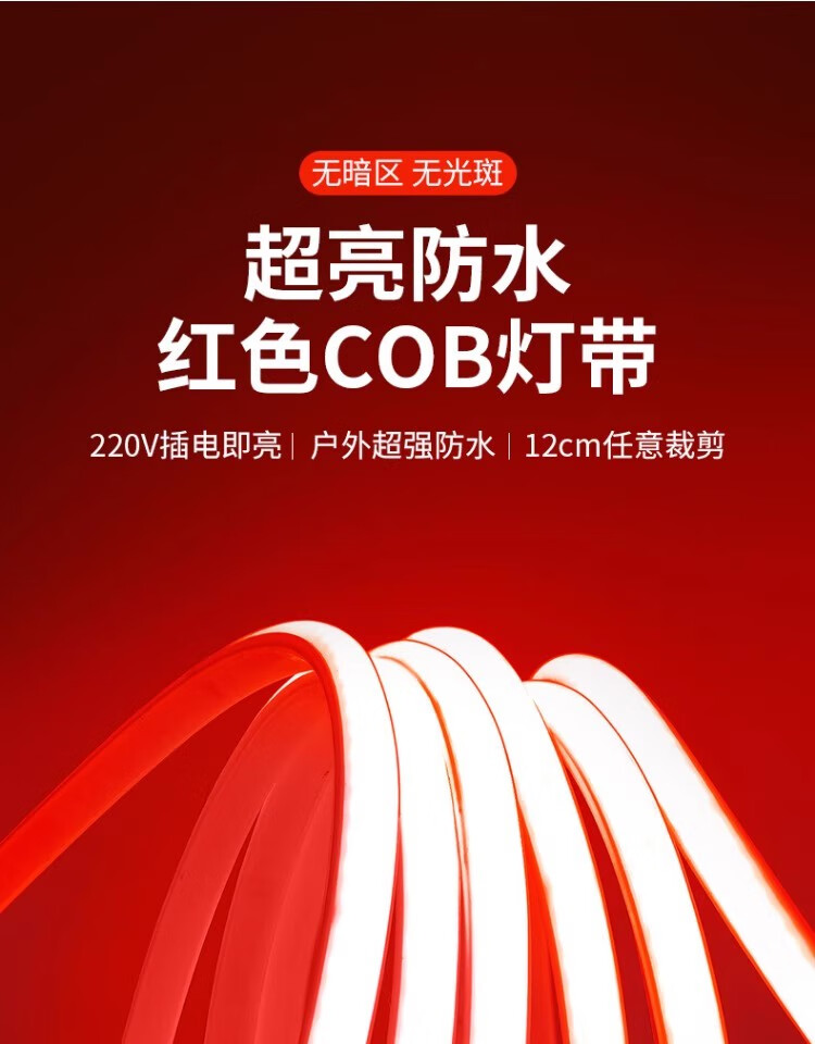拉伯塔红色COB硅胶灯带led灯条自粘户外防水广告招牌节日装饰红光氛围灯 220VCOB灯带【5米装】红光 送插头-自带背胶