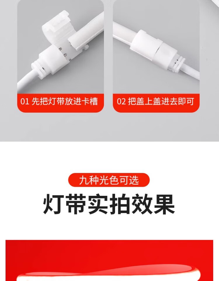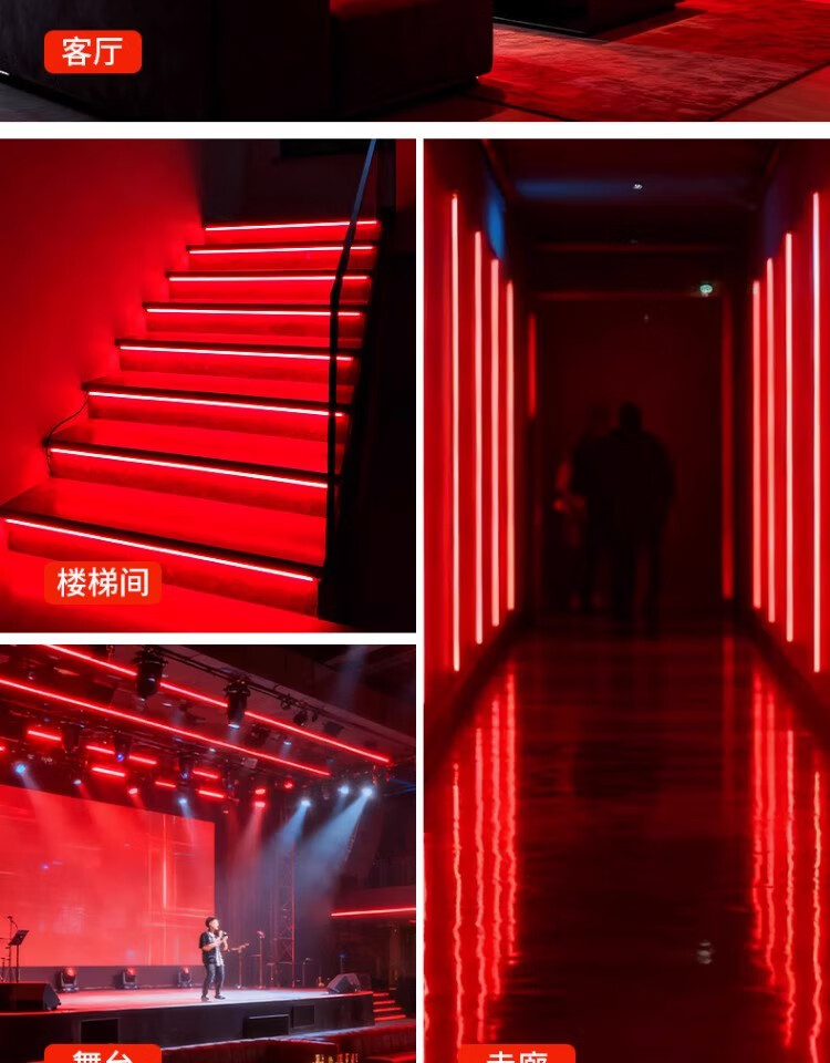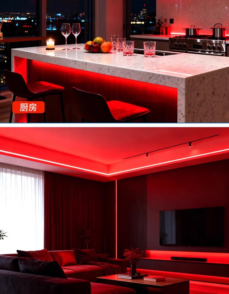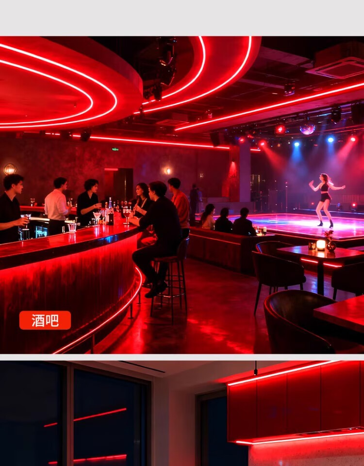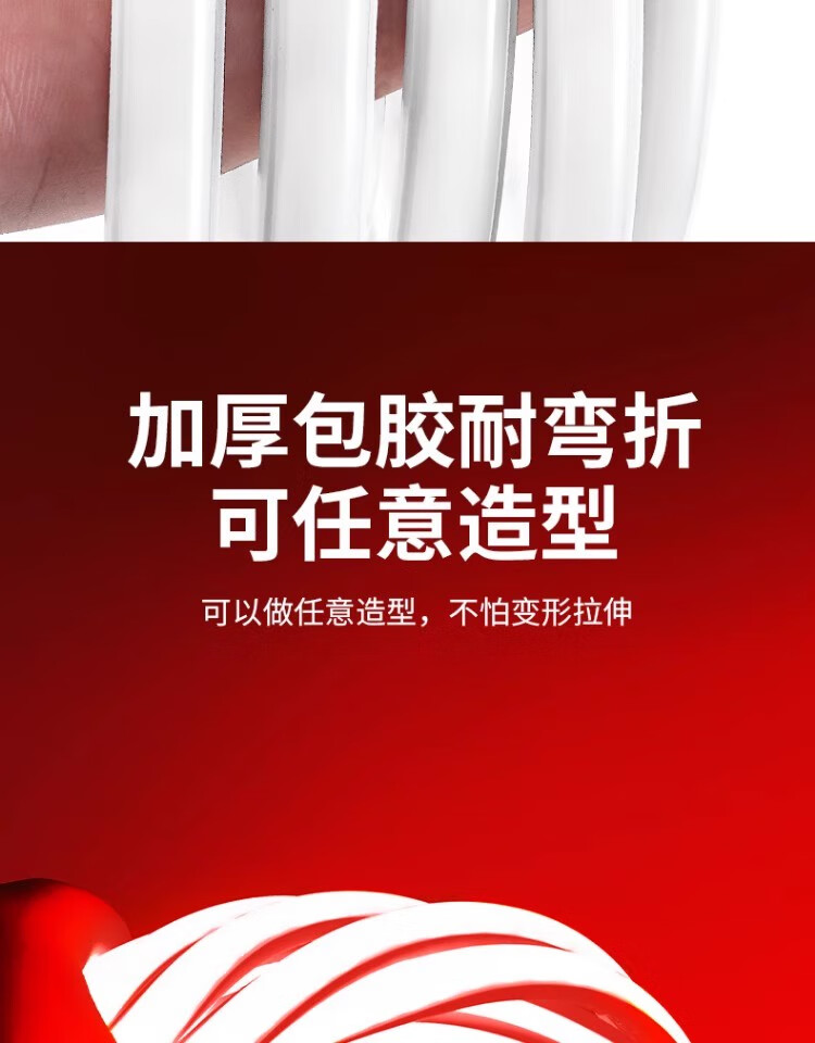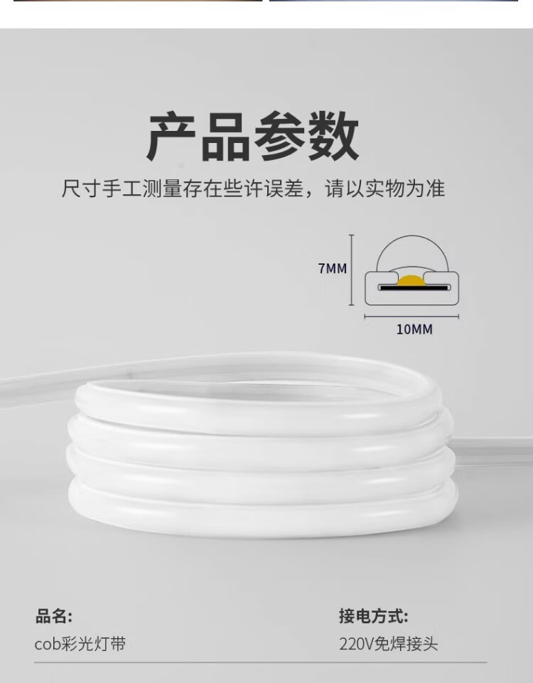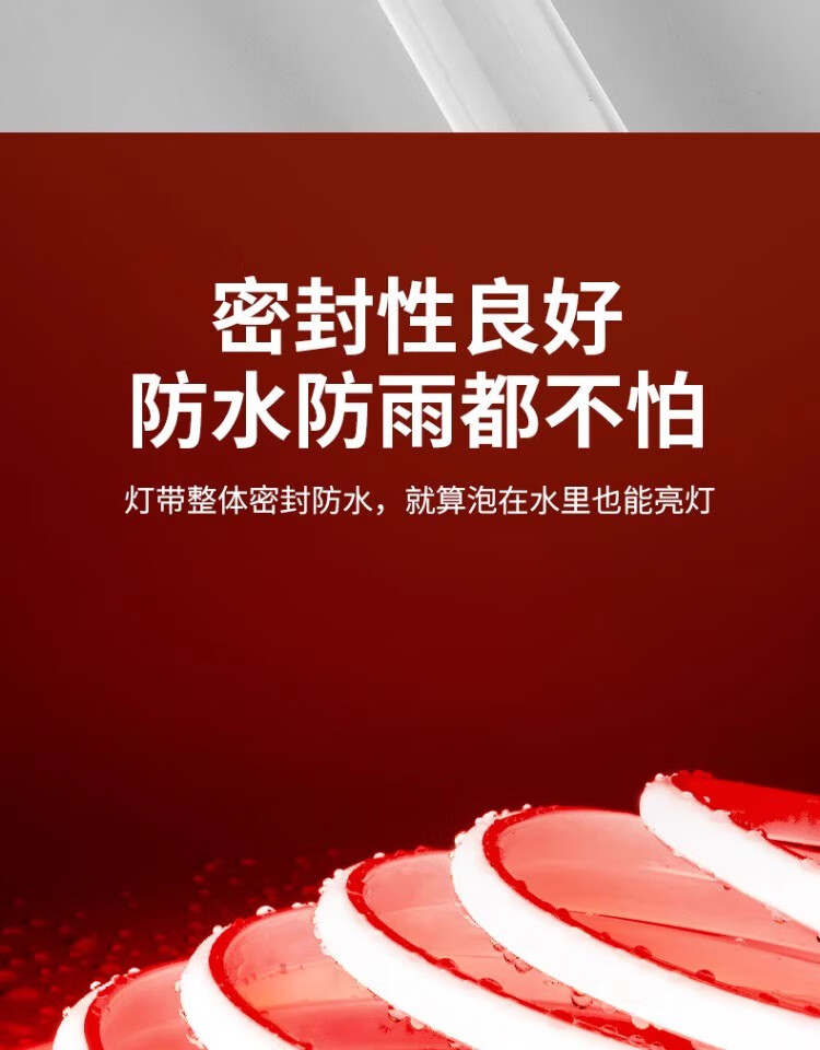 拉伯塔红色COB硅胶灯带led灯条自粘户外防水广告招牌节日装饰红光氛围灯 220VCOB灯带【5米装】红光 送插头-自带背胶