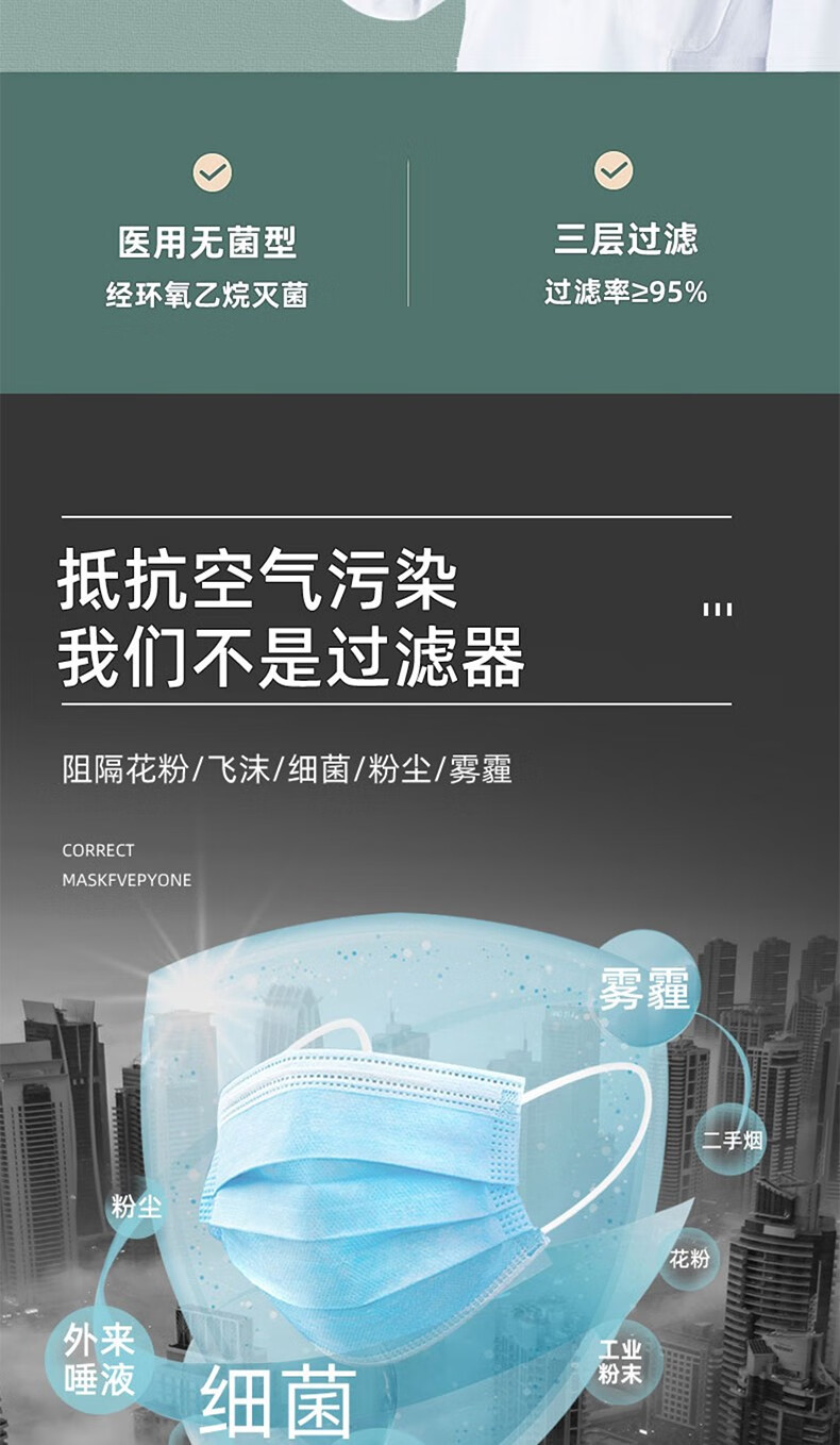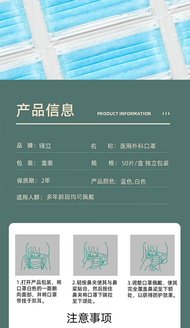 锋立医用外科灭菌级口罩独立包装一次性医用口罩防尘男女成人儿童学生 【灭菌医用外科】独立装100片-蓝