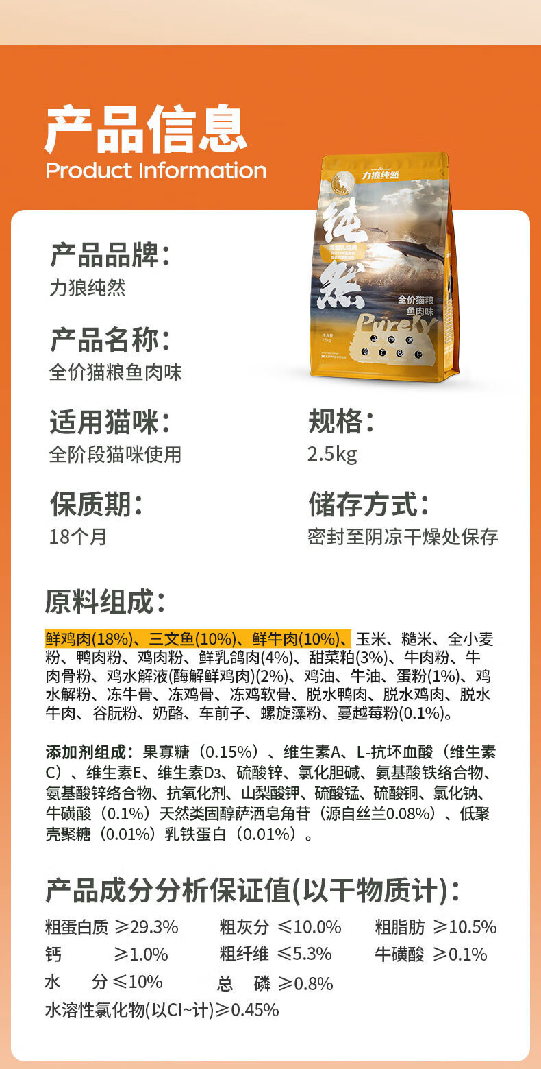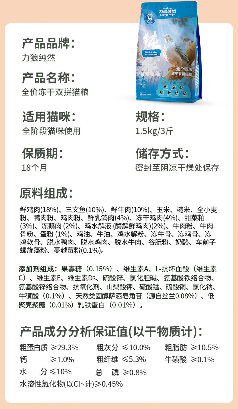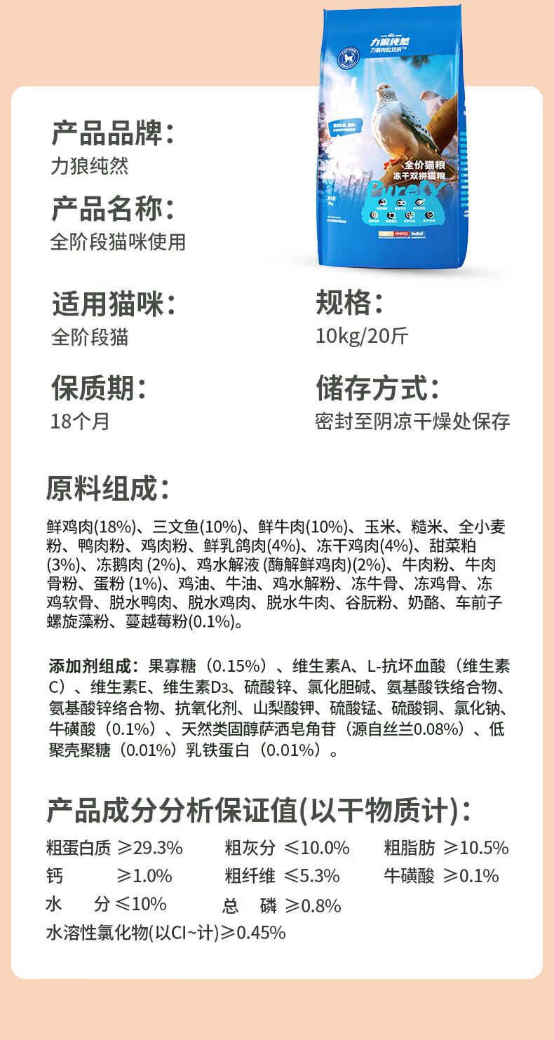 力狼猫粮 成猫幼猫通用型天然粮 【美毛护胃-更划算】鲜鸡鱼乳鸽10kg
