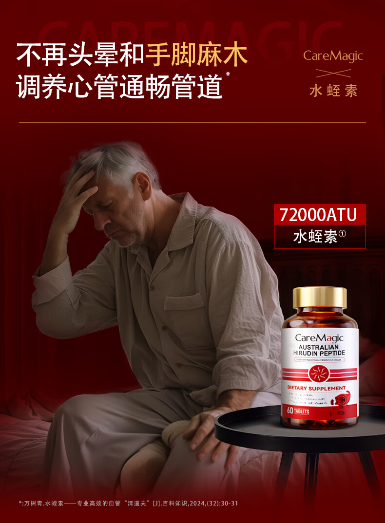 CareMagic澳洲水蛭素片纳豆激酶高血压降血脂甘油三脂中老年送礼60粒*1瓶