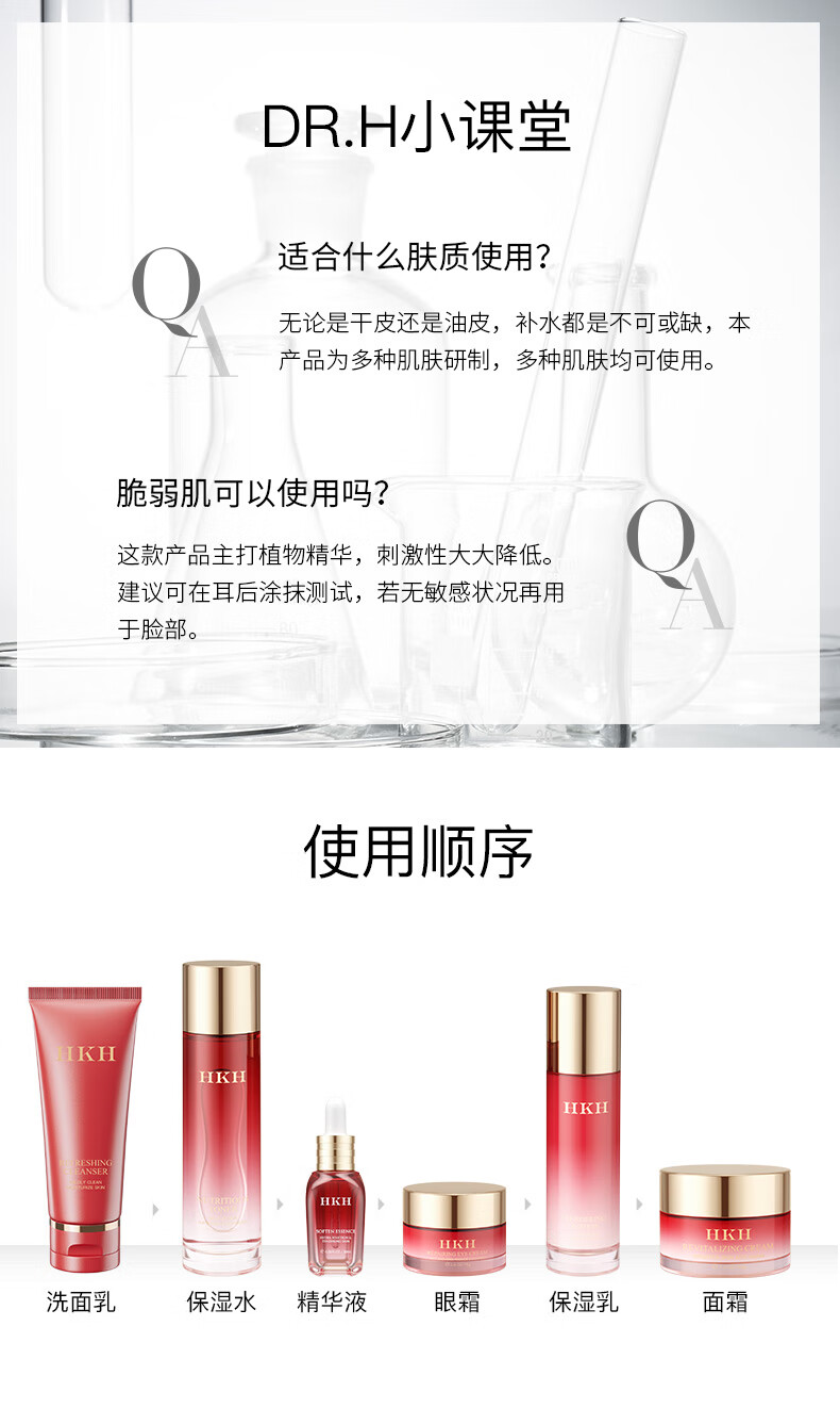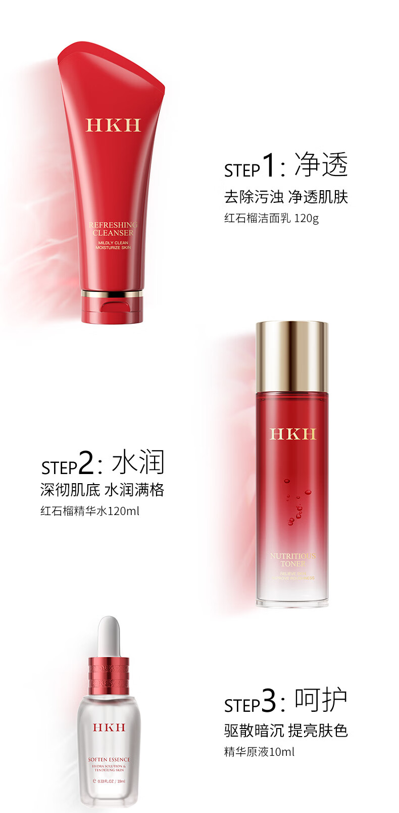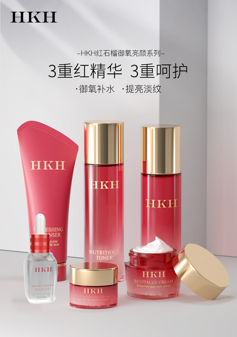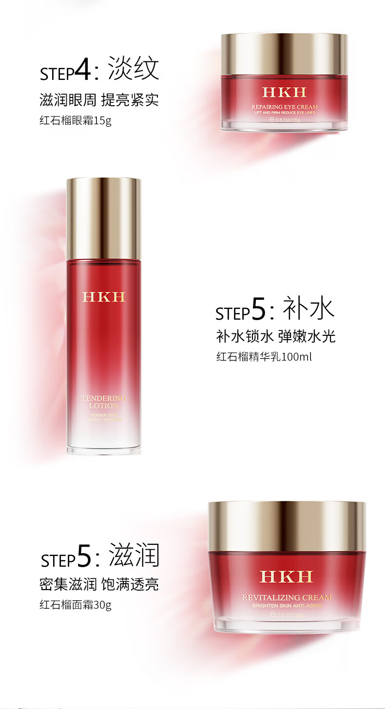 HKH红石榴多肽亮肤水乳护肤化妆品套装补水保湿滋润圣诞节礼物送女友 6件套礼盒装