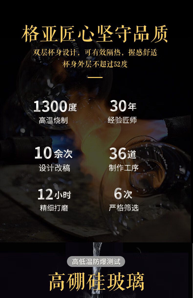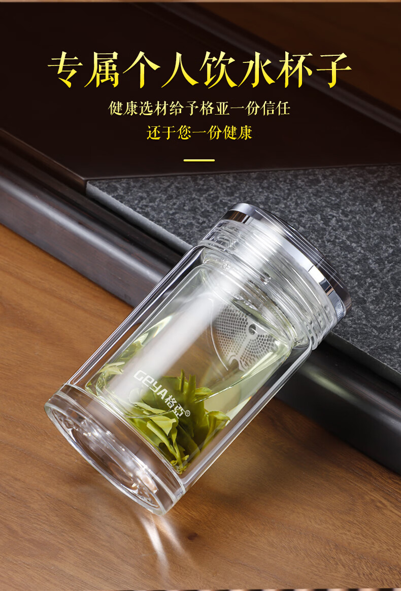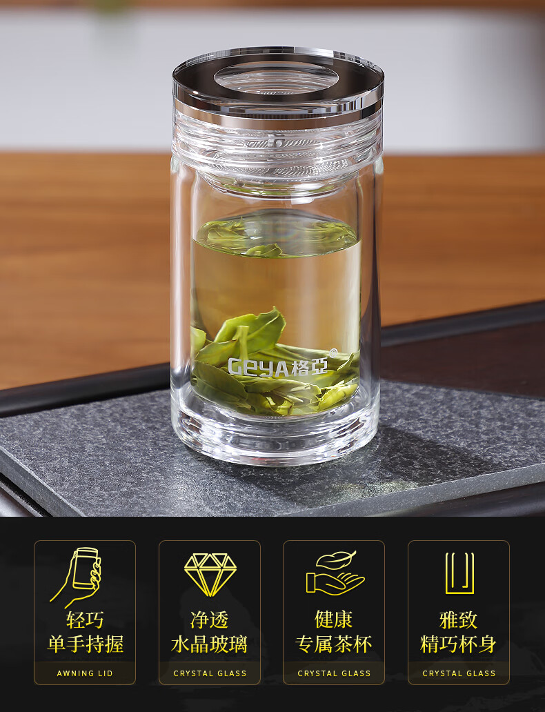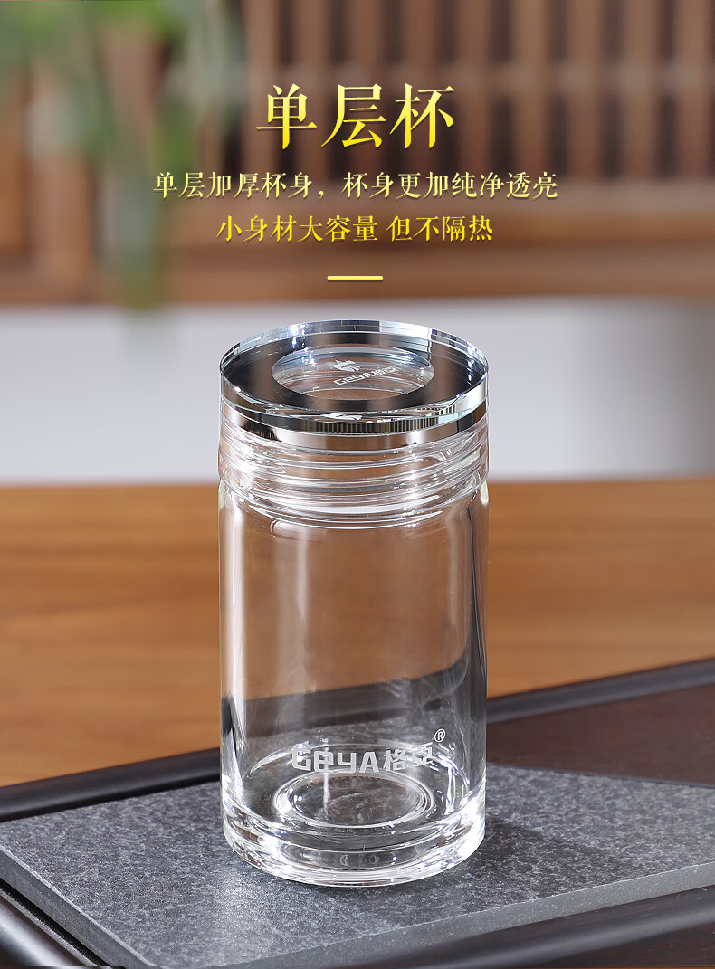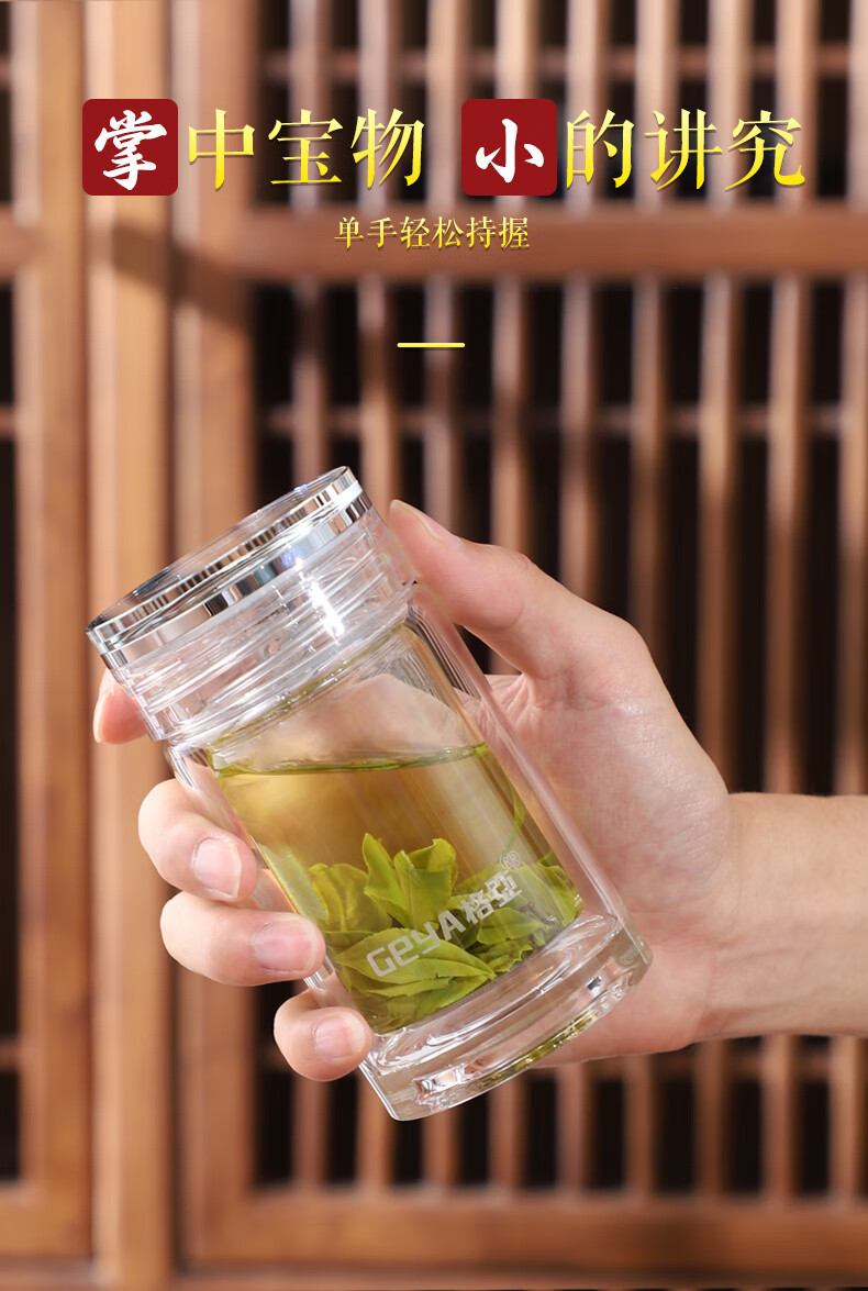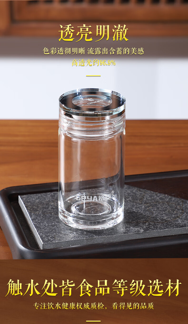 格亚(GEYA)玲珑迷你玻璃杯茶杯高端玻璃男女小水杯子矮胖加厚养生杯便携茶杯 双层【礼盒装】180ml