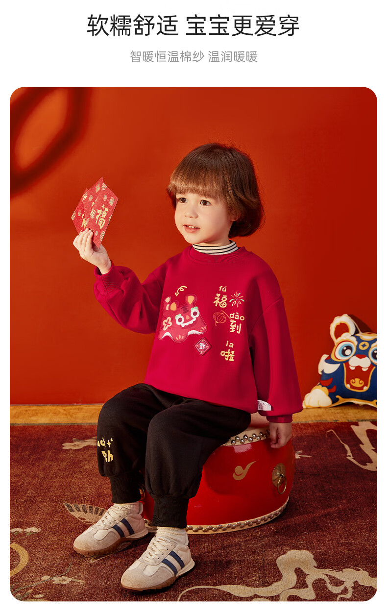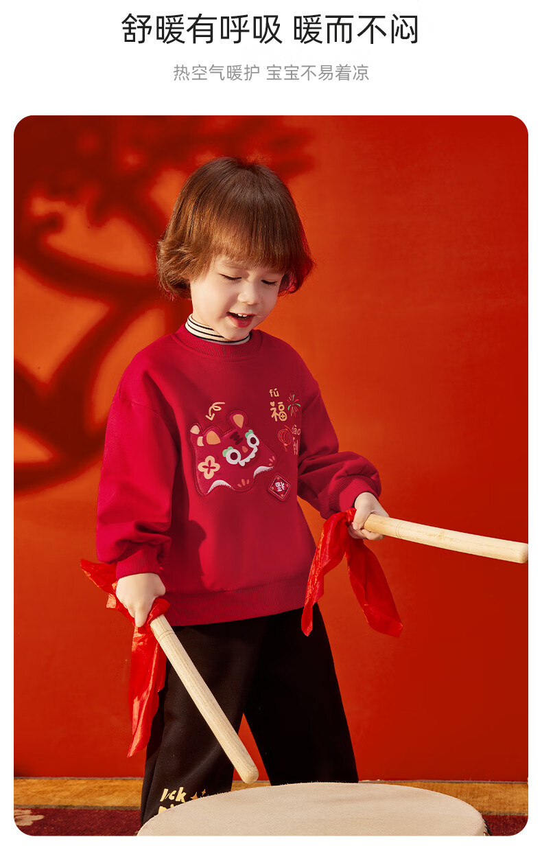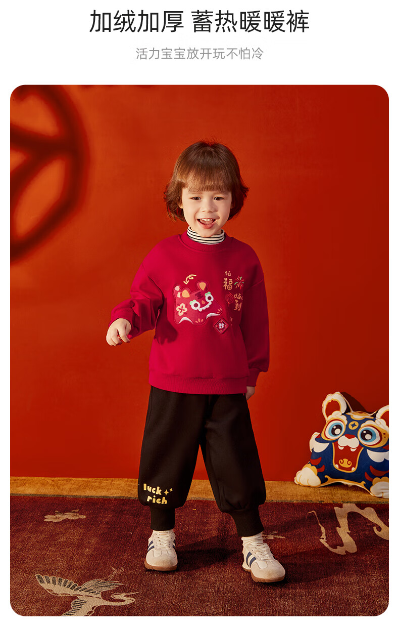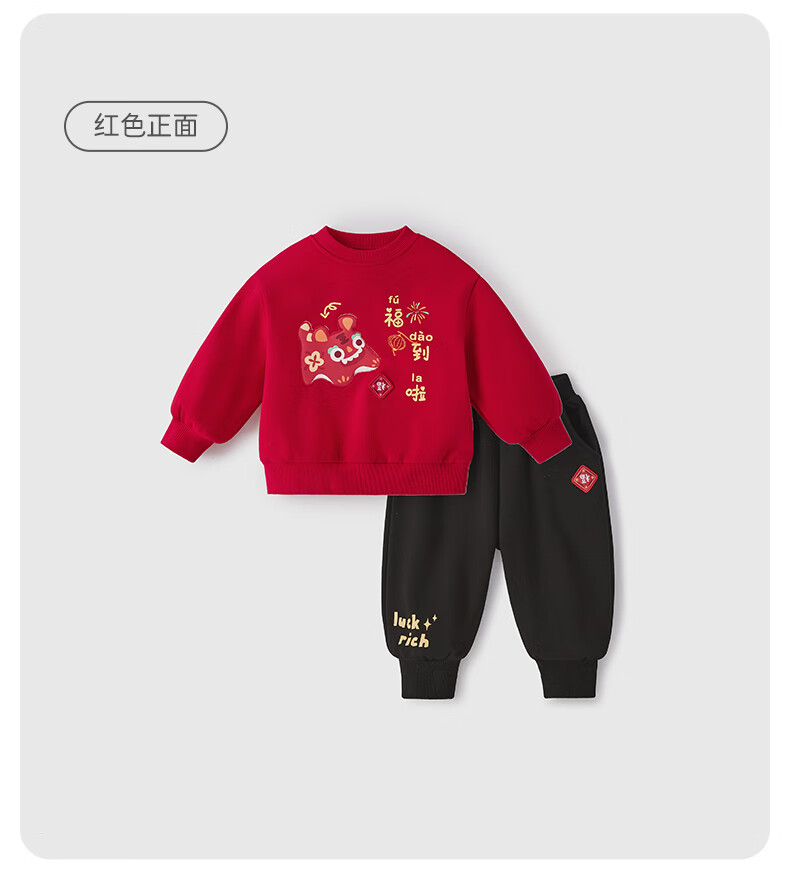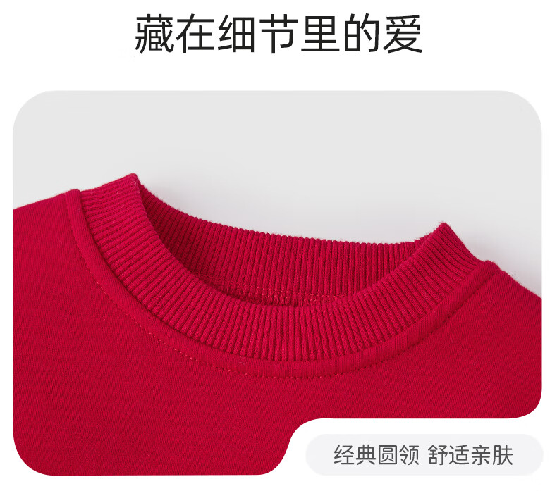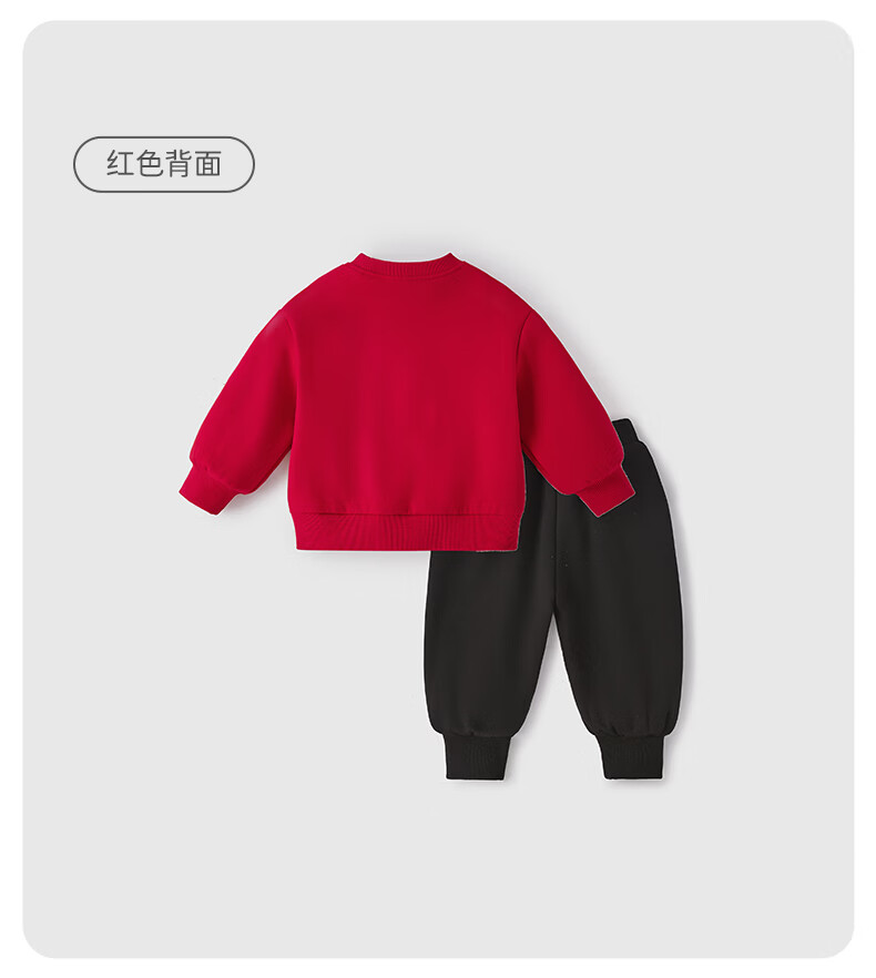 JELLYBABY【加绒休闲套装】25新品冬款中性卫衣+裤子保暖舒适中童 红色 90