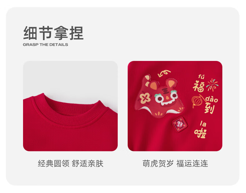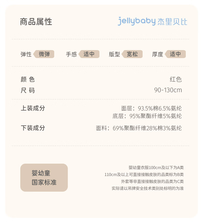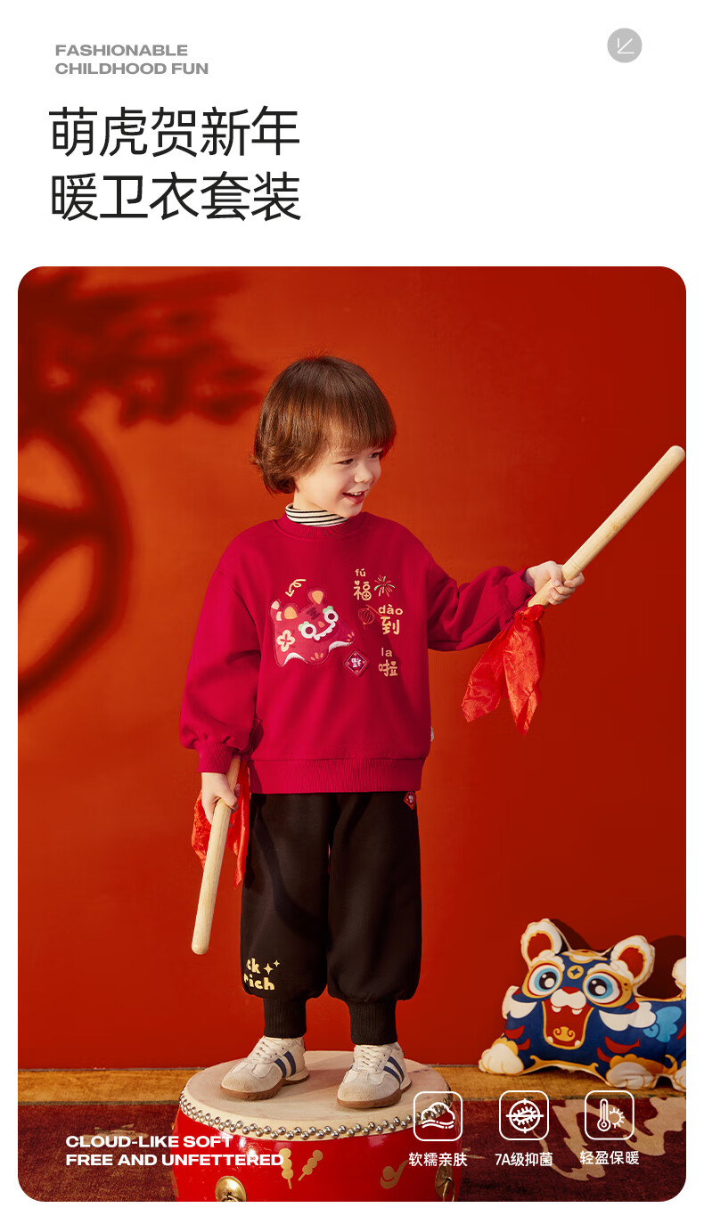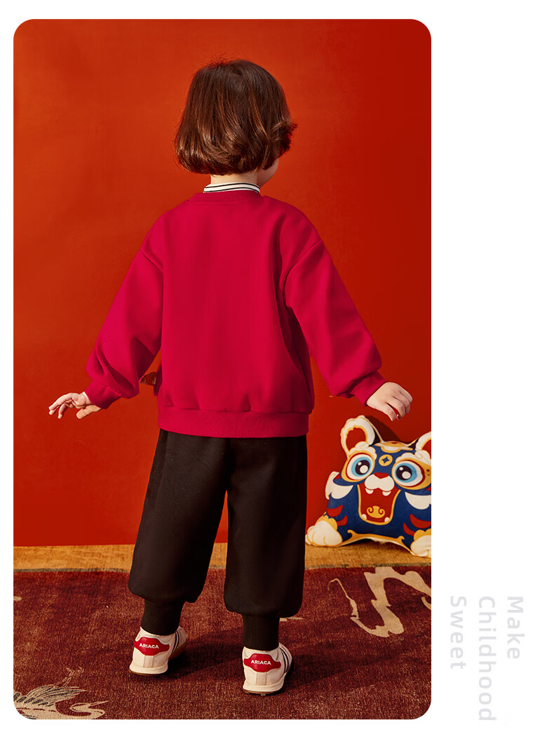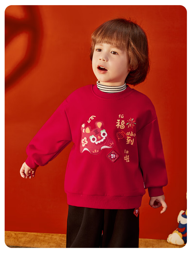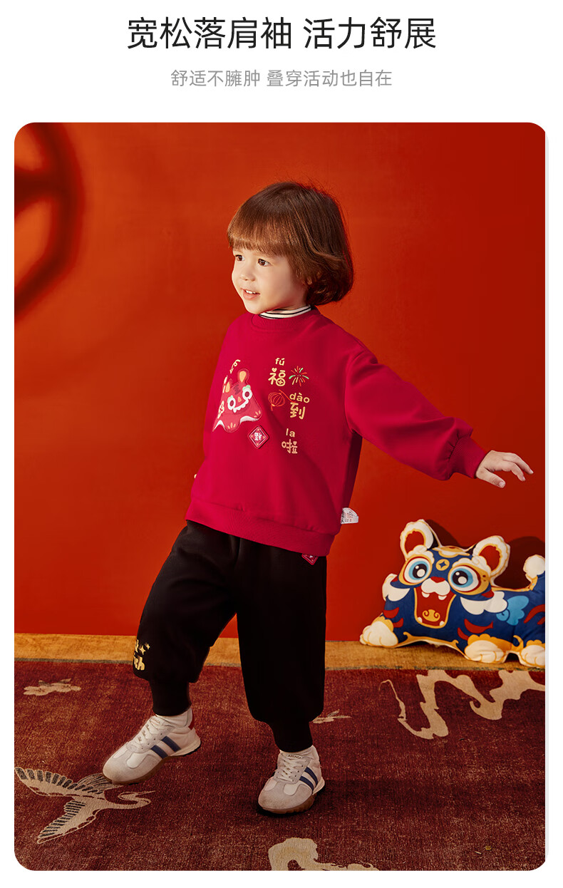 JELLYBABY【加绒休闲套装】25新品冬款中性卫衣+裤子保暖舒适中童 红色 90