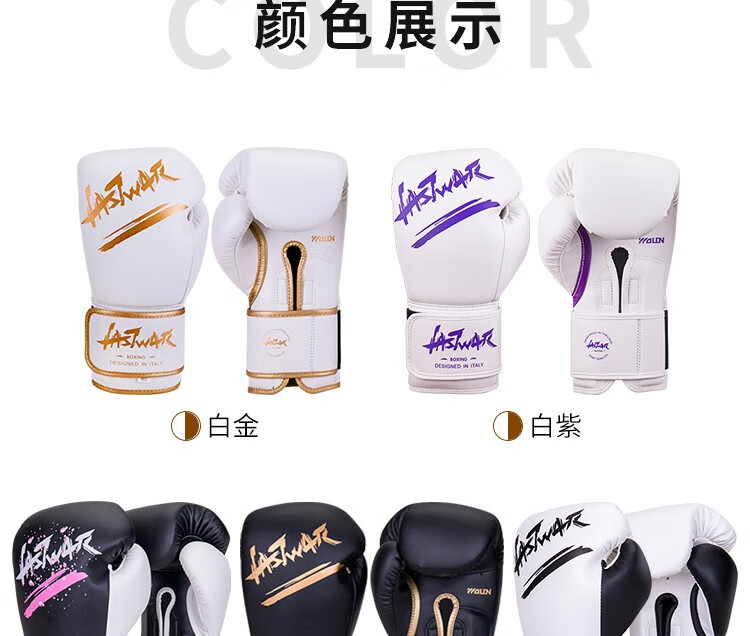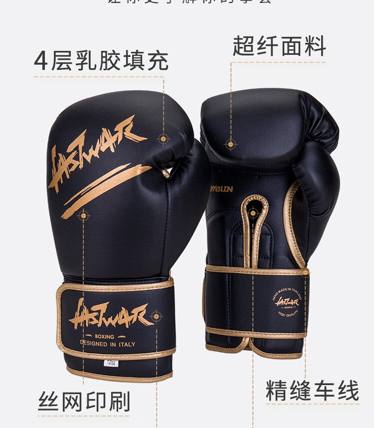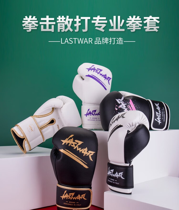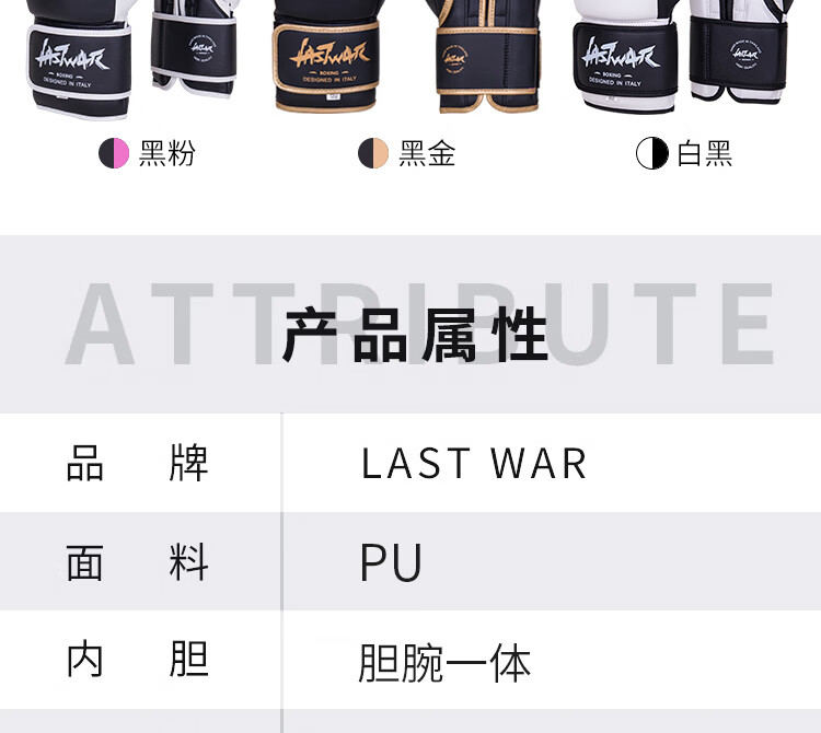 LASTWAR拳套女成人散打拳套健身训练器材儿童拳击搏击专业拳击手套男 黑粉(超纤款+送收纳袋+5米缠手 14oz
