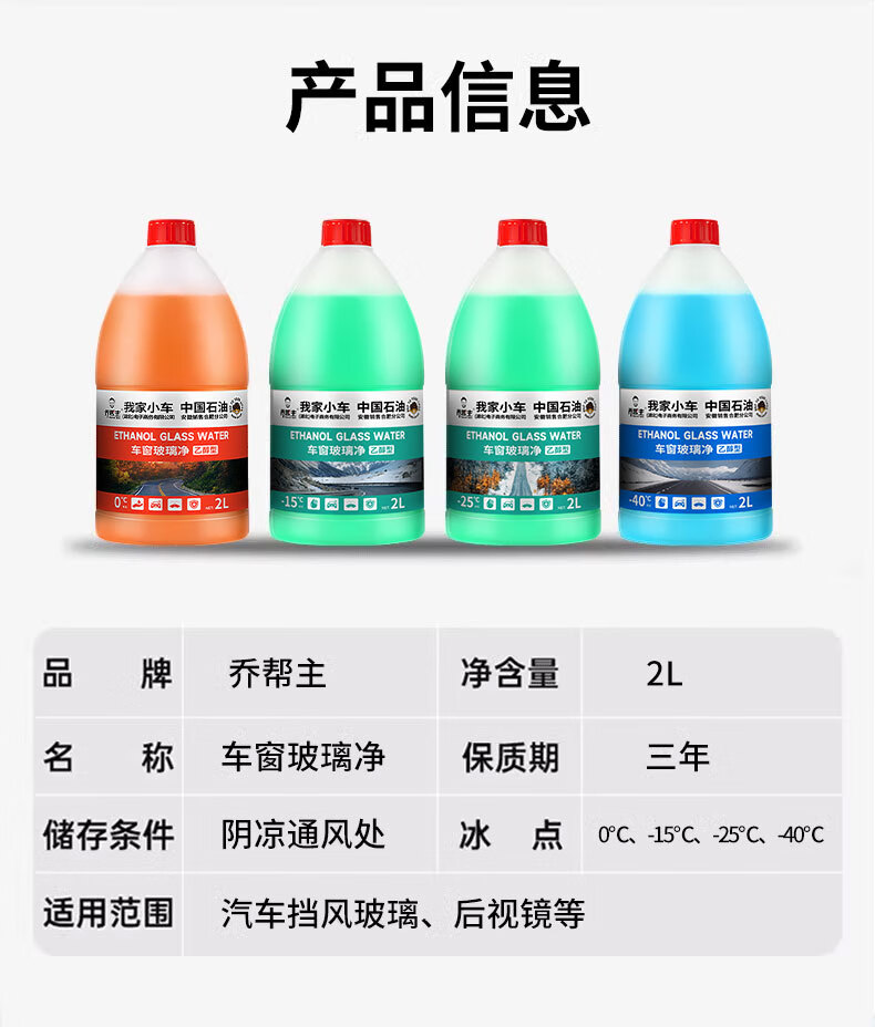 乔帮主汽车玻璃水中国石油乙醇玻璃水强力去油膜清洁剂特斯拉车用雨刮水 -40度【去污去油膜】4瓶