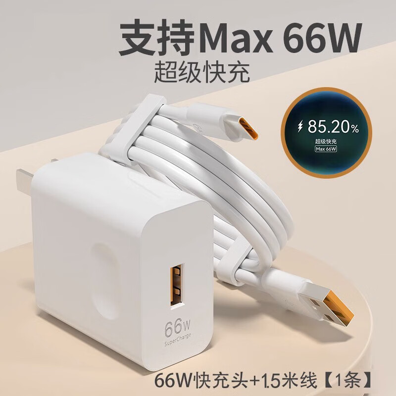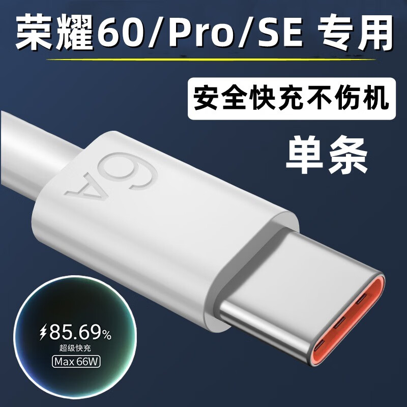 华为(HUAWEI)原配适用荣耀X20充电器头66W瓦超级快充华为荣耀x20手机数据线6A 2米快充线2条荣耀X20
