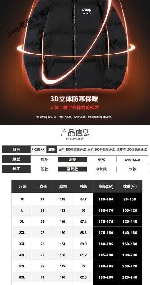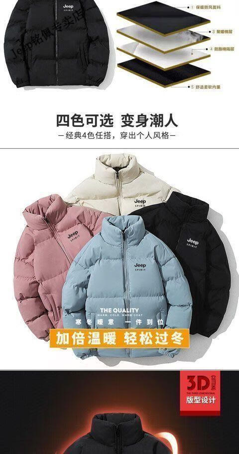 JEEP SPIRIT羽绒棉服男秋冬季2024新款洋气面包棉衣外套冬天加厚棉袄 黑色+面包服【宽松版型】 M 建议【80-100斤】