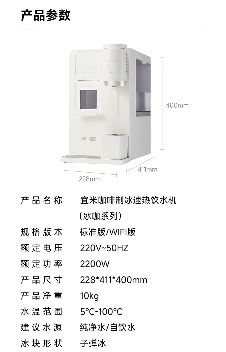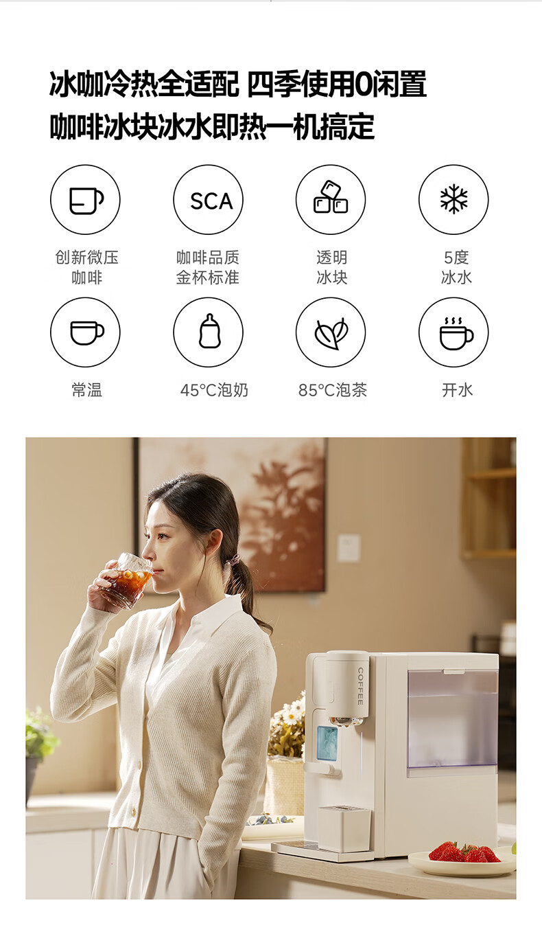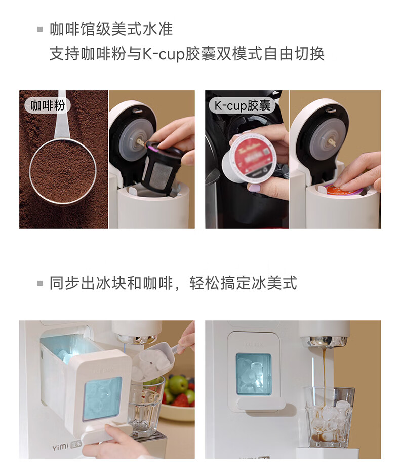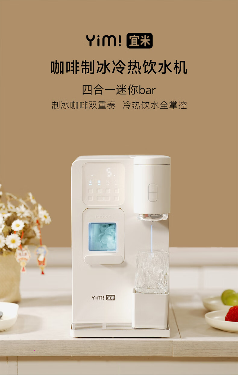 宜米(YIMI)冰咖四合一咖啡制冰饮水机即热台式家用直饮制冰冷热一体制冰块机美式咖啡机智能预约 即热型 冰咖PRO【米家app智控】
