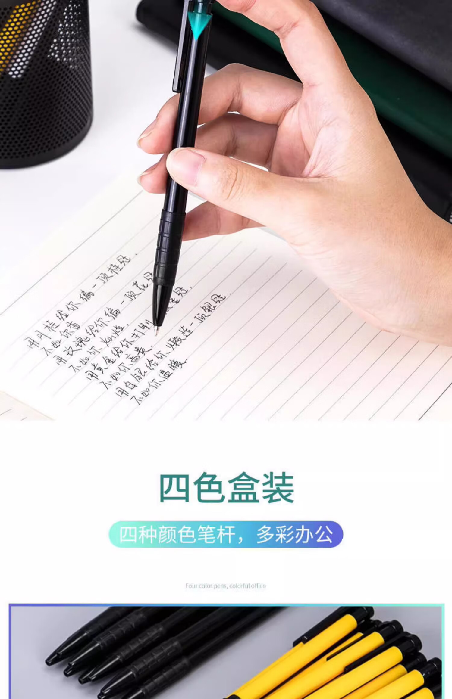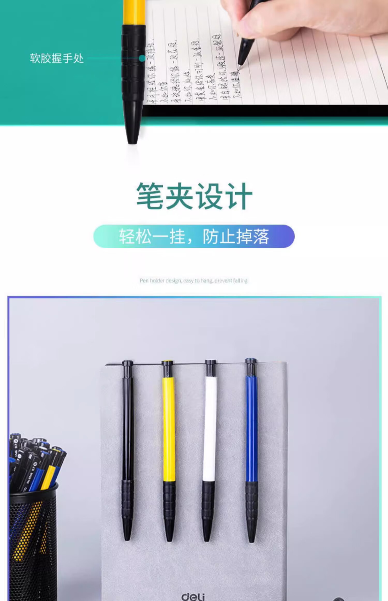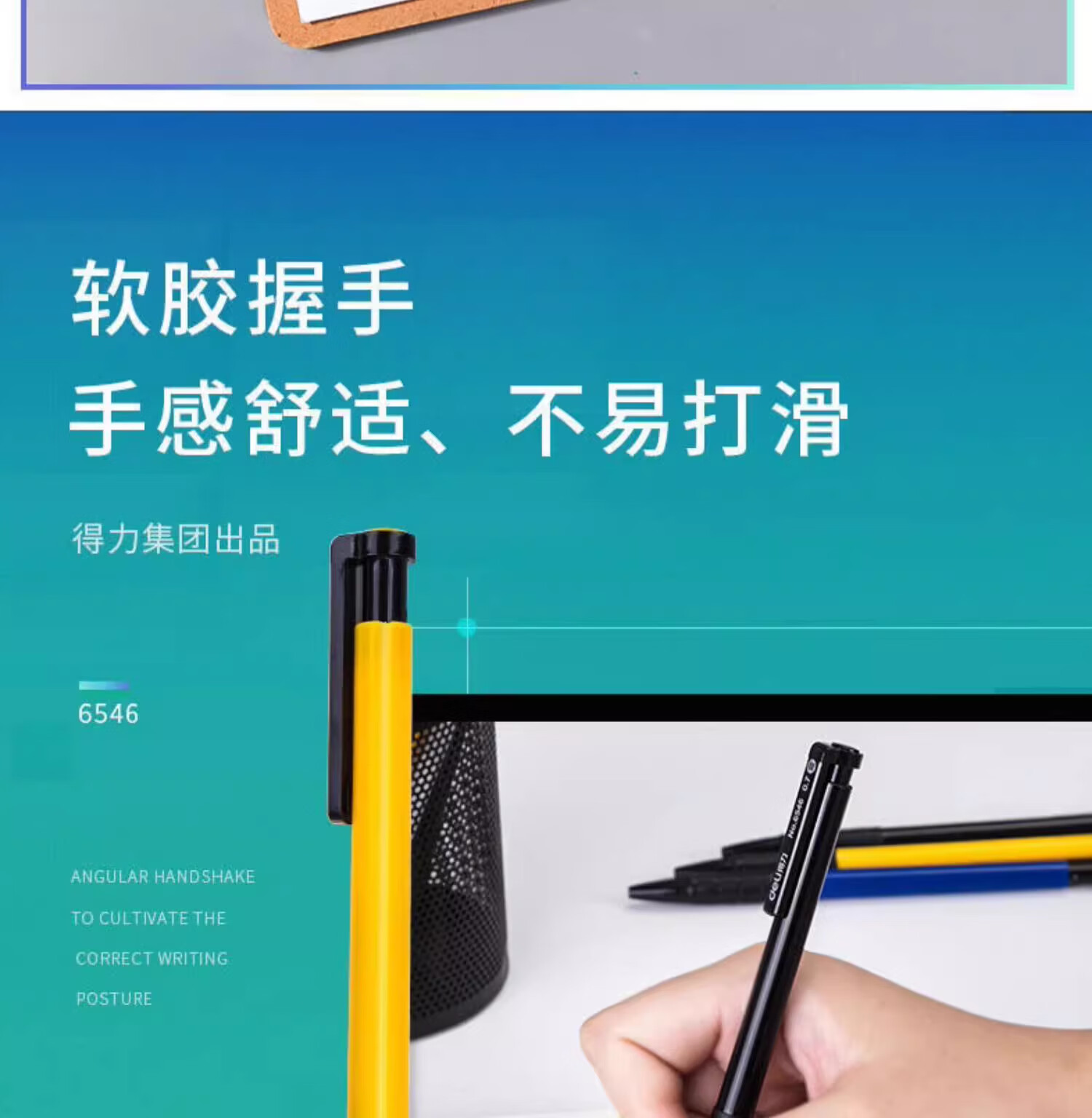 得力彩色圆珠笔正品按压式小学生专用蓝色黑色红色油笔老式办公原子笔高档中油笔按动油性高颜值中性笔 红色 4支