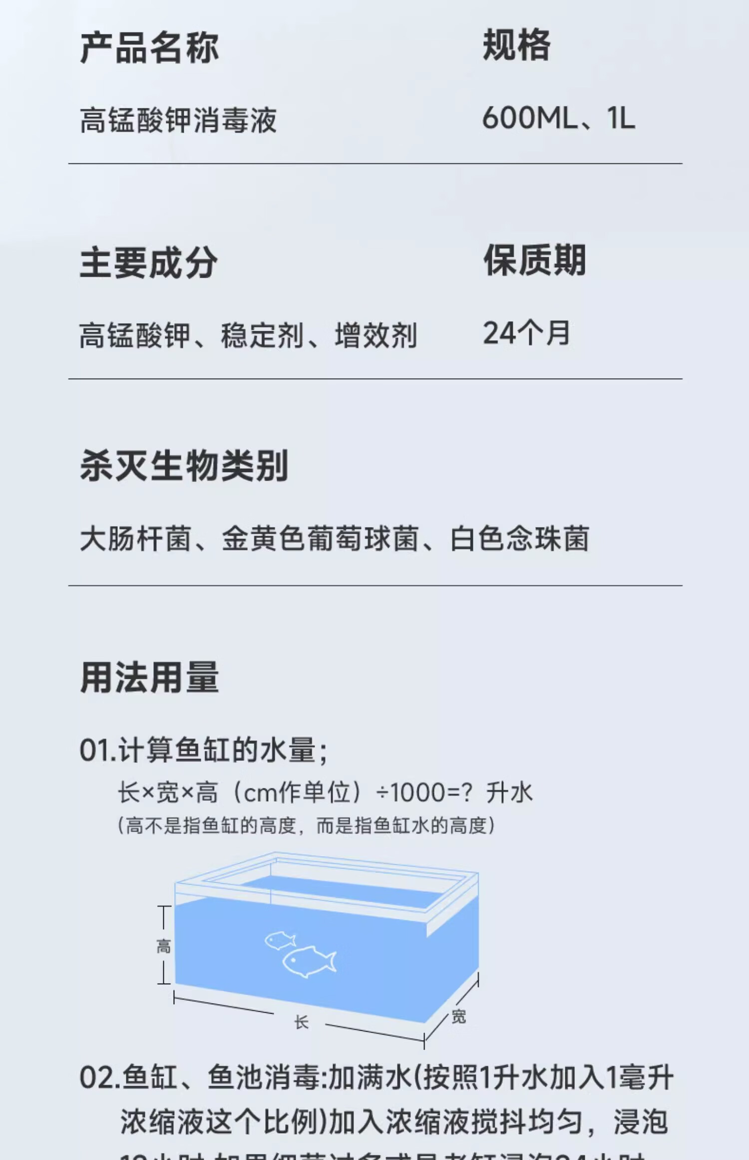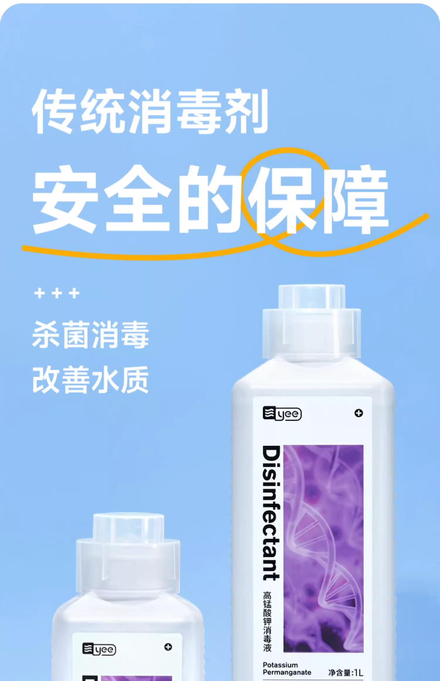 YEE高锰酸钾600ml鱼缸消毒水杀菌溶液粉末乌龟水族鱼池鱼塘净水剂