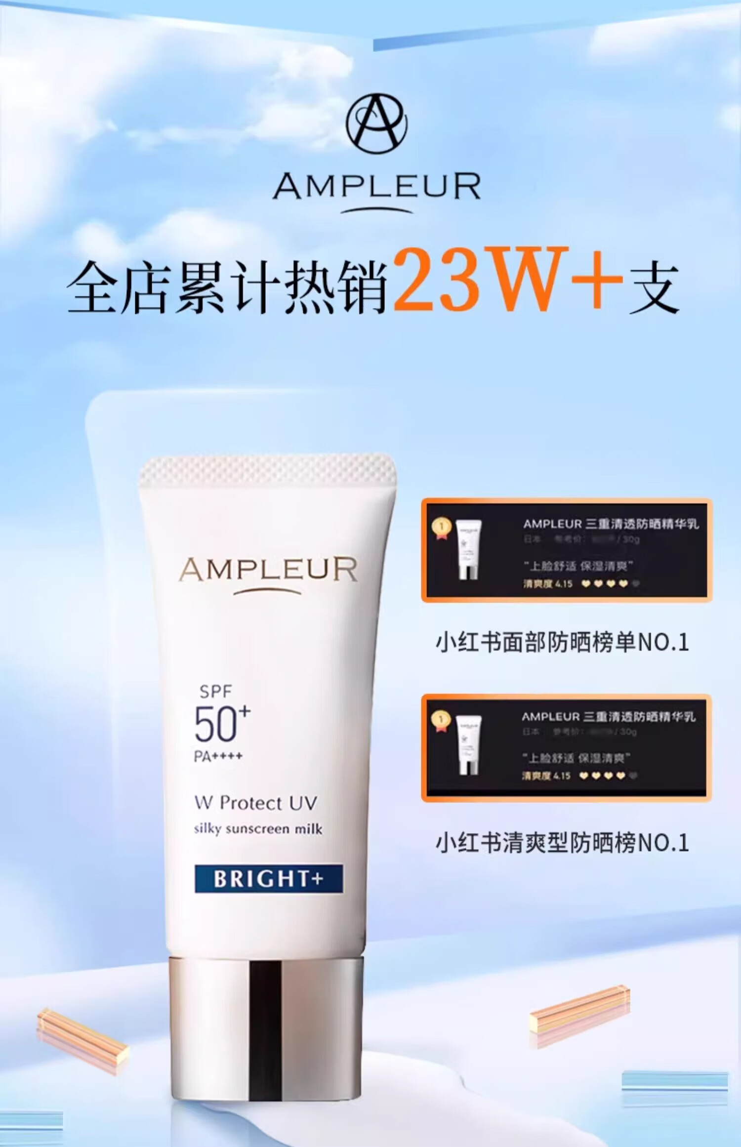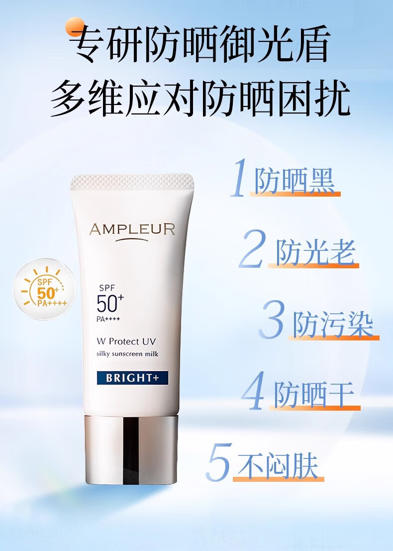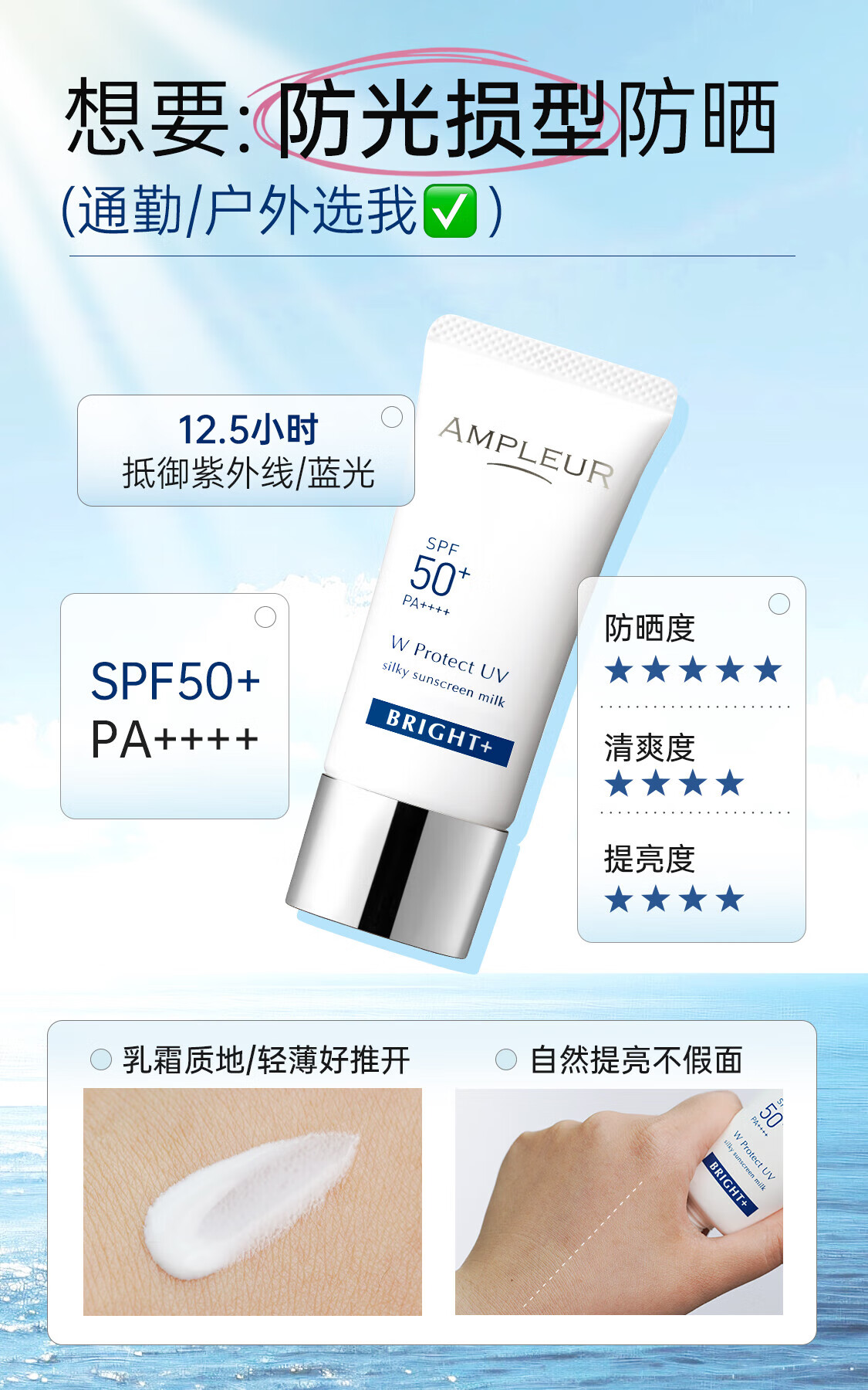 AMPLEUR日本进口防晒霜秋冬换季清透防晒精华乳30g隔离紫外隔离霜小白管 防晒霜1支 护肤必备