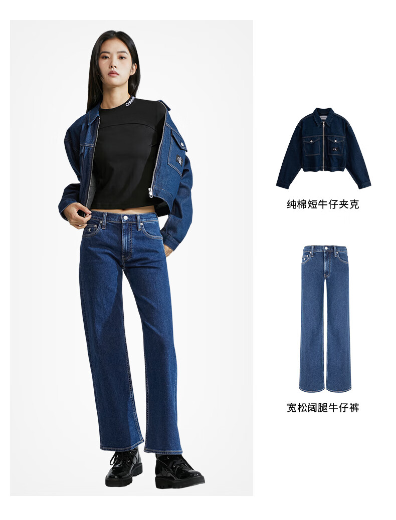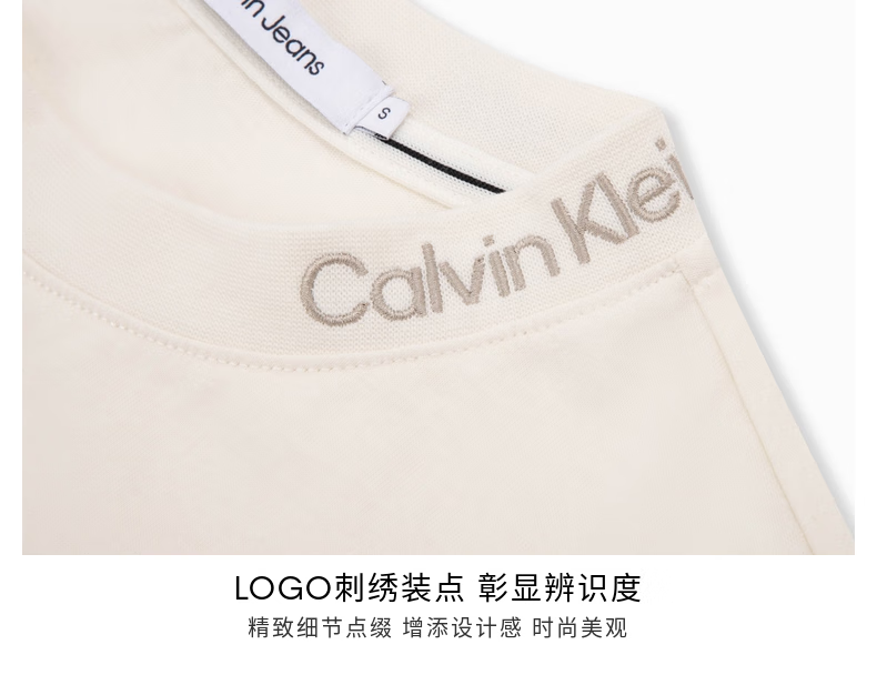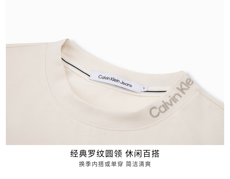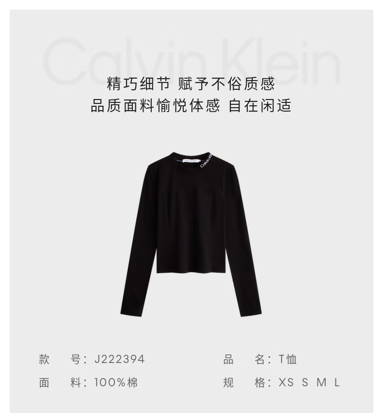 Calvin KleinJeans秋季女士休闲通勤简约ck刺绣纯棉圆领修身打底长袖T恤上衣 BEH-太空黑 S