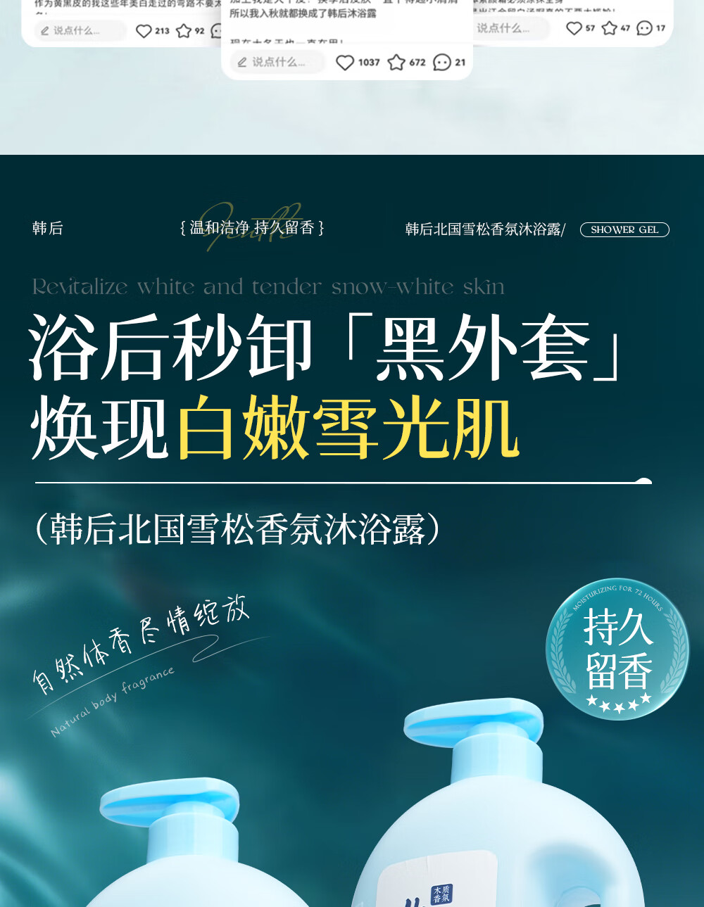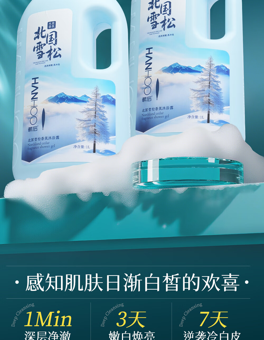 韩后北国雪松香氛沐浴露控油持久留香24小时香体男女大瓶装 【黄芪+北国雪松】1000mL 共2大瓶沐浴露