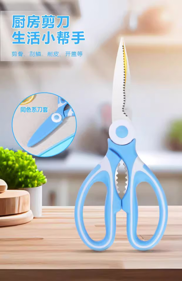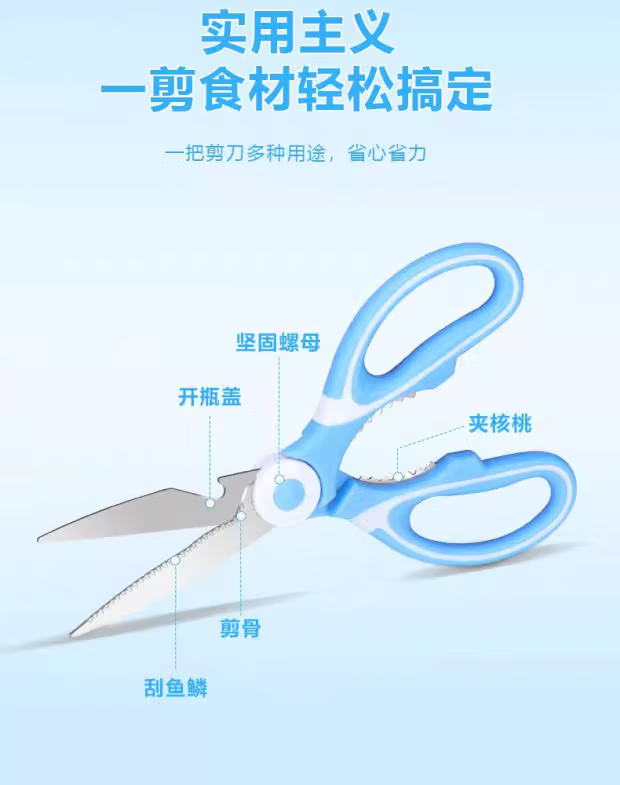 熊猫剪文具剪鸡骨夹核桃剖鱼多功能不锈钢家用厨房专用剪 熊猫剪绿白