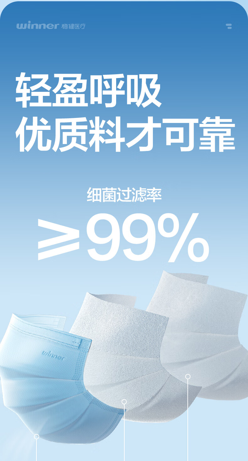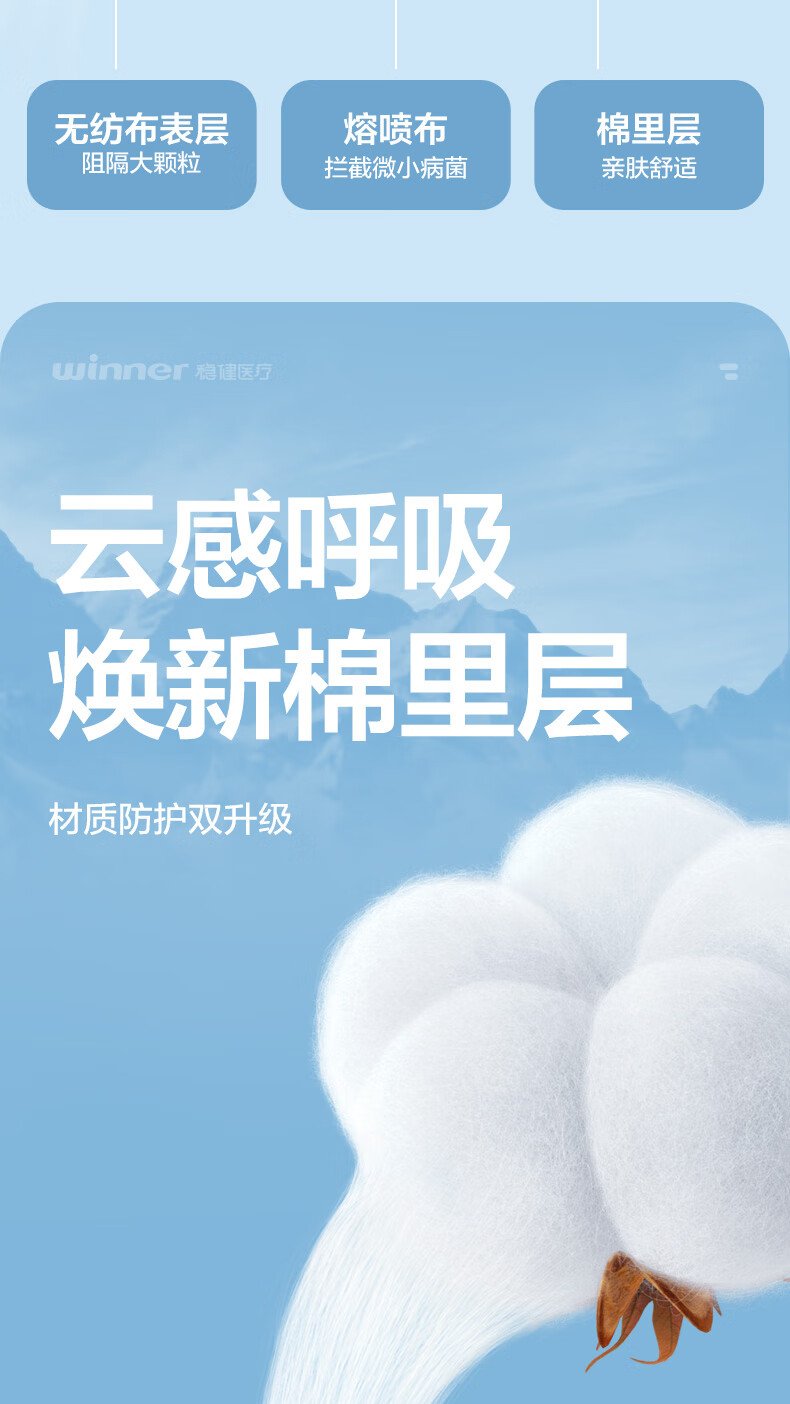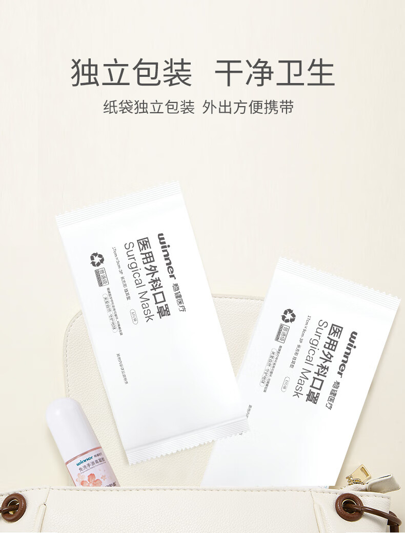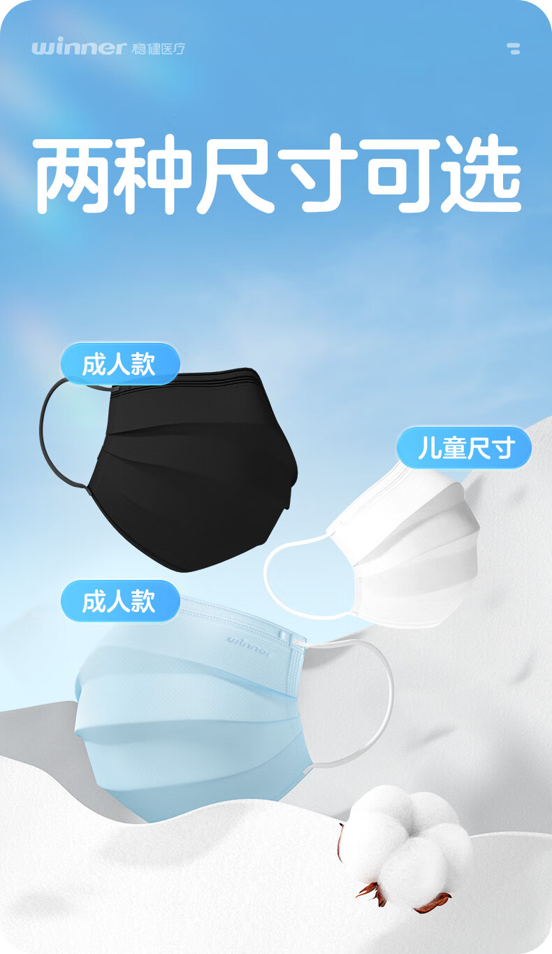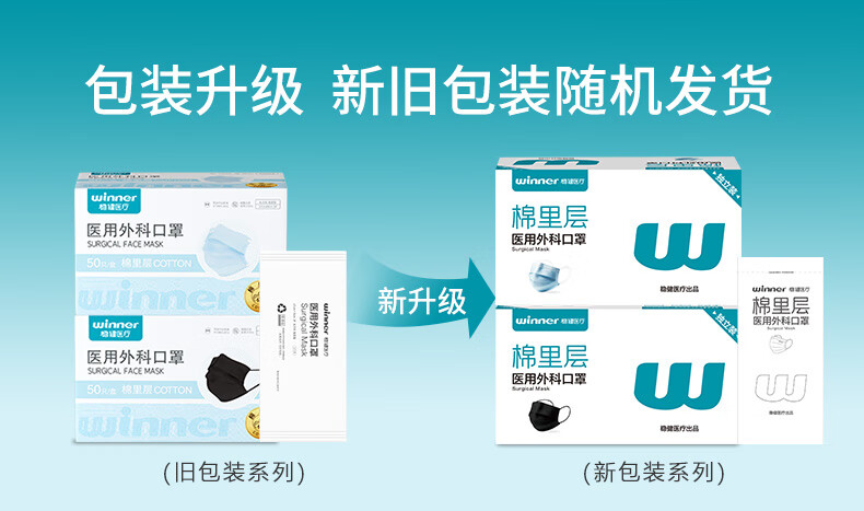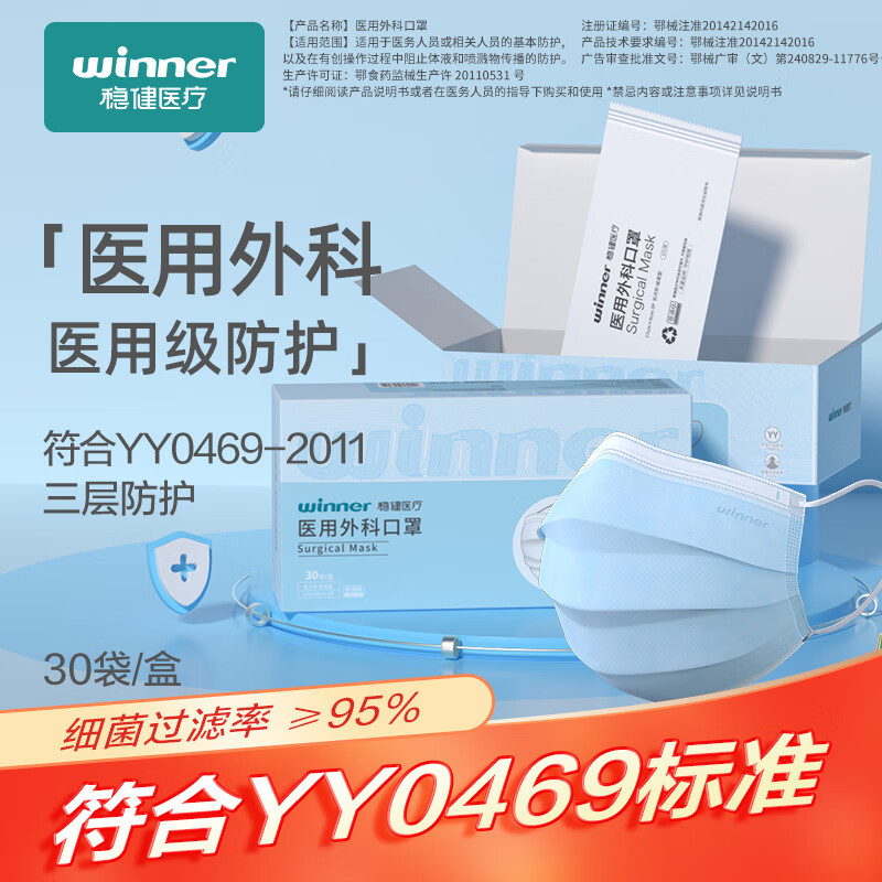 稳健口罩医用外科口罩一次性医用口罩防细菌冬季防流感独立干净卫生 【升级棉里层】50只/盒 成人蓝色 独立包装 1只/袋