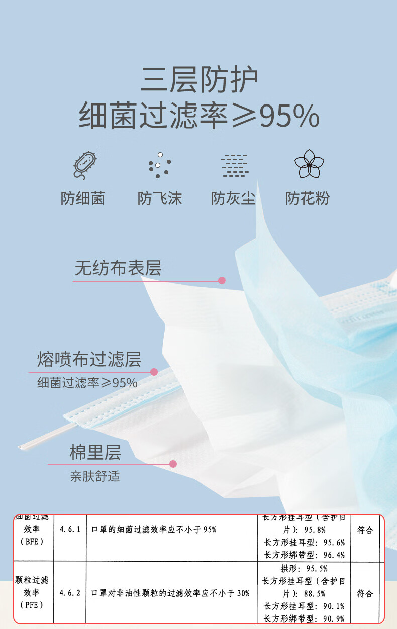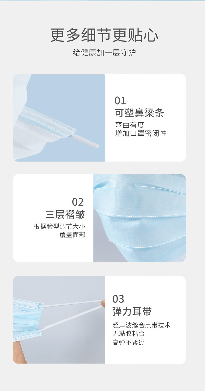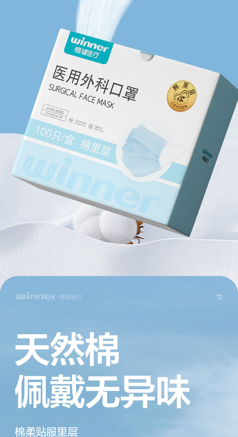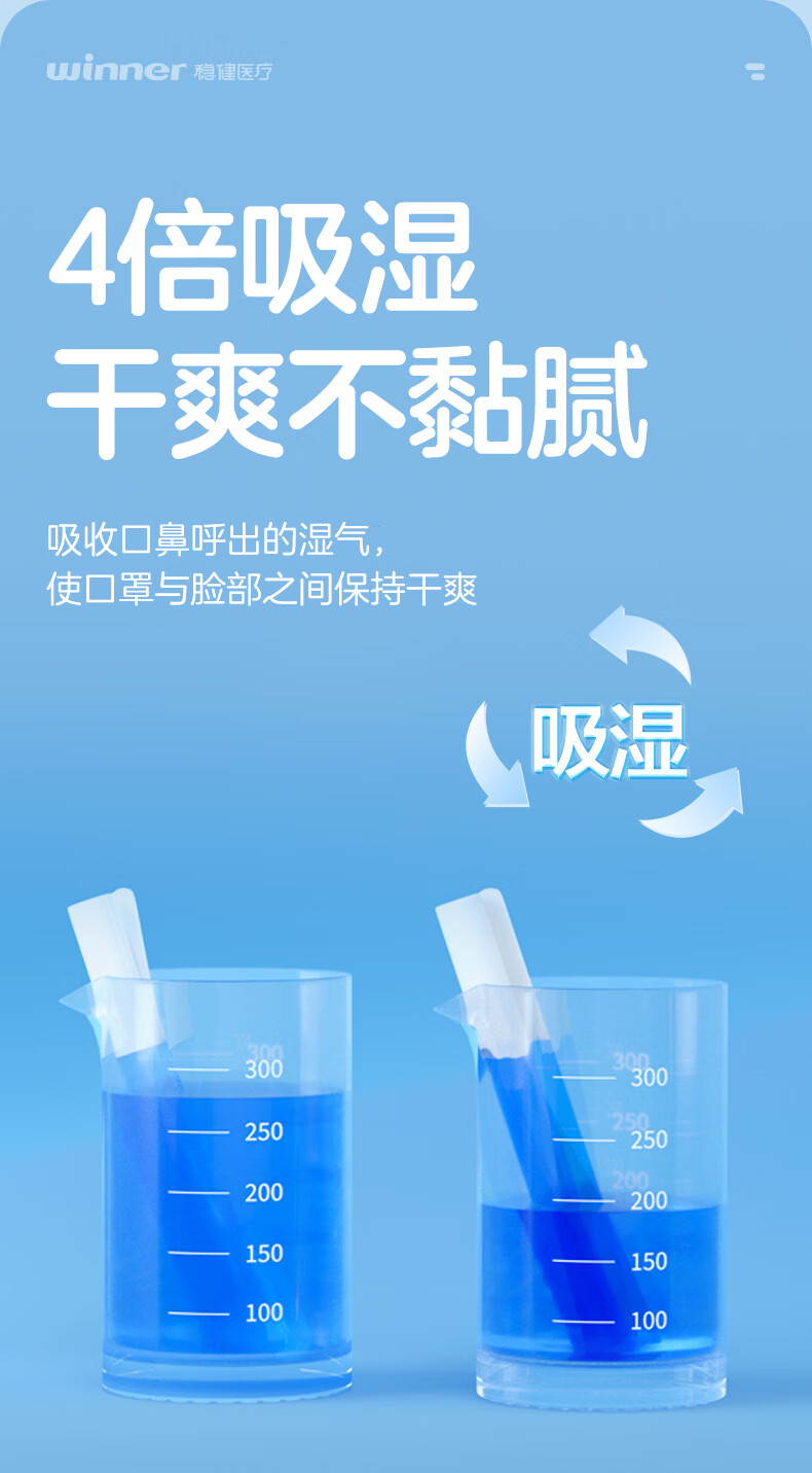 稳健口罩医用外科口罩一次性医用口罩防细菌冬季防流感独立干净卫生 【升级棉里层】50只/盒 成人蓝色 独立包装 1只/袋