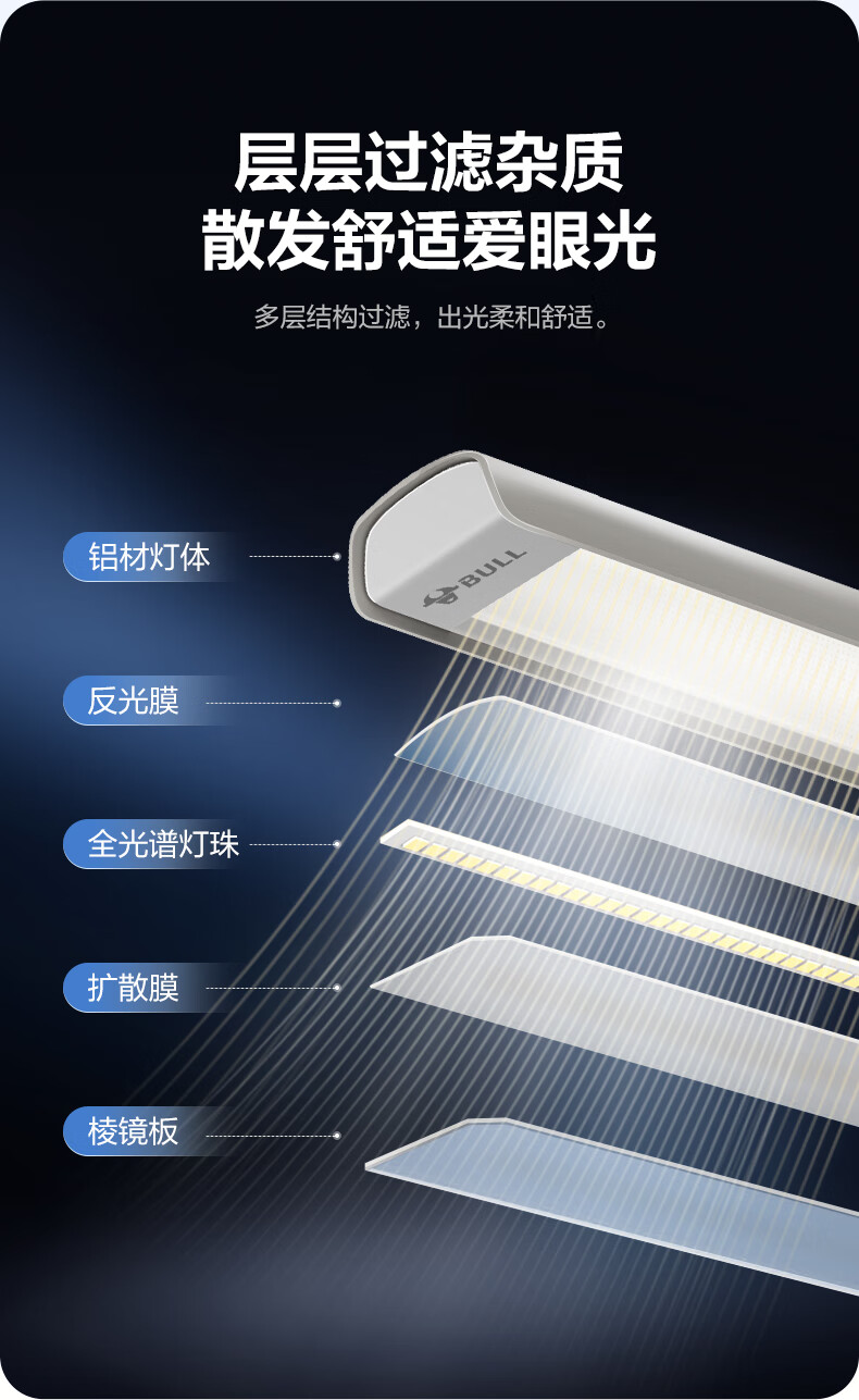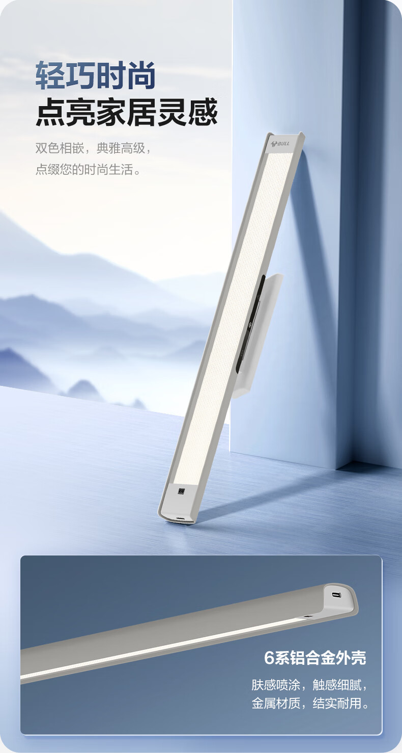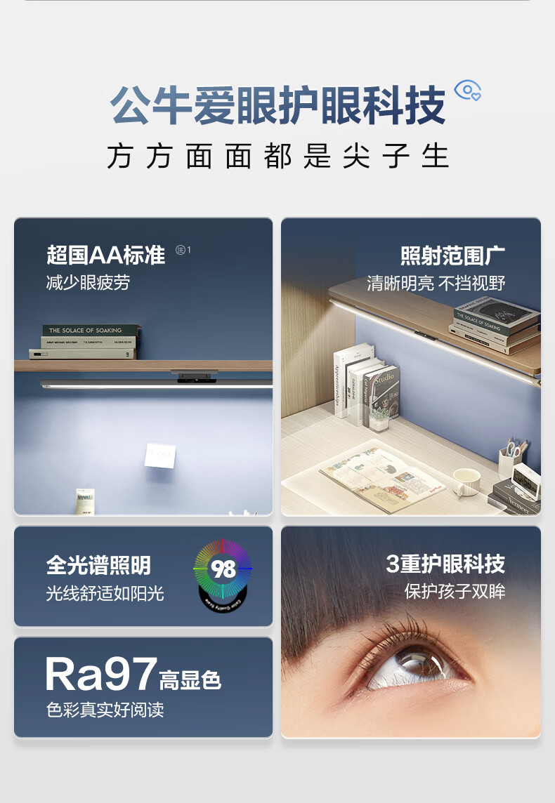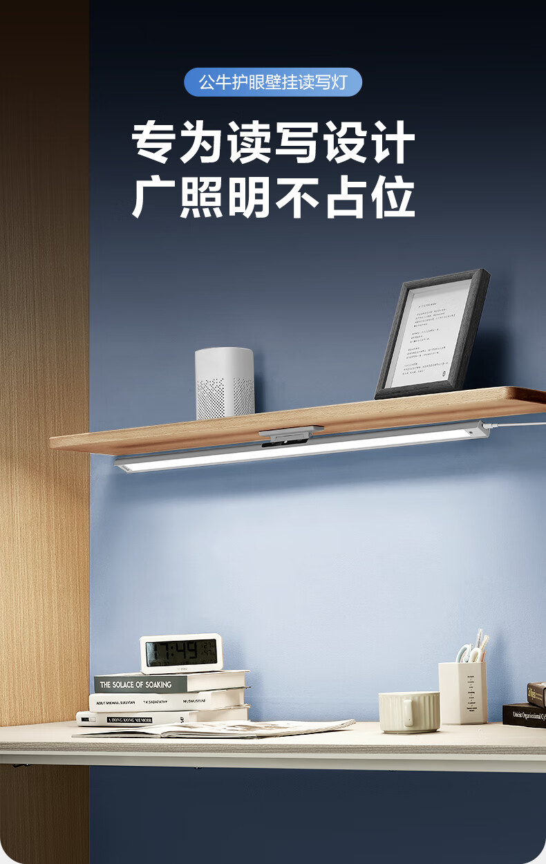 公牛(BULL)护眼台灯壁挂式 儿童学生专用防蓝光防近视学习阅读灯充电书桌灯 14w无极调光【全光谱护眼】400MM 官方超国AA认证爱眼防眩光RA97高显色