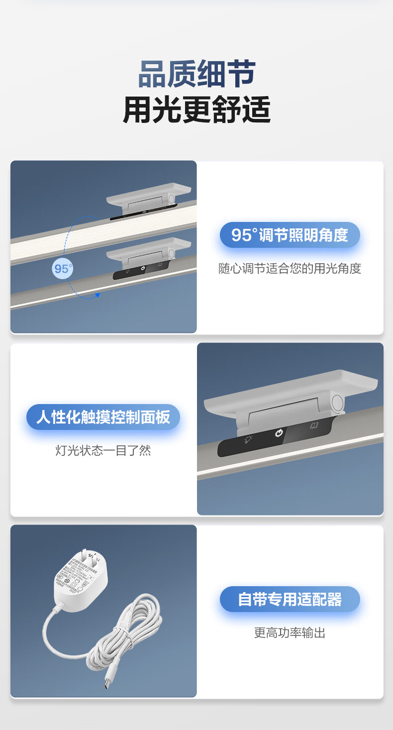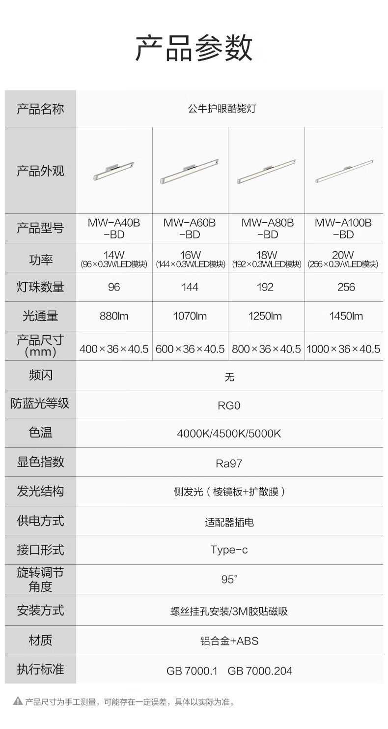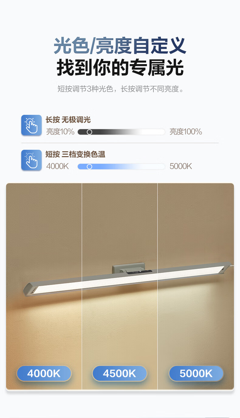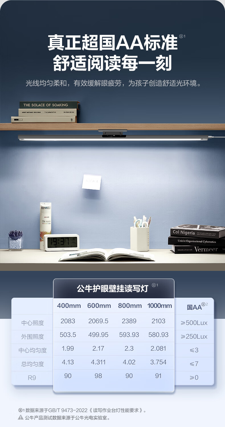 公牛(BULL)护眼台灯壁挂式 儿童学生专用防蓝光防近视学习阅读灯充电书桌灯 14w无极调光【全光谱护眼】400MM 官方超国AA认证爱眼防眩光RA97高显色