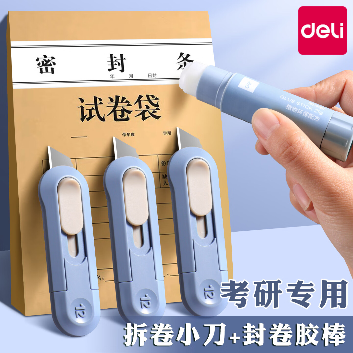 得力(deli)考研小刀胶棒固体胶拆试卷专用美工刀研究生公务员考试必备套装2b涂卡笔迷你裁纸刀小号 【考研标配】拆卷刀+封袋胶棒(橙功上岸)