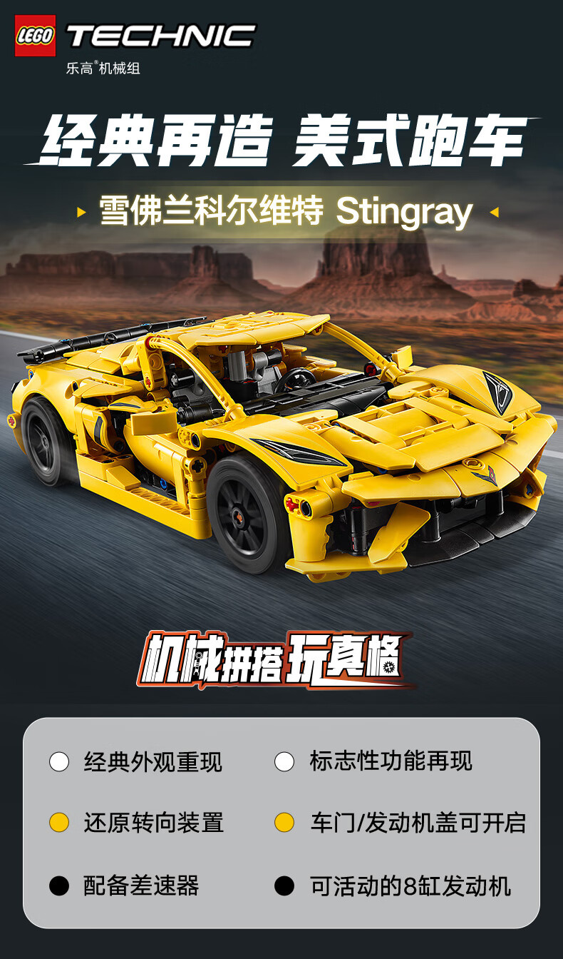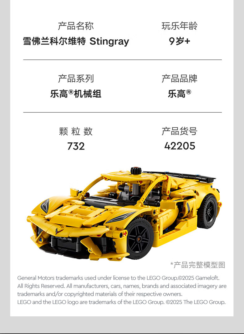 乐高(LEGO)积木拼装机械组系列42205 雪佛兰科尔维特男孩儿童玩具圣诞礼物