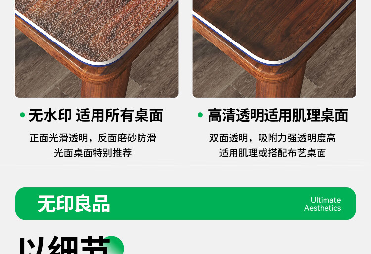 无印良品【母婴级】TPU透明桌垫防油防烫餐桌布垫茶几垫软玻璃桌面保护垫 透明直边0.8mm【100%TPU母婴级健康】 40*60cm【守护用餐健康】