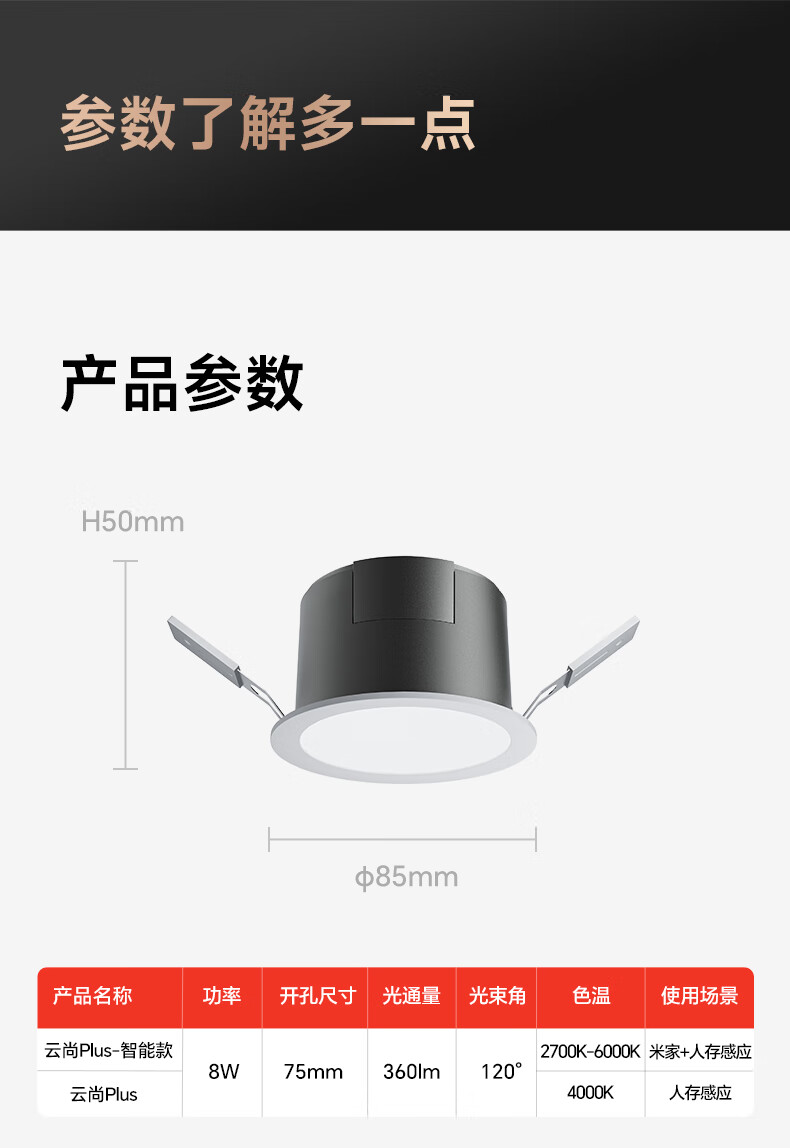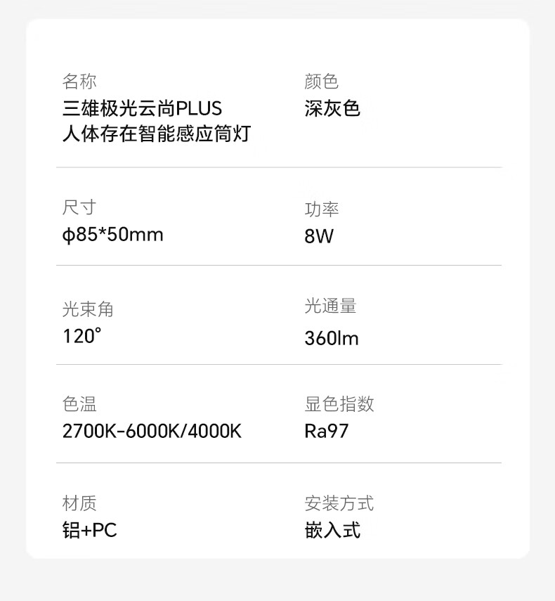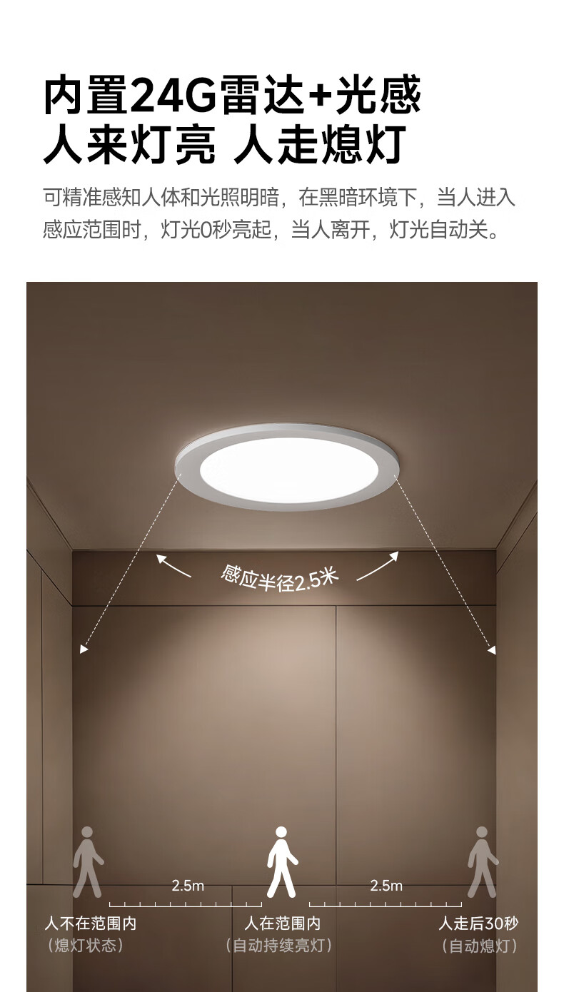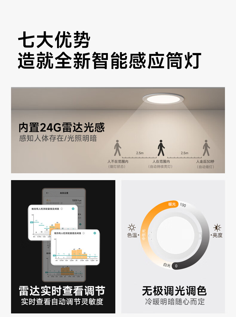 三雄极光智能感应筒灯LED可调节雷达防眩嵌入式孔灯客厅吊顶过道牛眼灯 【雷达感应】云尚plus 8W|4000K|Ra97|开孔75mm