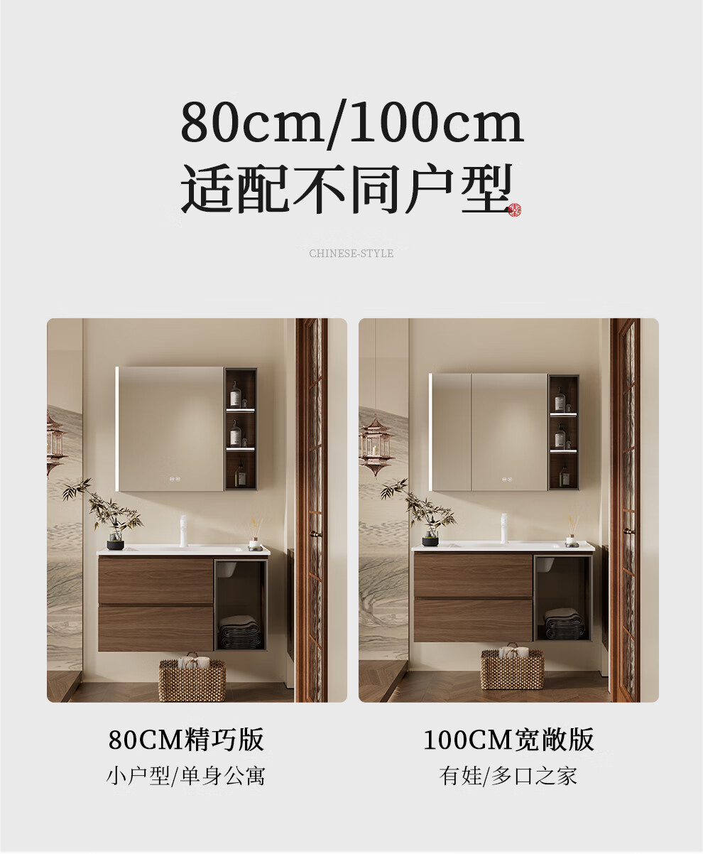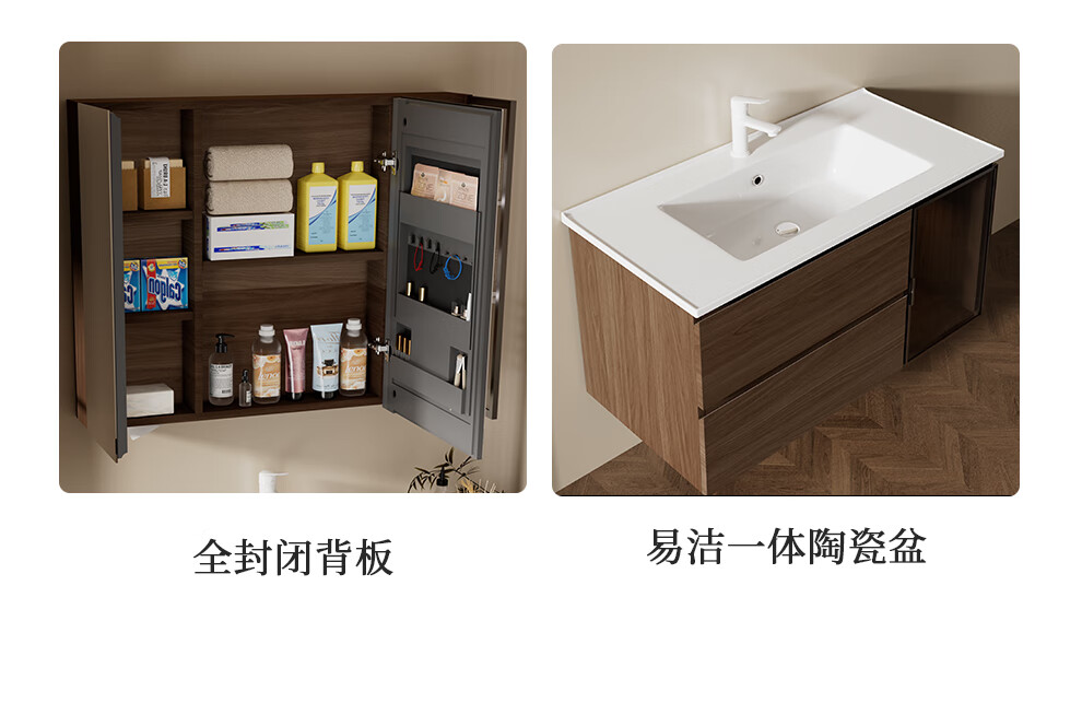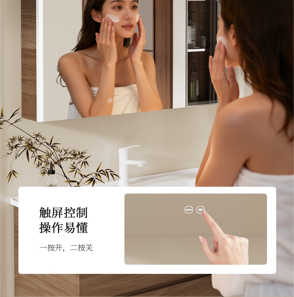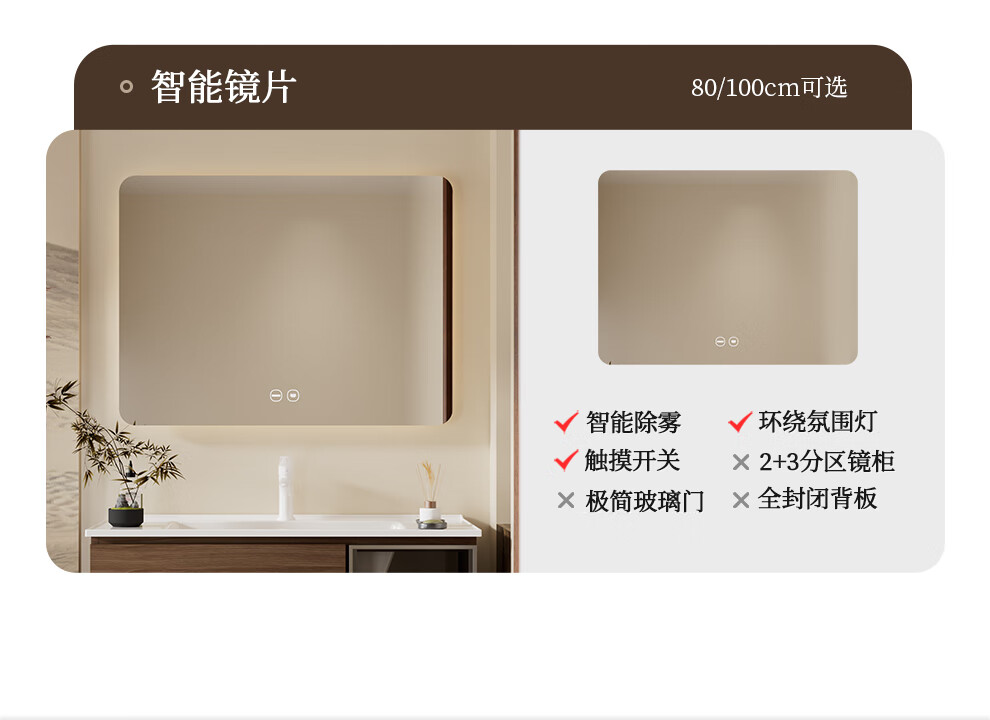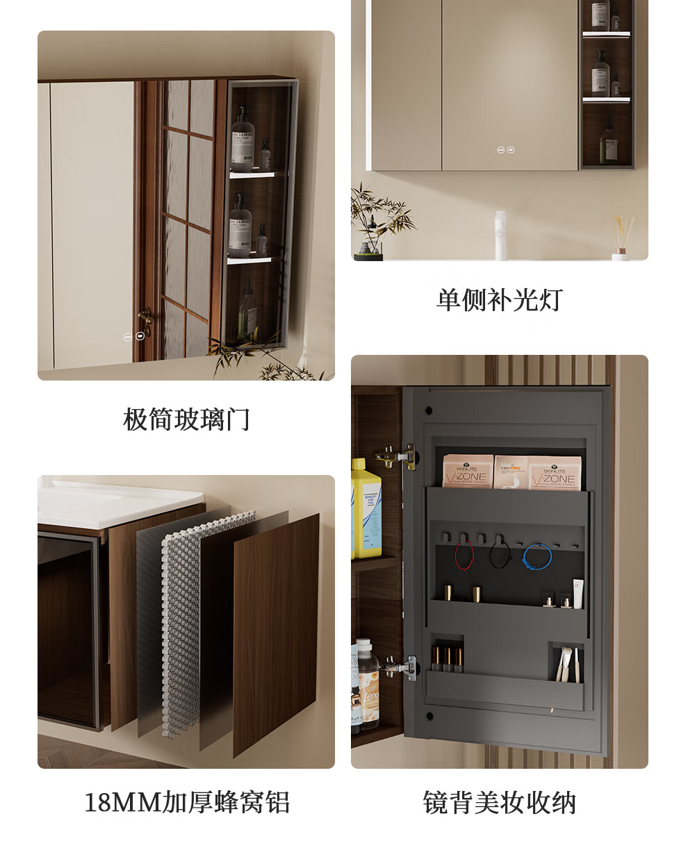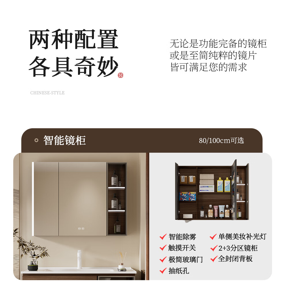 浪鲸(SSWW)卫浴中古风浴室柜砚木系列陶瓷一体盆洗脸盆柜组合铝合金浴室柜 【砚木系列】极简门智能美妆除雾镜柜-80cm 不含龙头配件
