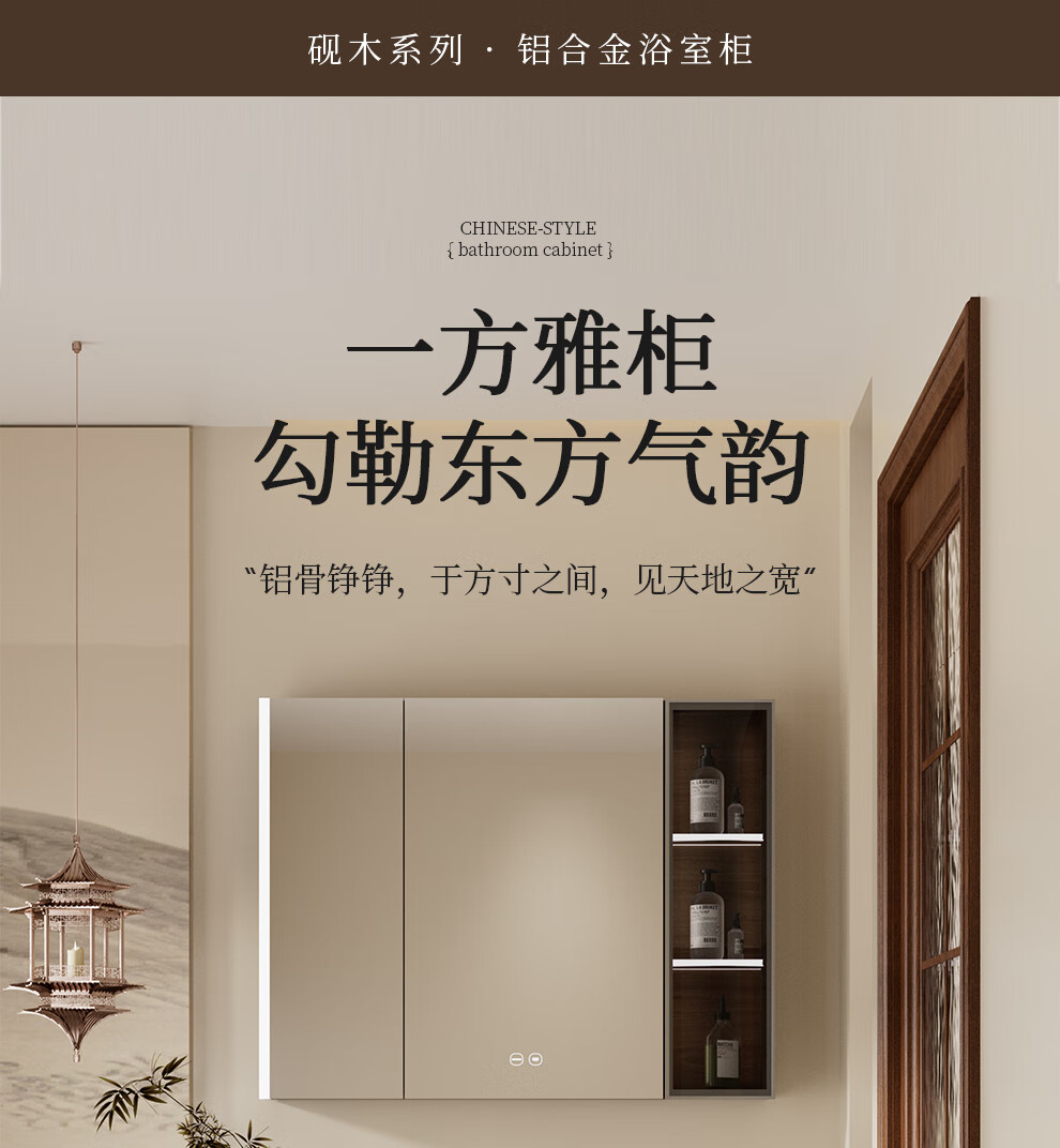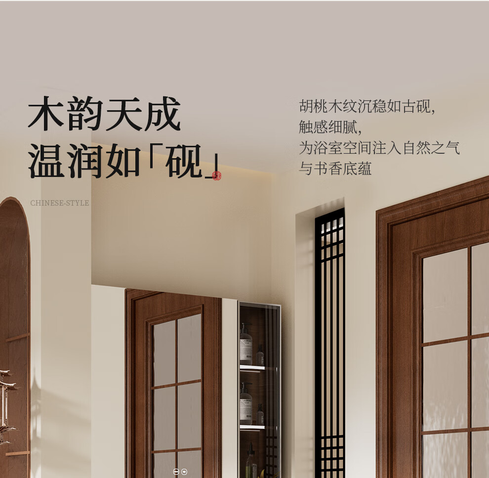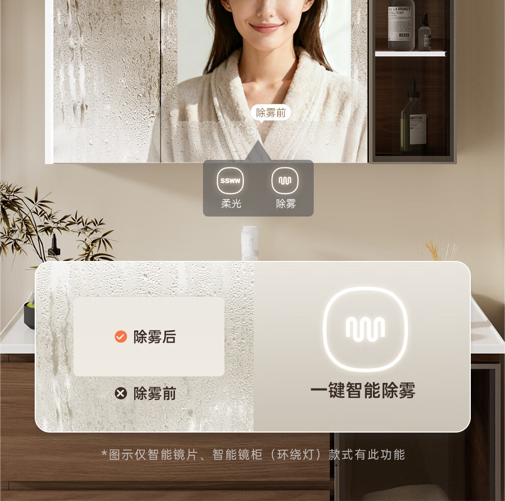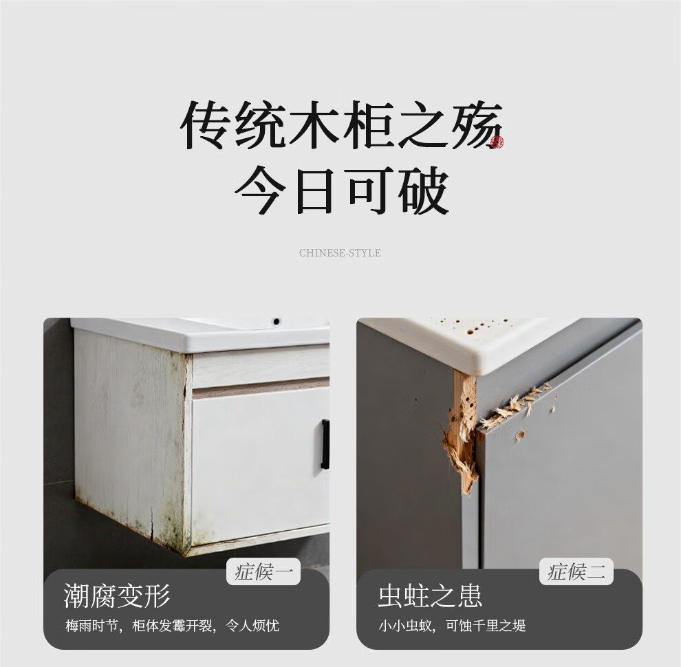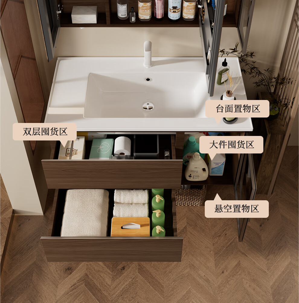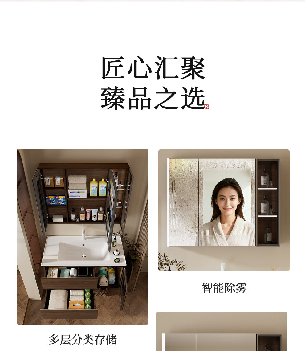 浪鲸(SSWW)卫浴中古风浴室柜砚木系列陶瓷一体盆洗脸盆柜组合铝合金浴室柜 【砚木系列】极简门智能美妆除雾镜柜-80cm 不含龙头配件