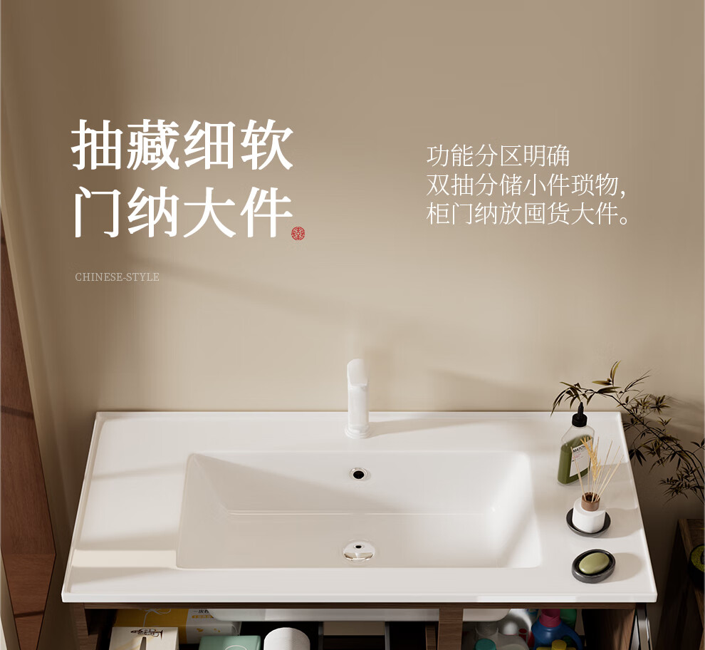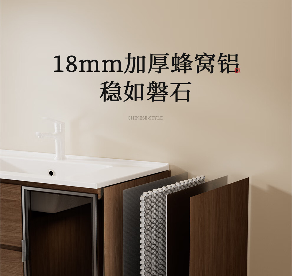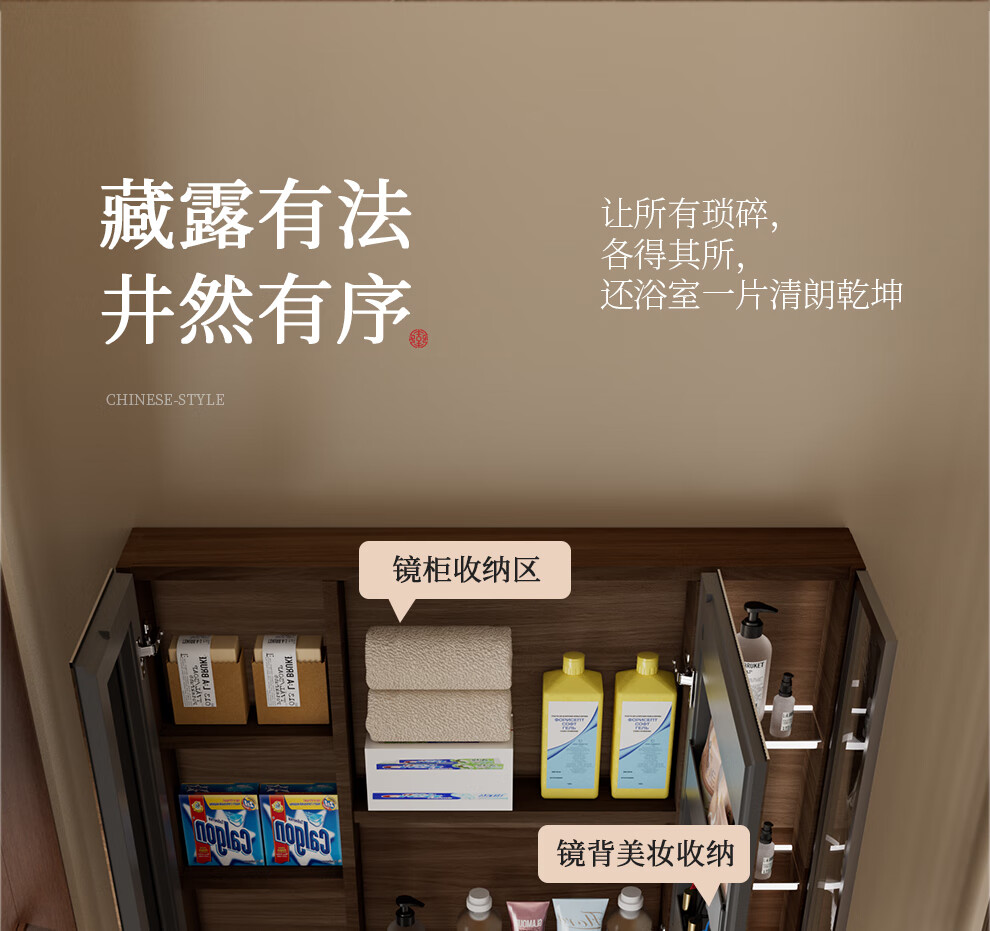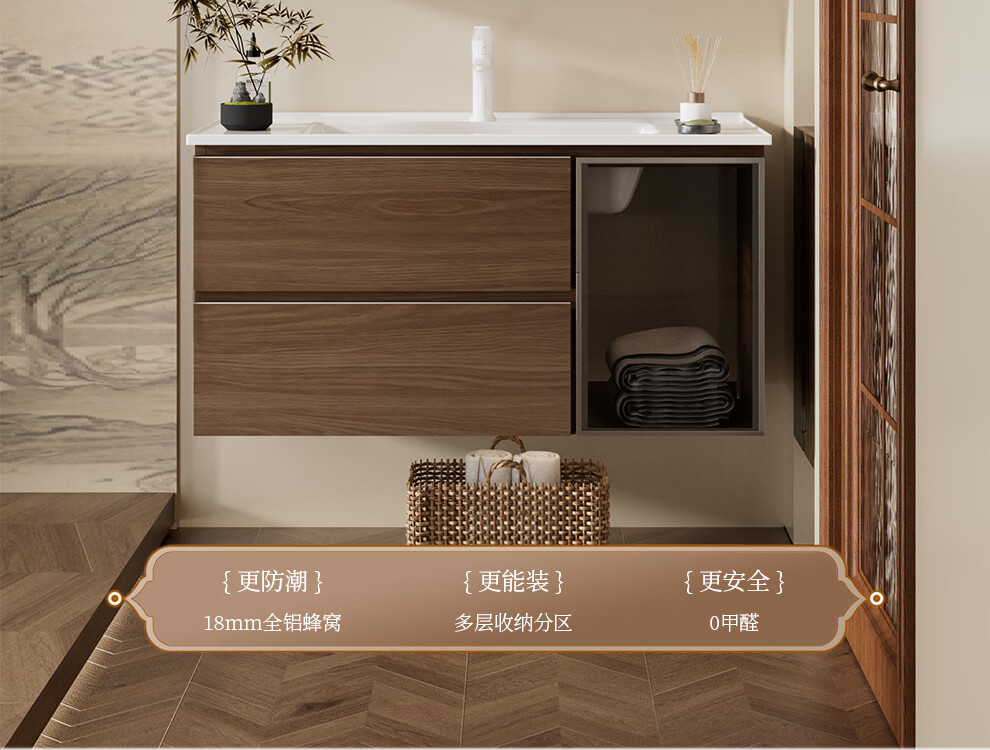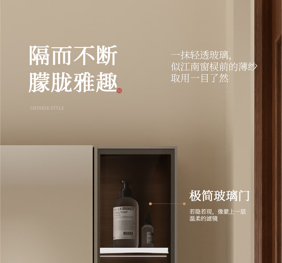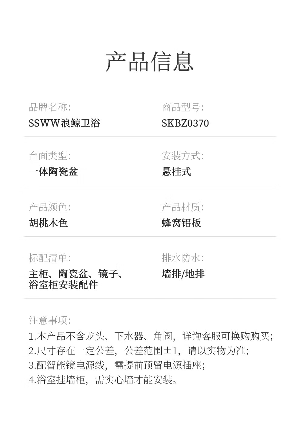 浪鲸(SSWW)卫浴中古风浴室柜砚木系列陶瓷一体盆洗脸盆柜组合铝合金浴室柜 【砚木系列】极简门智能美妆除雾镜柜-80cm 不含龙头配件