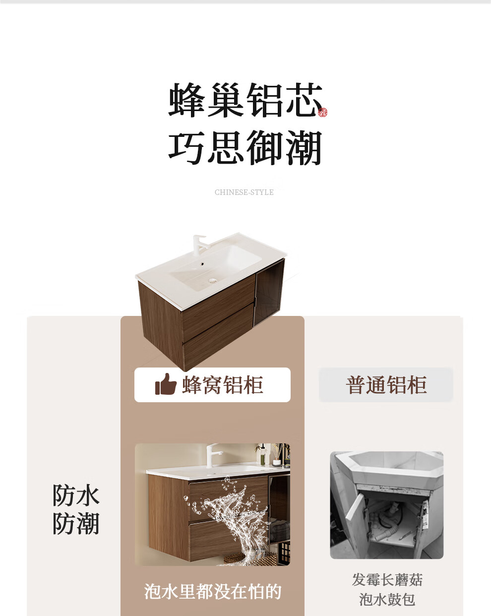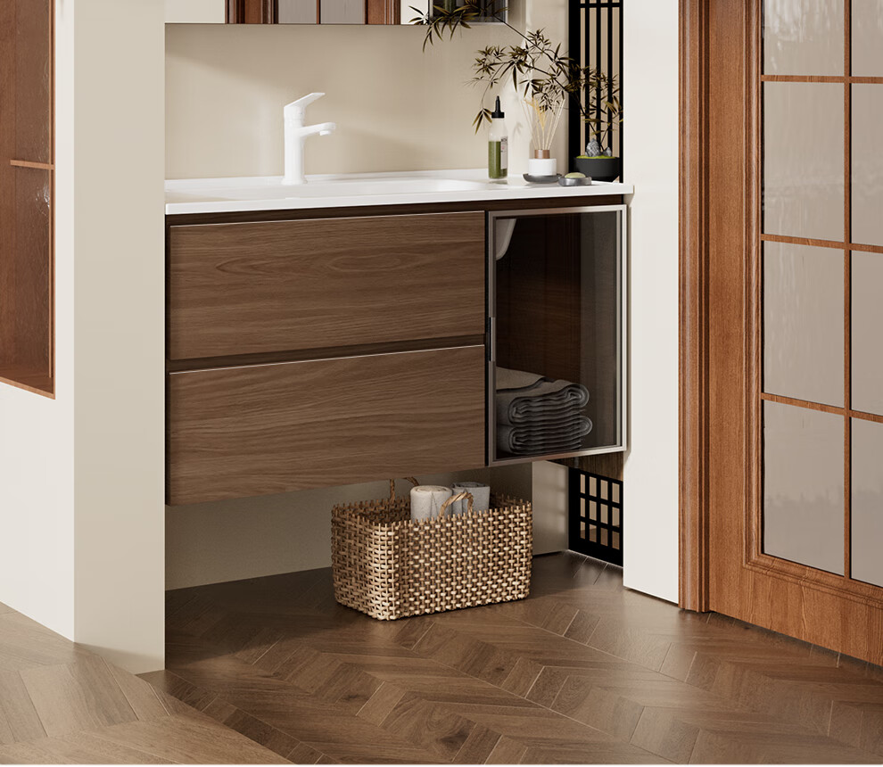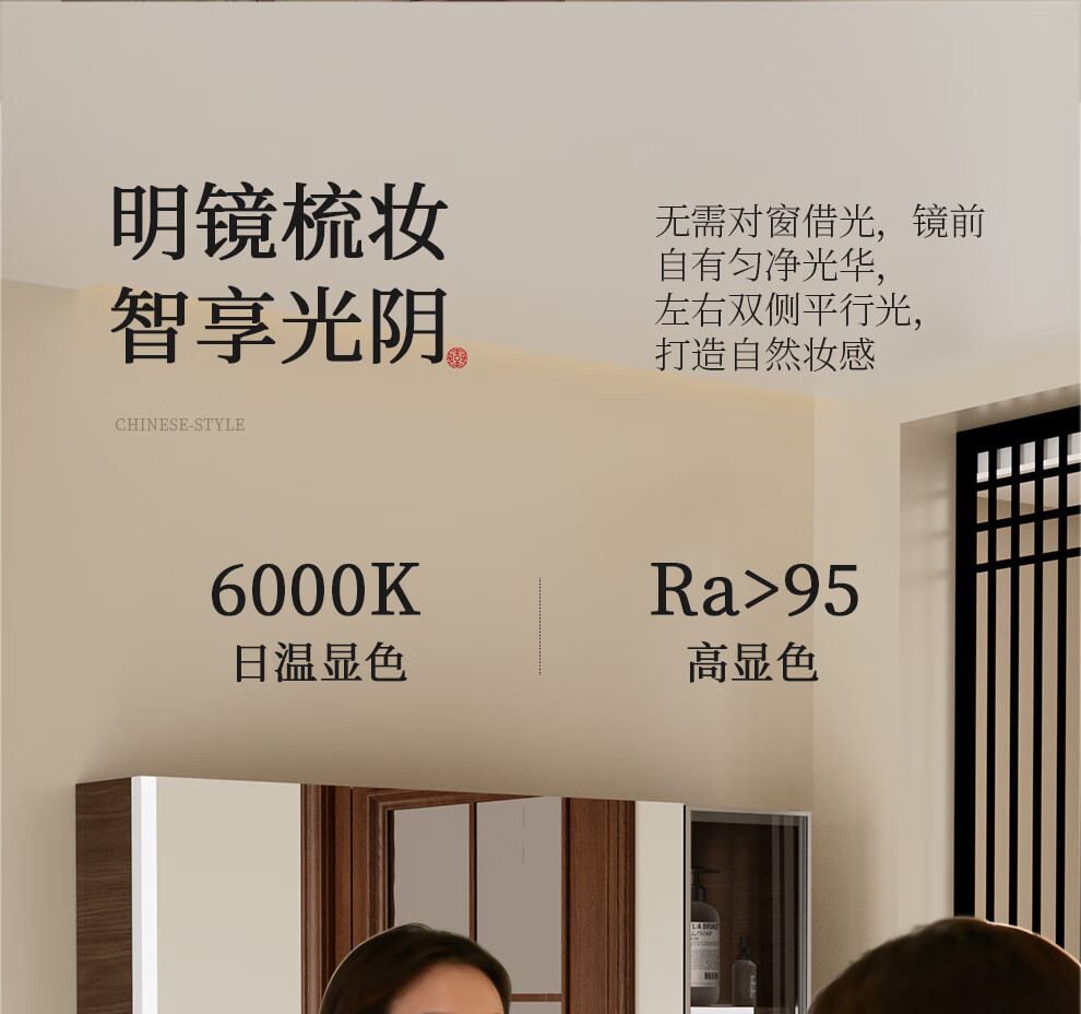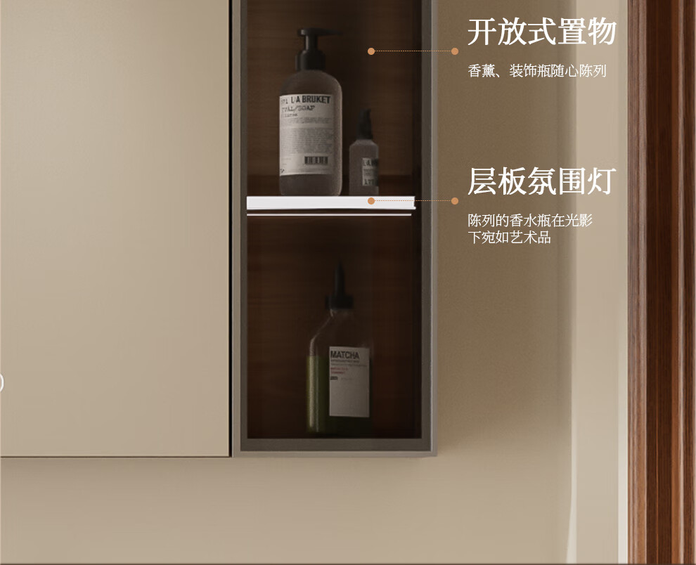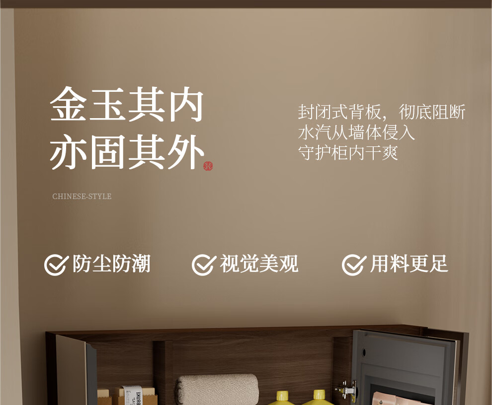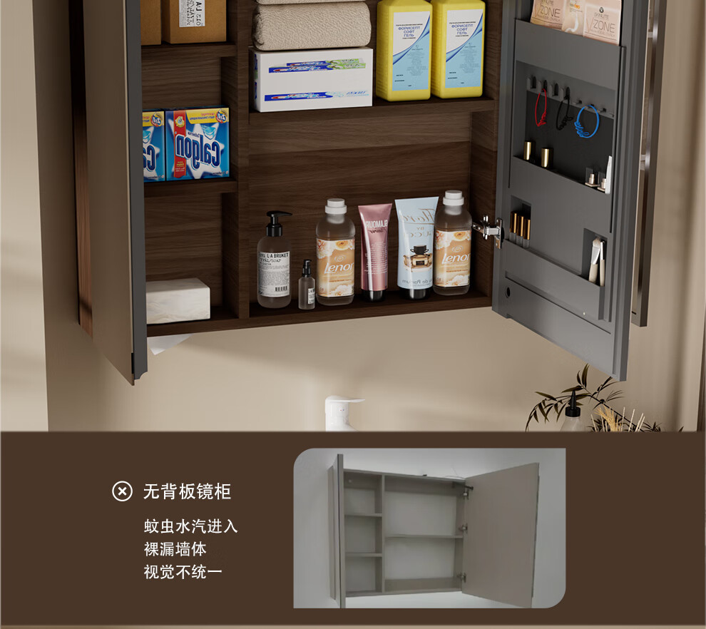 浪鲸(SSWW)卫浴中古风浴室柜砚木系列陶瓷一体盆洗脸盆柜组合铝合金浴室柜 【砚木系列】极简门智能美妆除雾镜柜-80cm 不含龙头配件