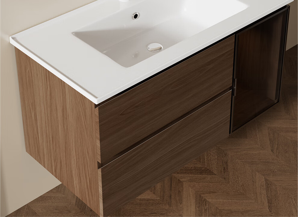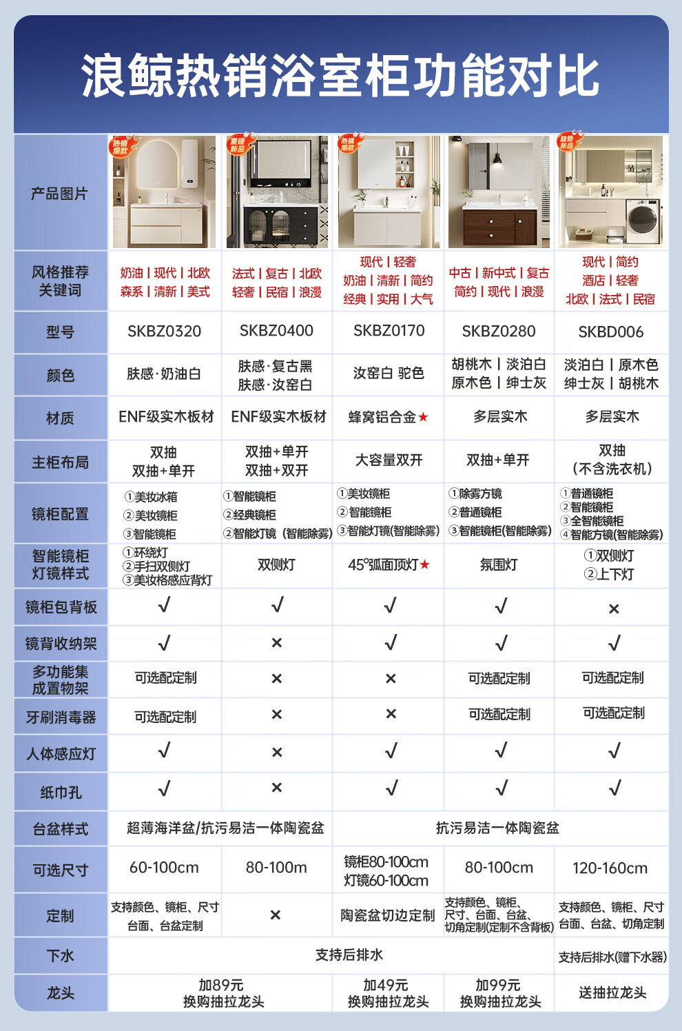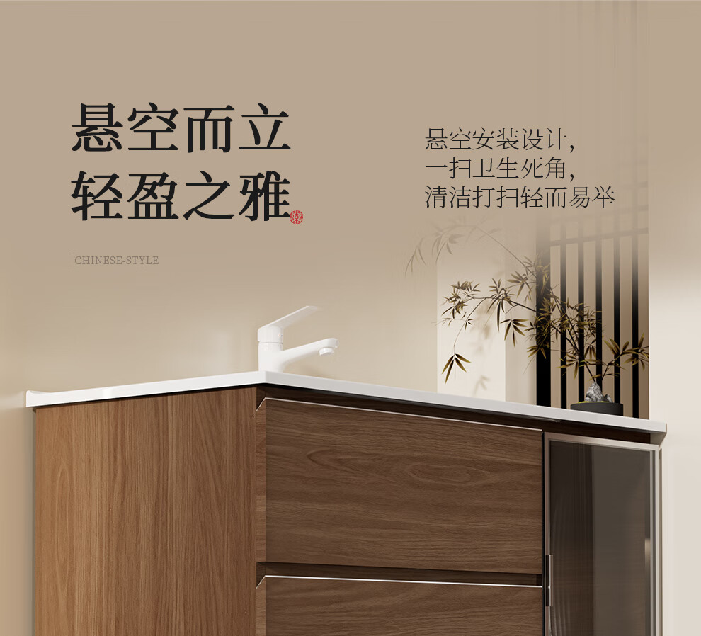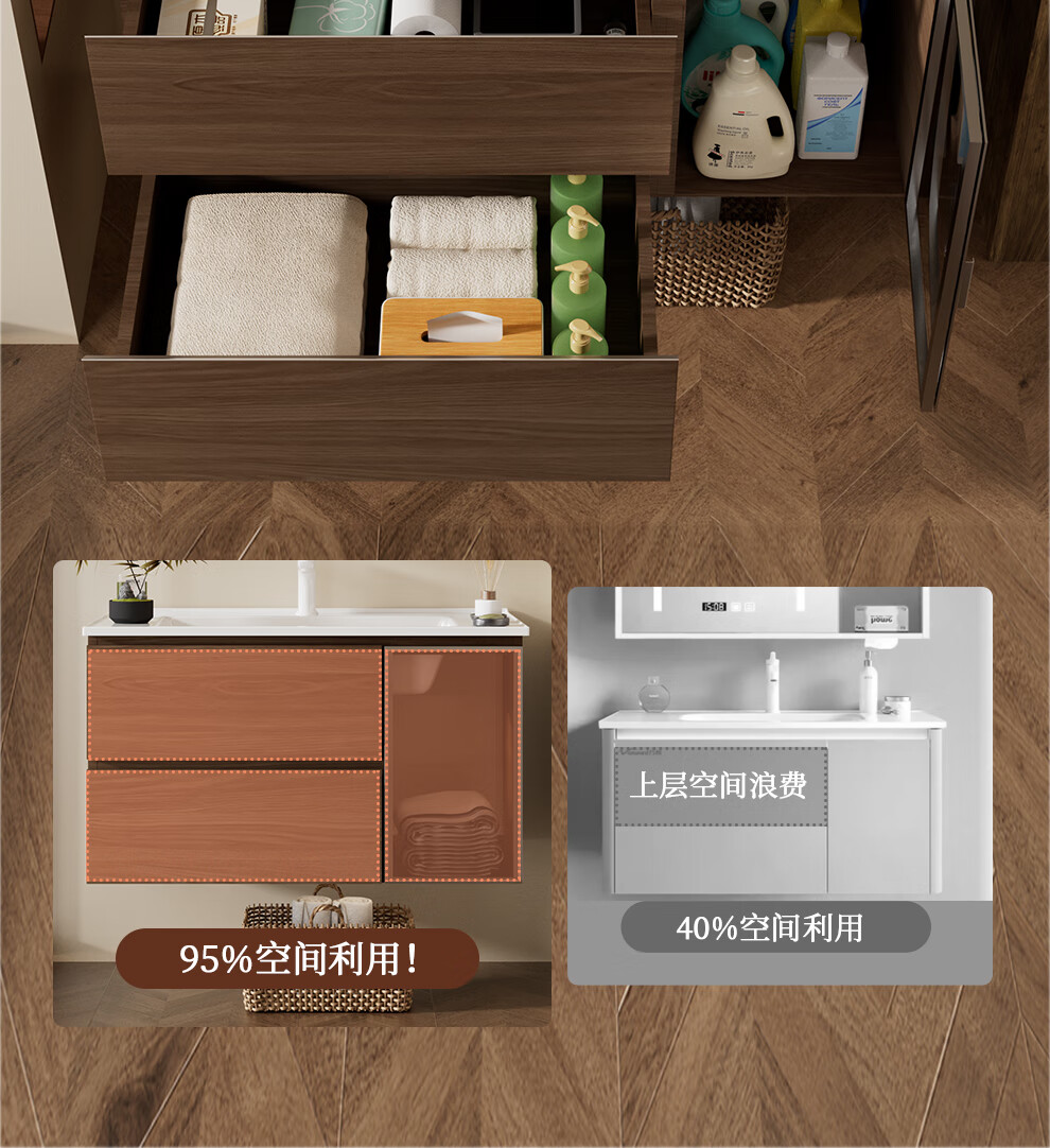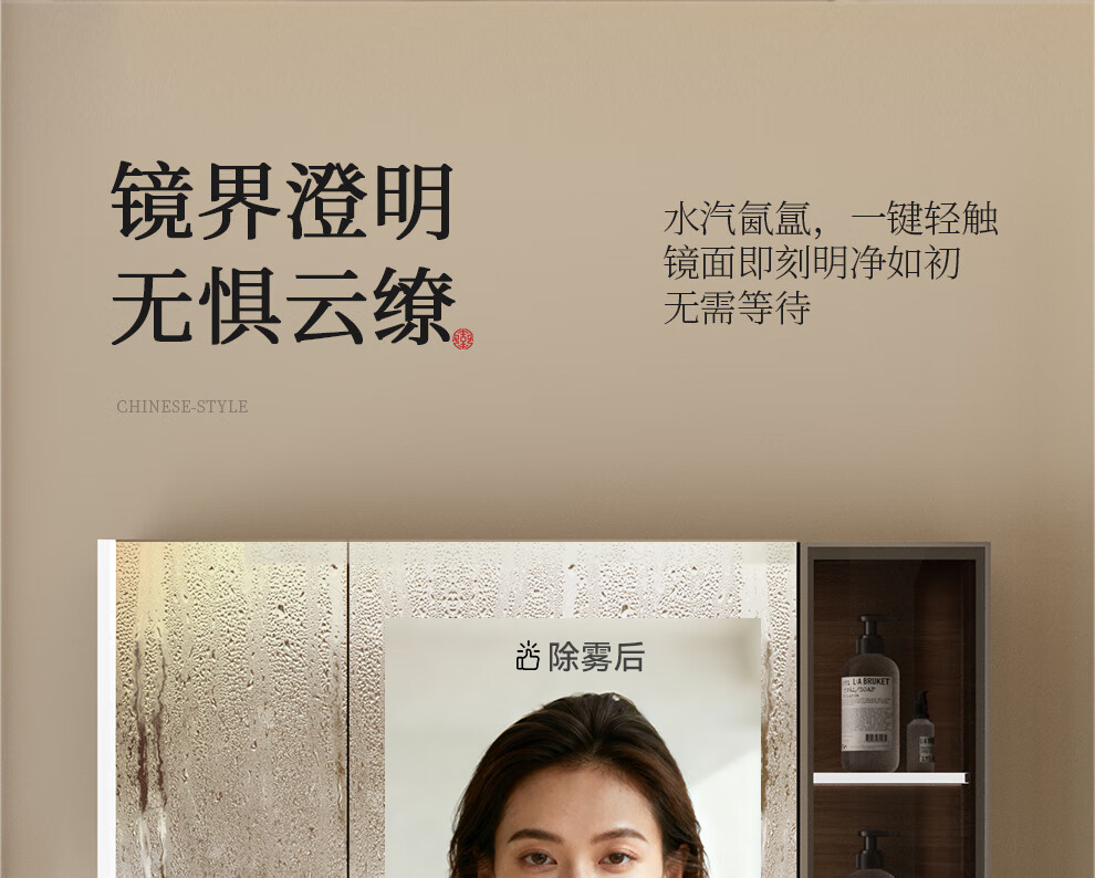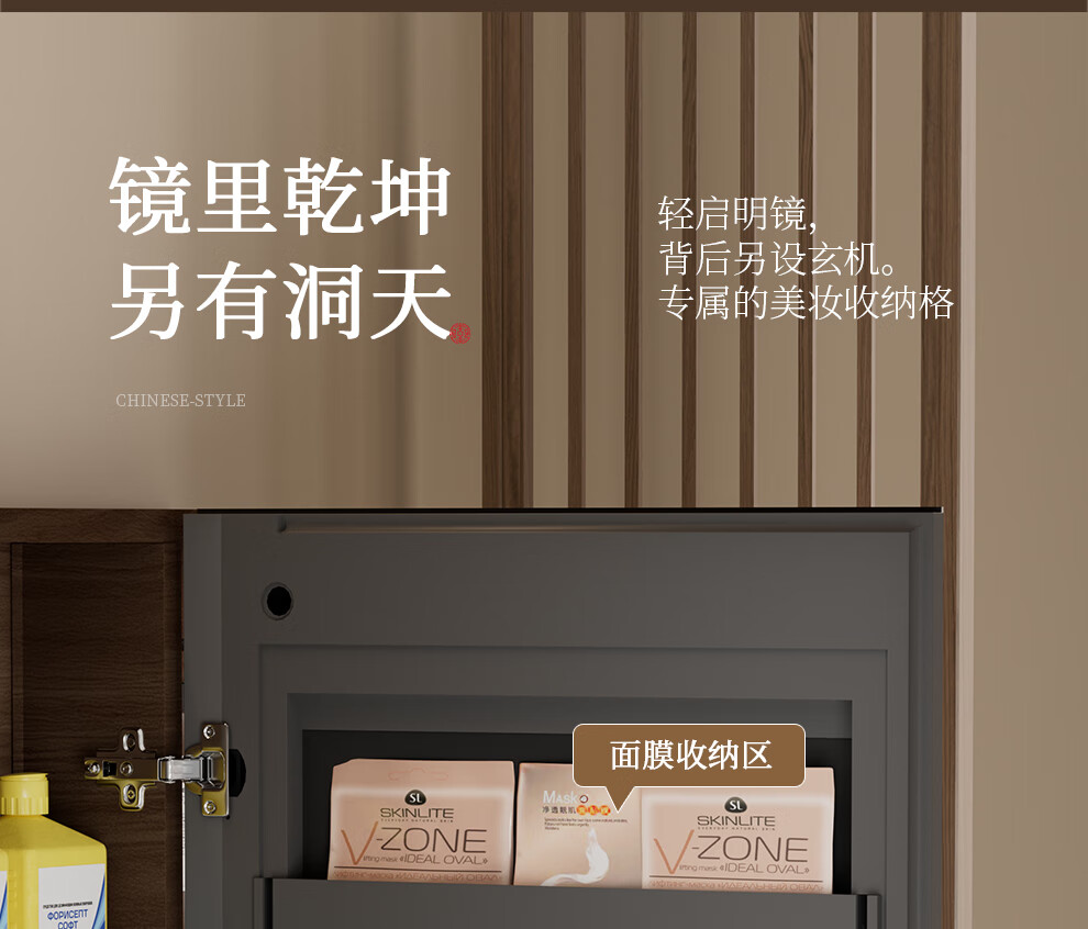浪鲸(SSWW)卫浴中古风浴室柜砚木系列陶瓷一体盆洗脸盆柜组合铝合金浴室柜 【砚木系列】极简门智能美妆除雾镜柜-80cm 不含龙头配件