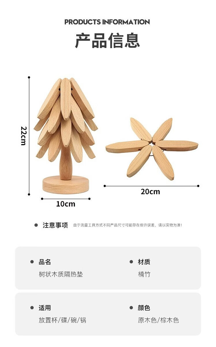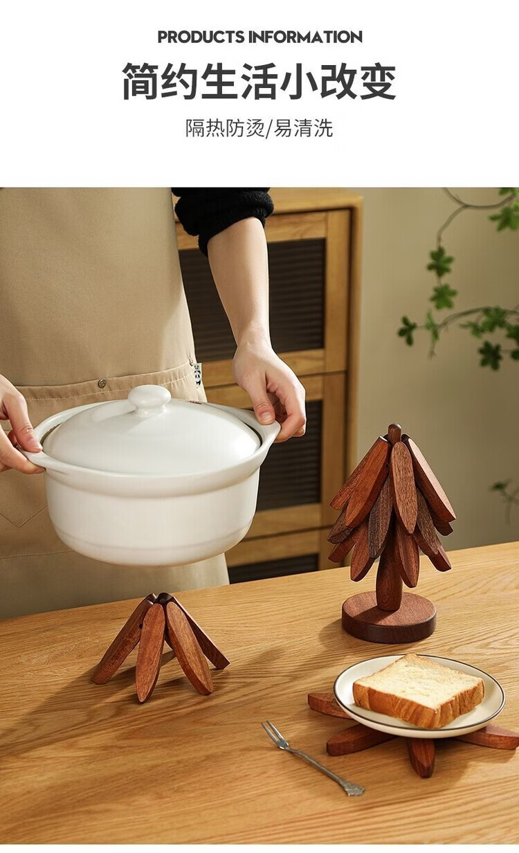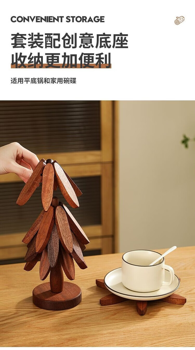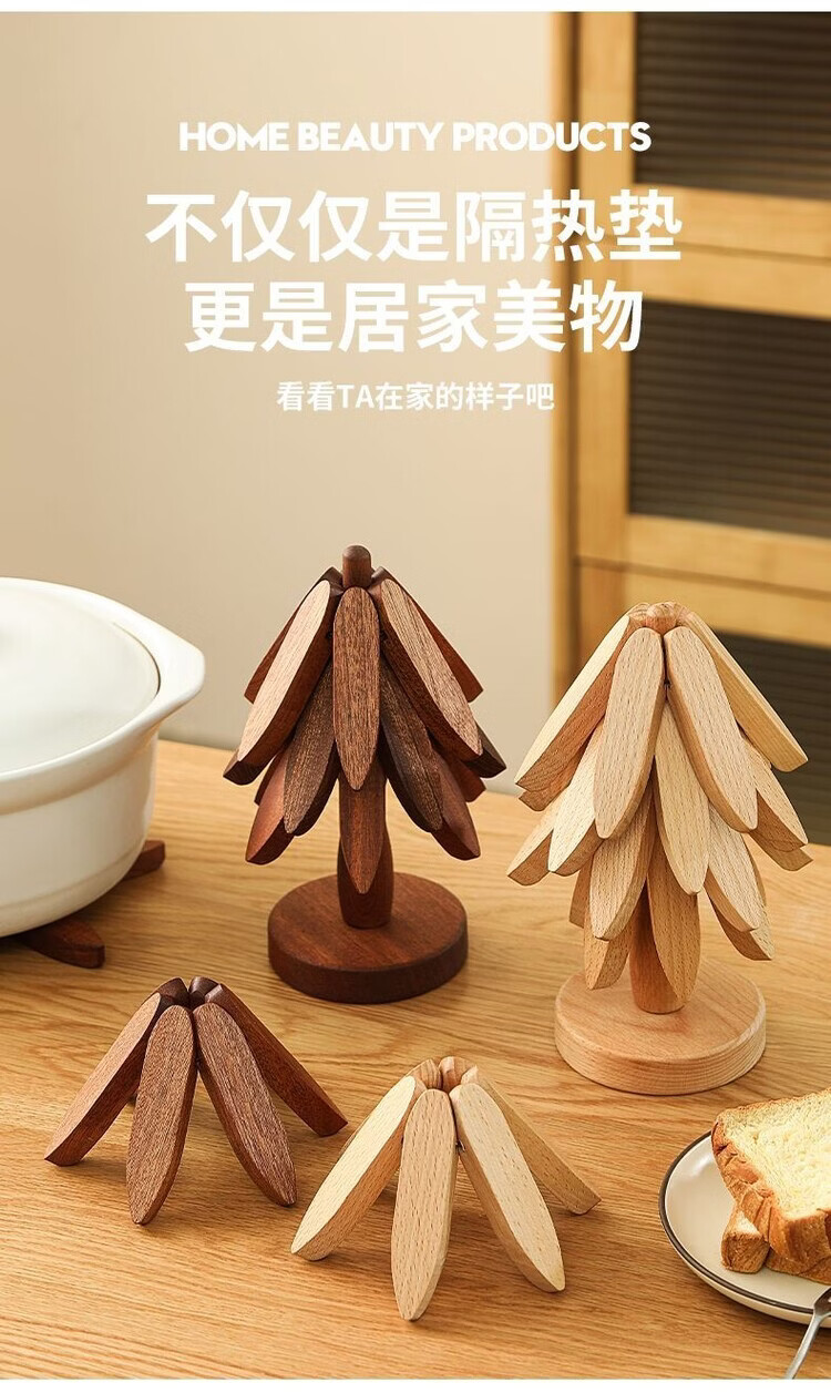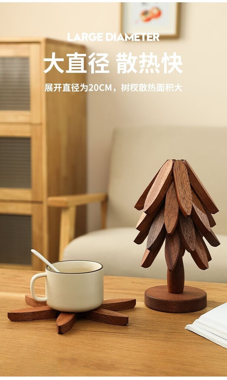 咏夏高级感圣诞树一棵树隔热垫实质创意餐桌小树形防烫杯垫锅垫碗垫 胡桃色 套装【三片+底座】