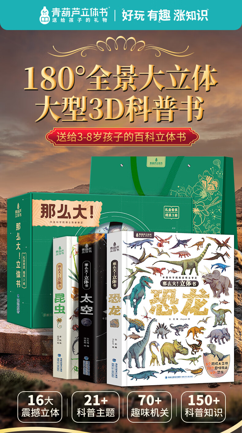 青葫芦那么大恐龙立体书 儿童3d立体绘本2-6-8岁翻翻科普百科全书恐龙世界昆虫揭秘太空一年级小学生动物课外故事书籍男女孩玩具节日新年生日礼物 【礼盒装3册 】太空+昆虫+恐龙立体书+音频卡