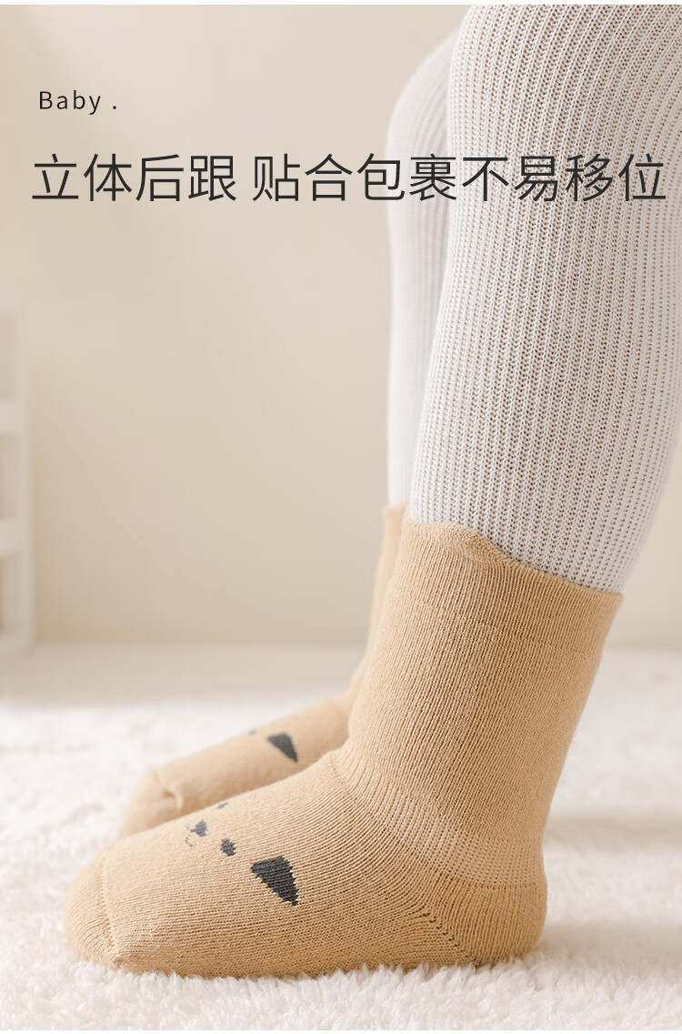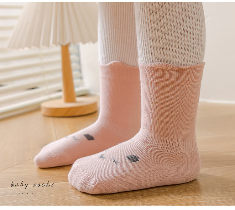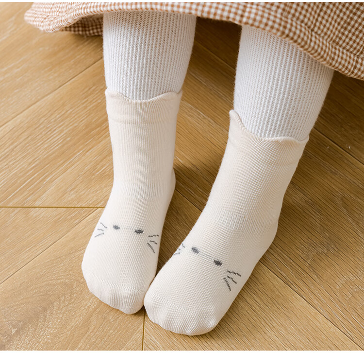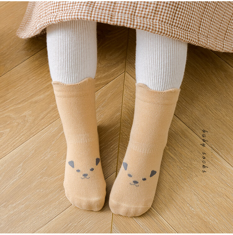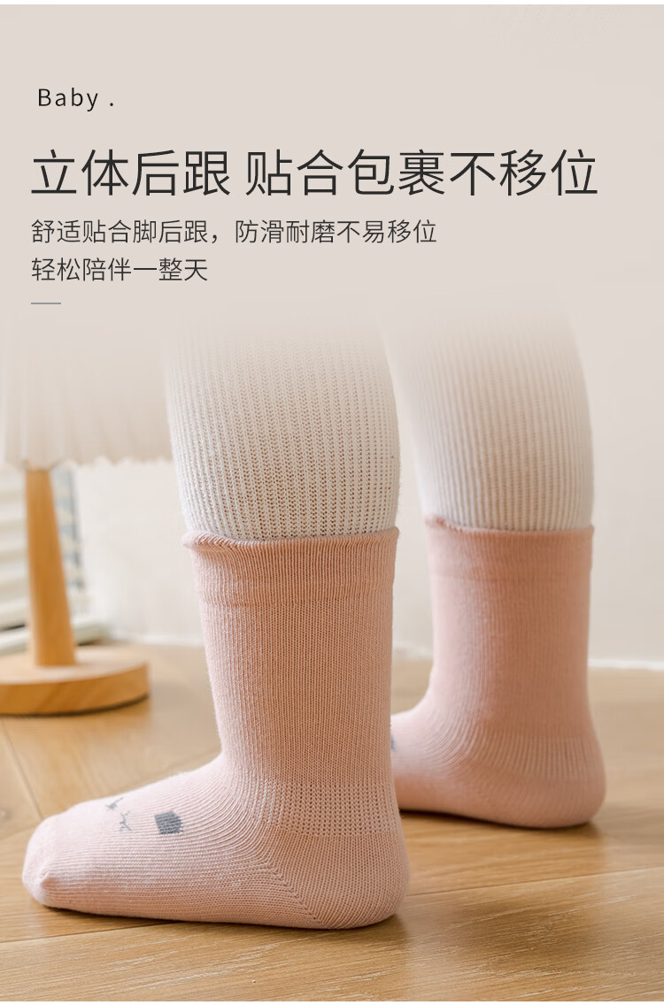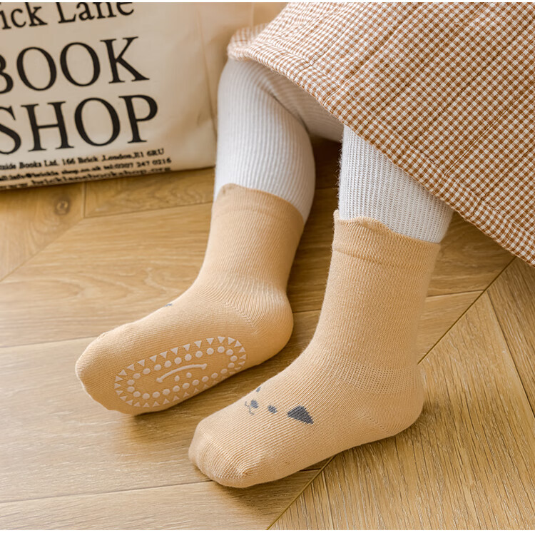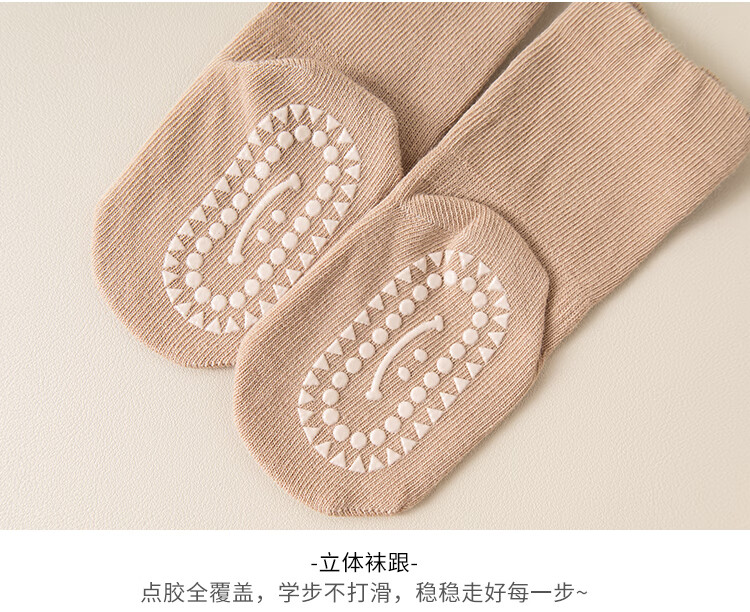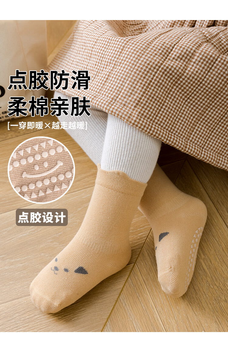 caramella袜子女童男童中筒袜棉袜地板袜亲肤透气宝宝袜舒适耐穿 B020点胶女童款(不带毛圈) 1粉1浅卡其1米白 3双 3-5岁 (L)