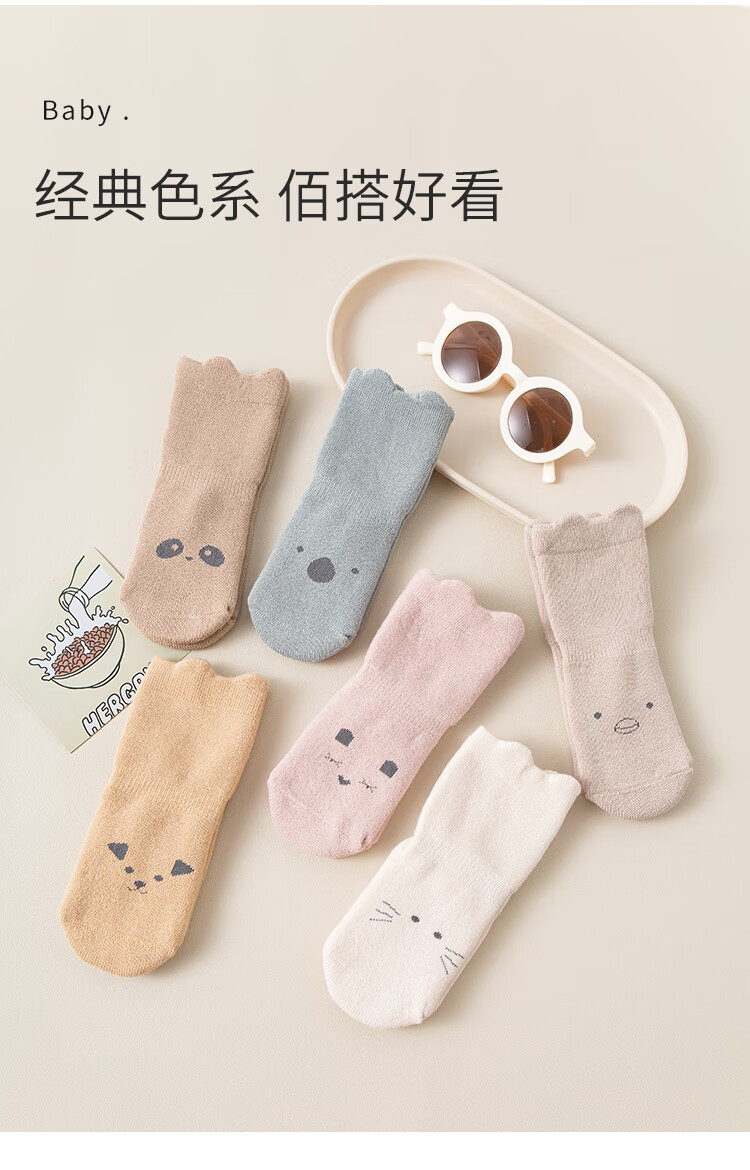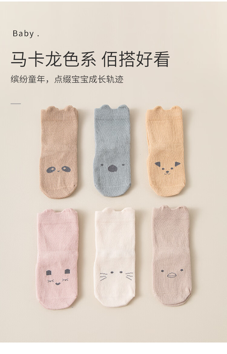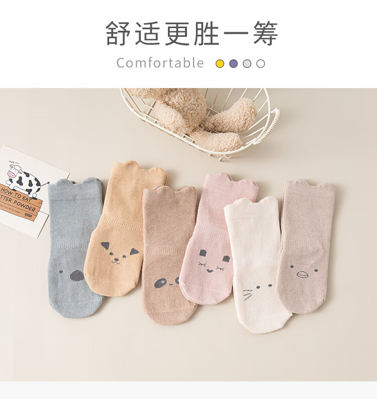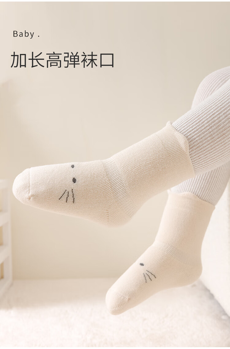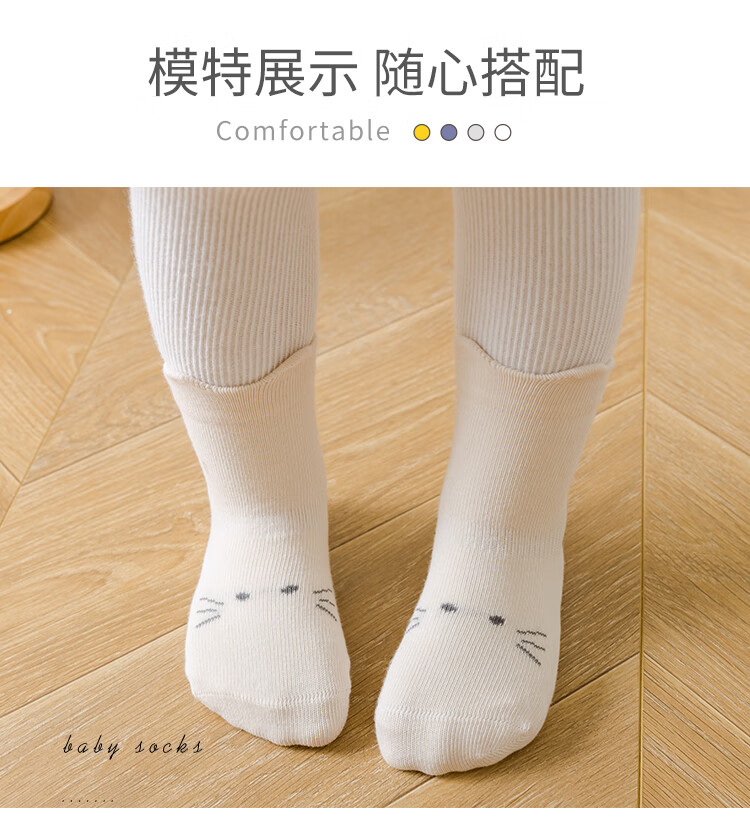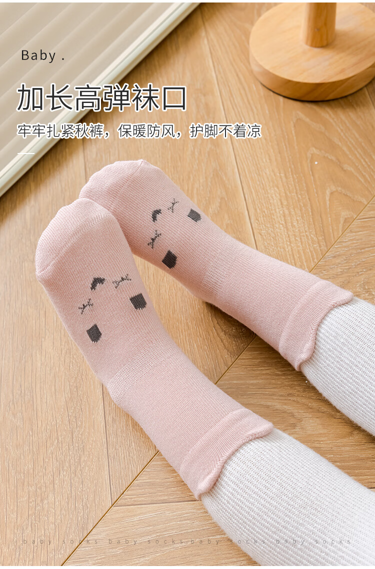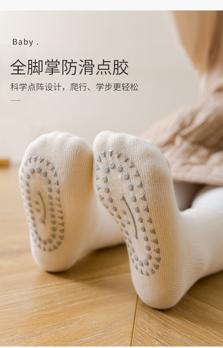 caramella袜子女童男童中筒袜棉袜地板袜亲肤透气宝宝袜舒适耐穿 B020点胶女童款(不带毛圈) 1粉1浅卡其1米白 3双 3-5岁 (L)