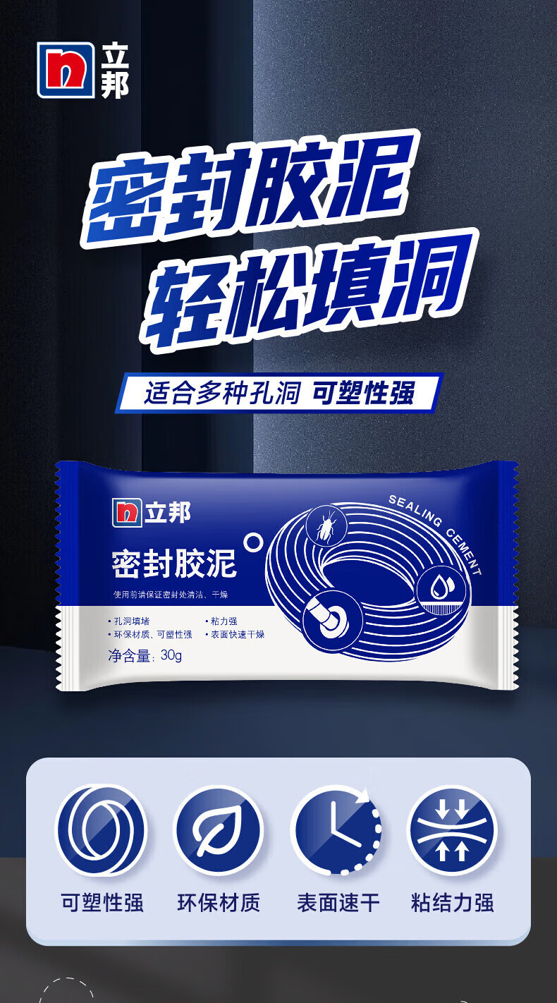 立邦密封胶泥 空调开关孔眼堵洞口孔眼封堵泥 防老鼠防水堵漏胶泥 10包【防霉+0甲醛】油烟机大洞 30g/包