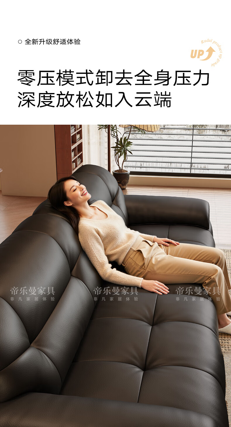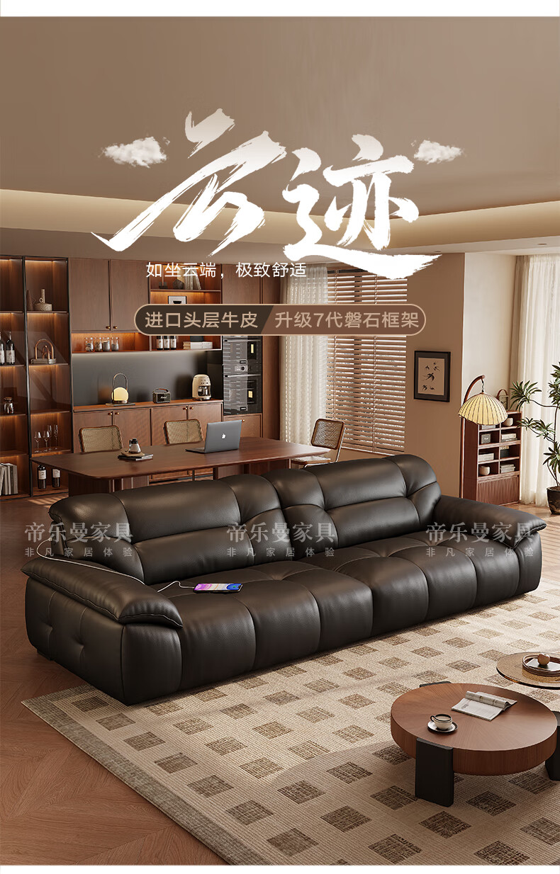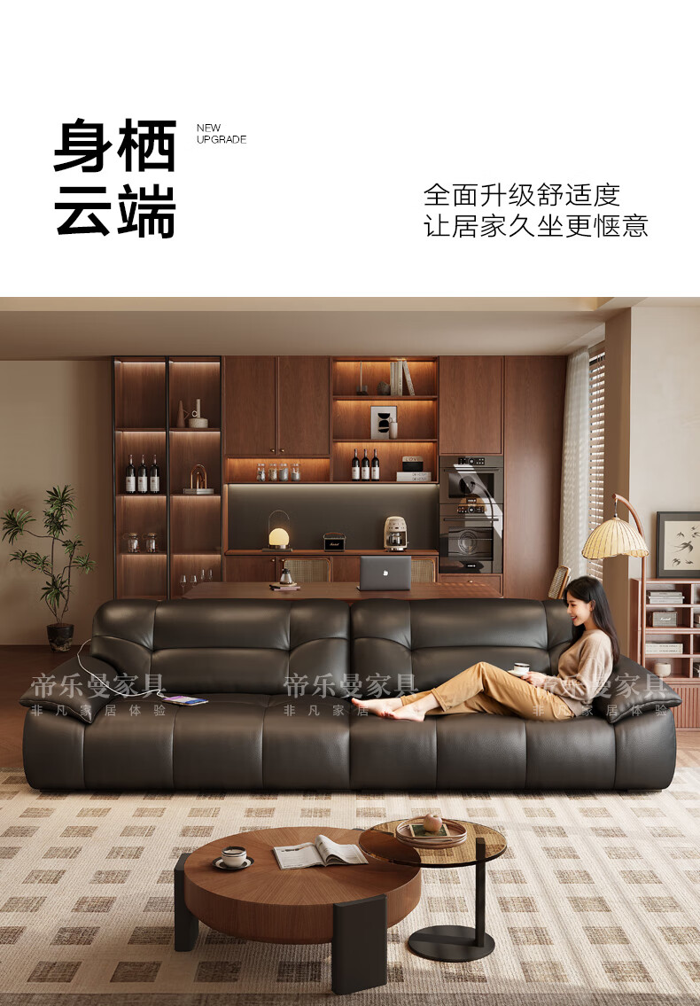帝乐曼意式极简真皮沙发客厅2025新款简约皮艺沙发小户型可充电牛皮沙发 2.6米多人位【重磅迭代 第七代磐石框架】 【接触面】2.4mm进口头层真皮