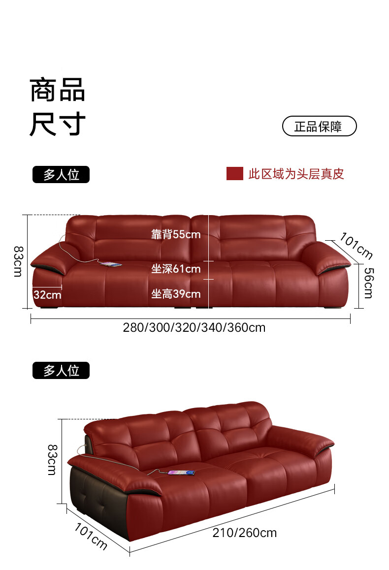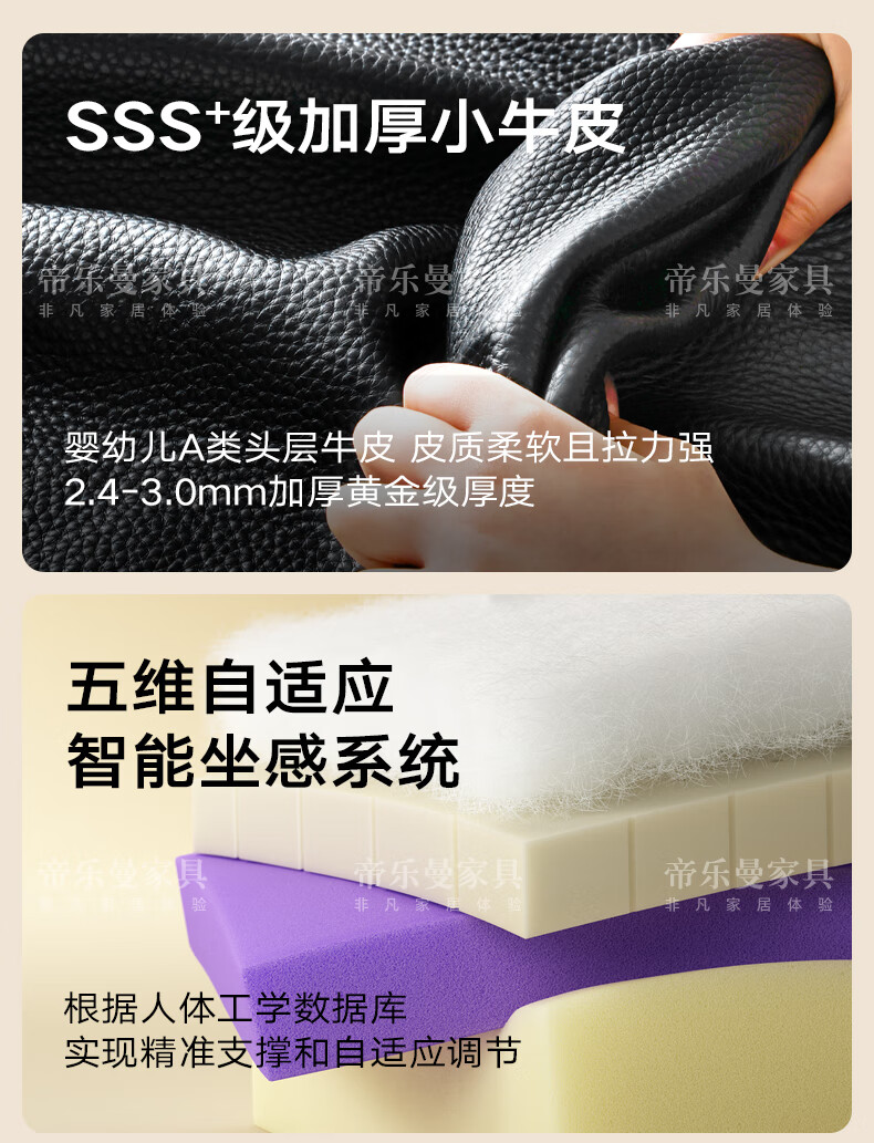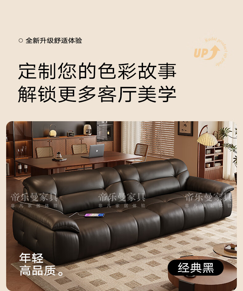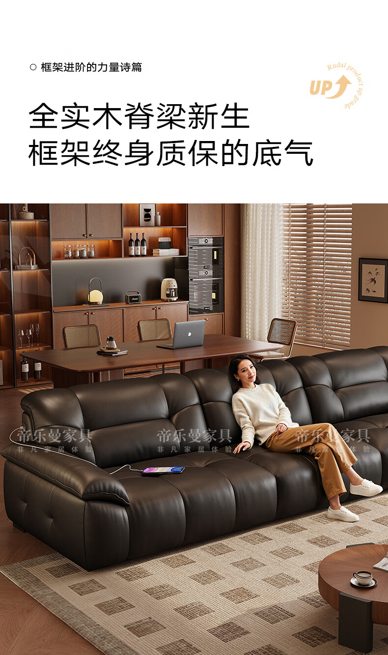 帝乐曼意式极简真皮沙发客厅2025新款简约皮艺沙发小户型可充电牛皮沙发 2.6米多人位【重磅迭代 第七代磐石框架】 【接触面】2.4mm进口头层真皮