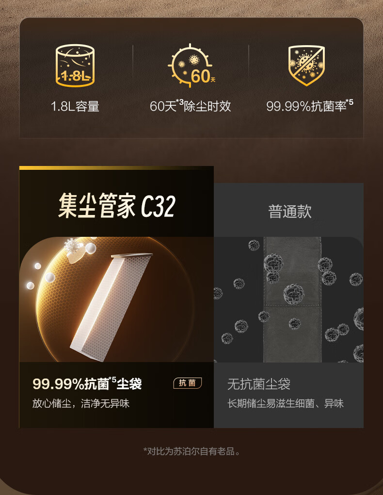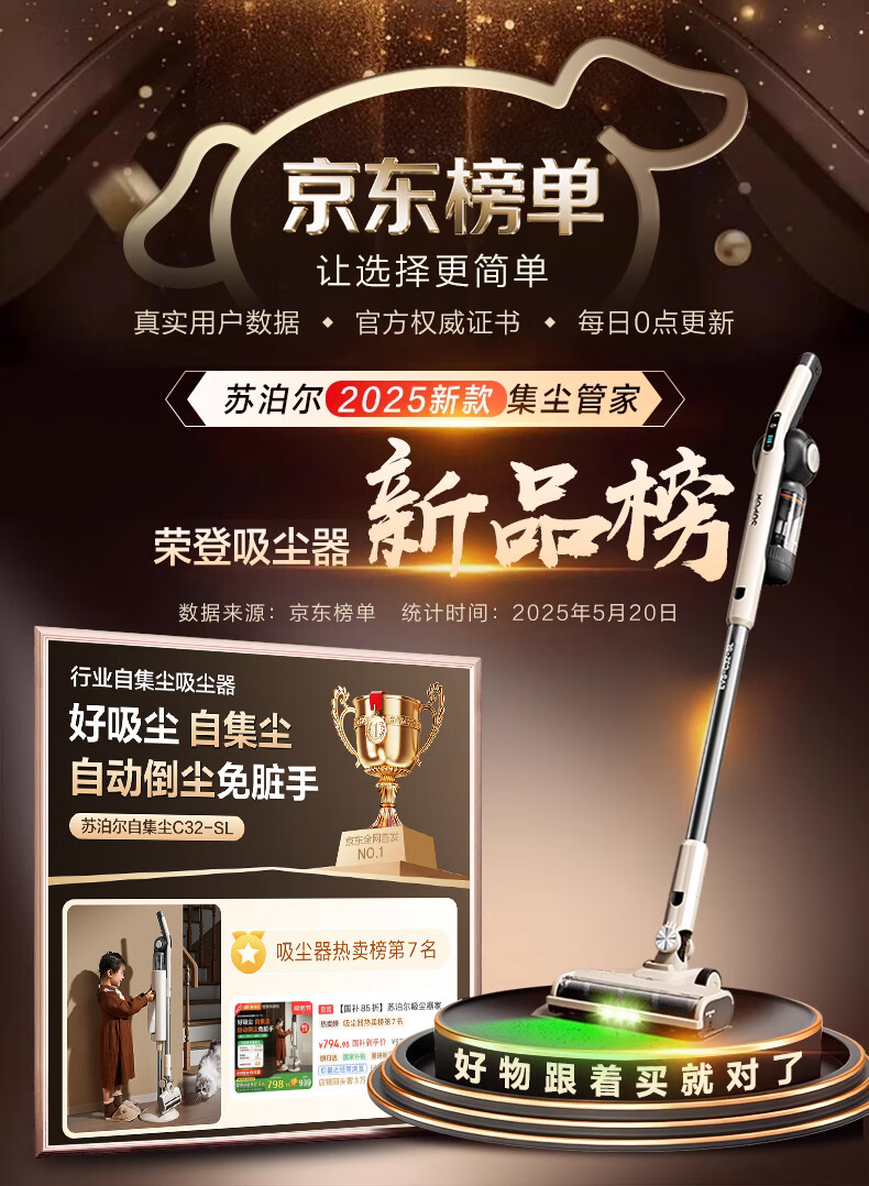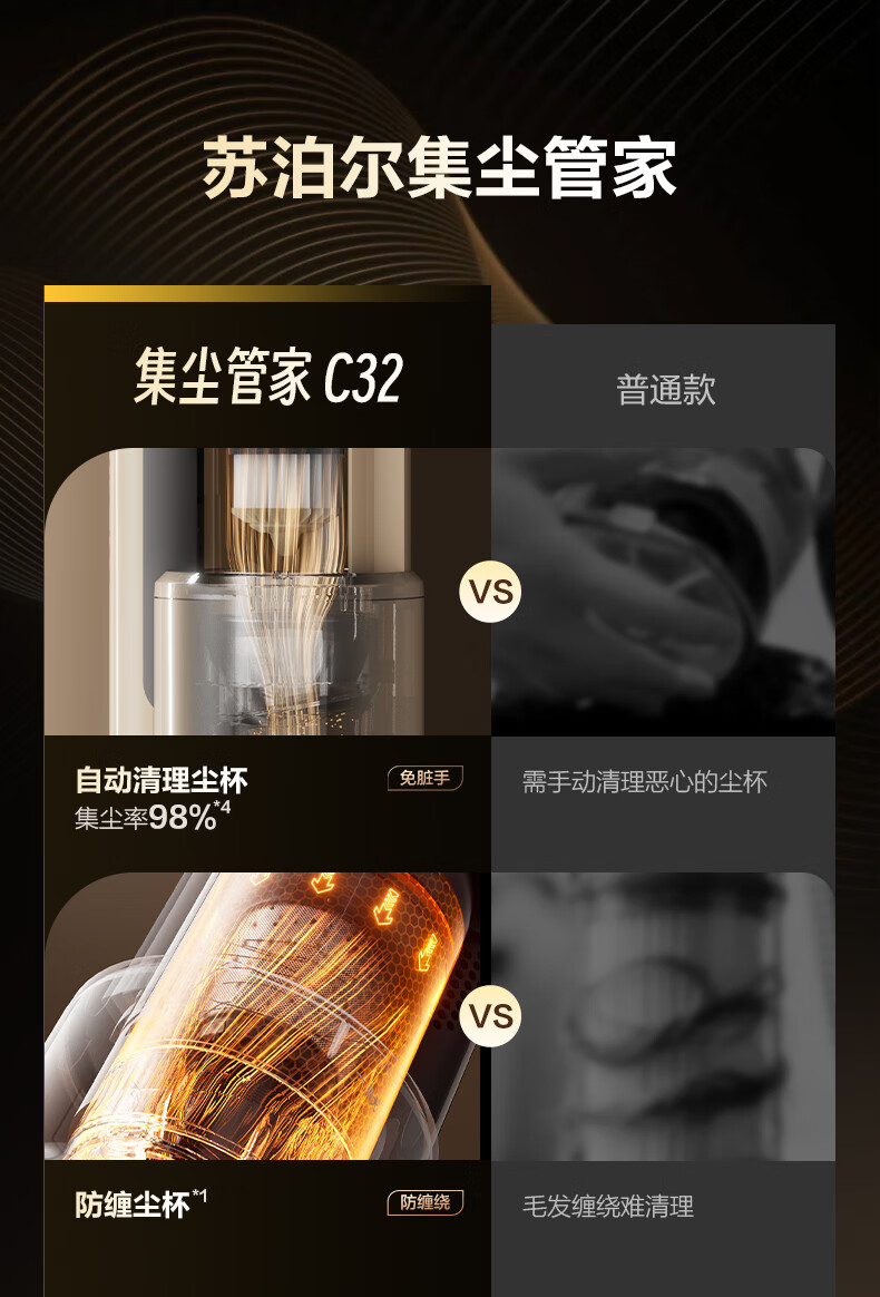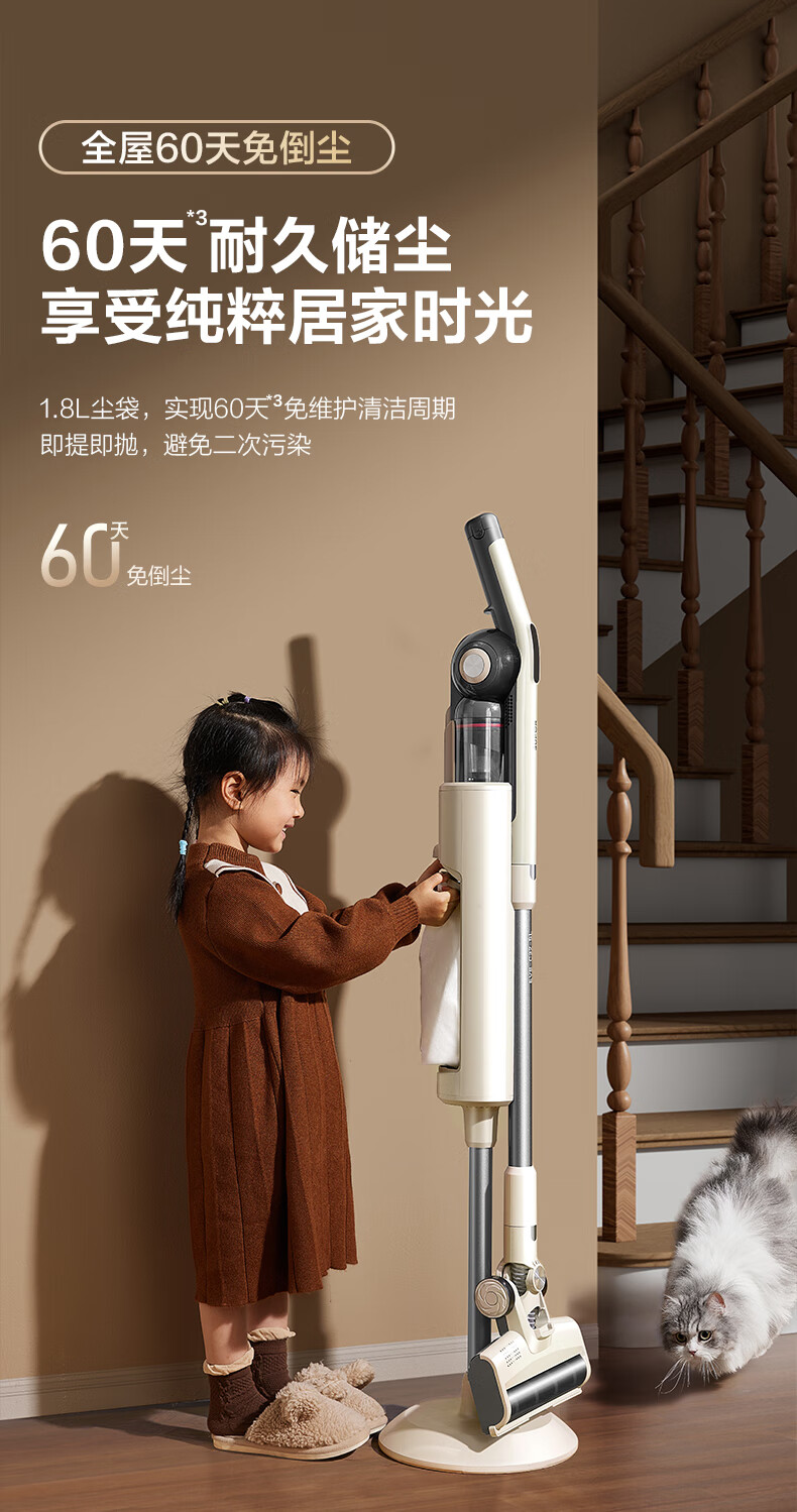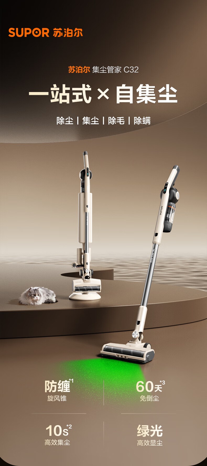 苏泊尔【国家补贴】吸尘器自集尘基站家用手持无线大吸力集尘管家绿光除螨毛发防缠节日礼物C32-SL