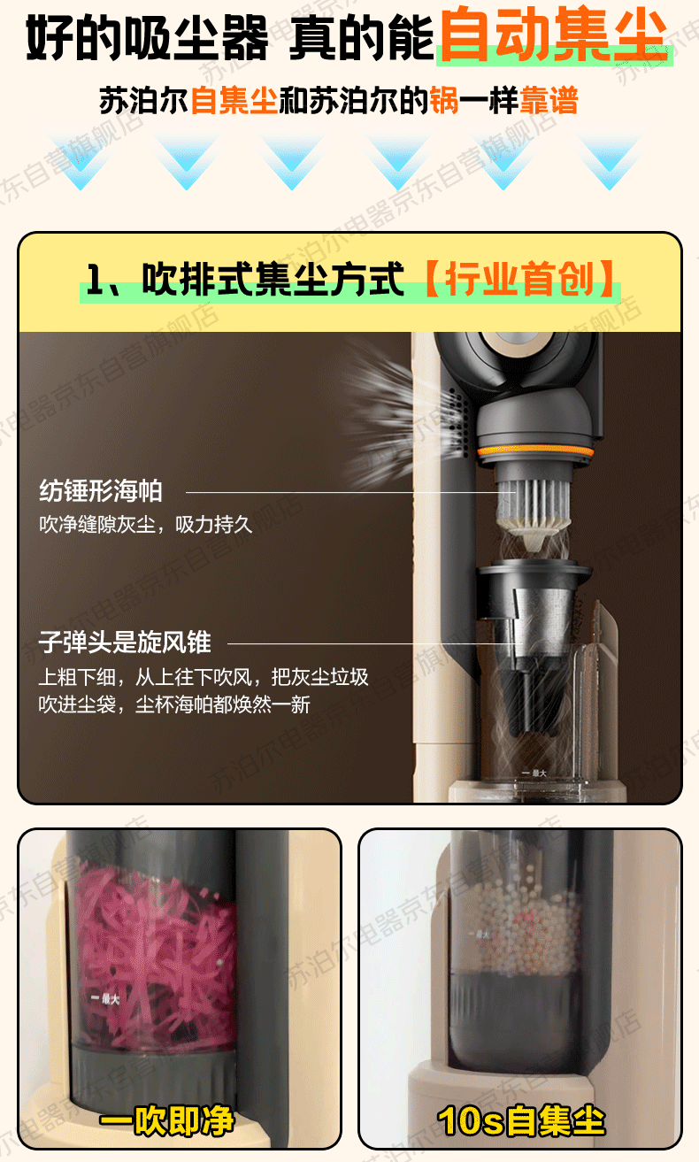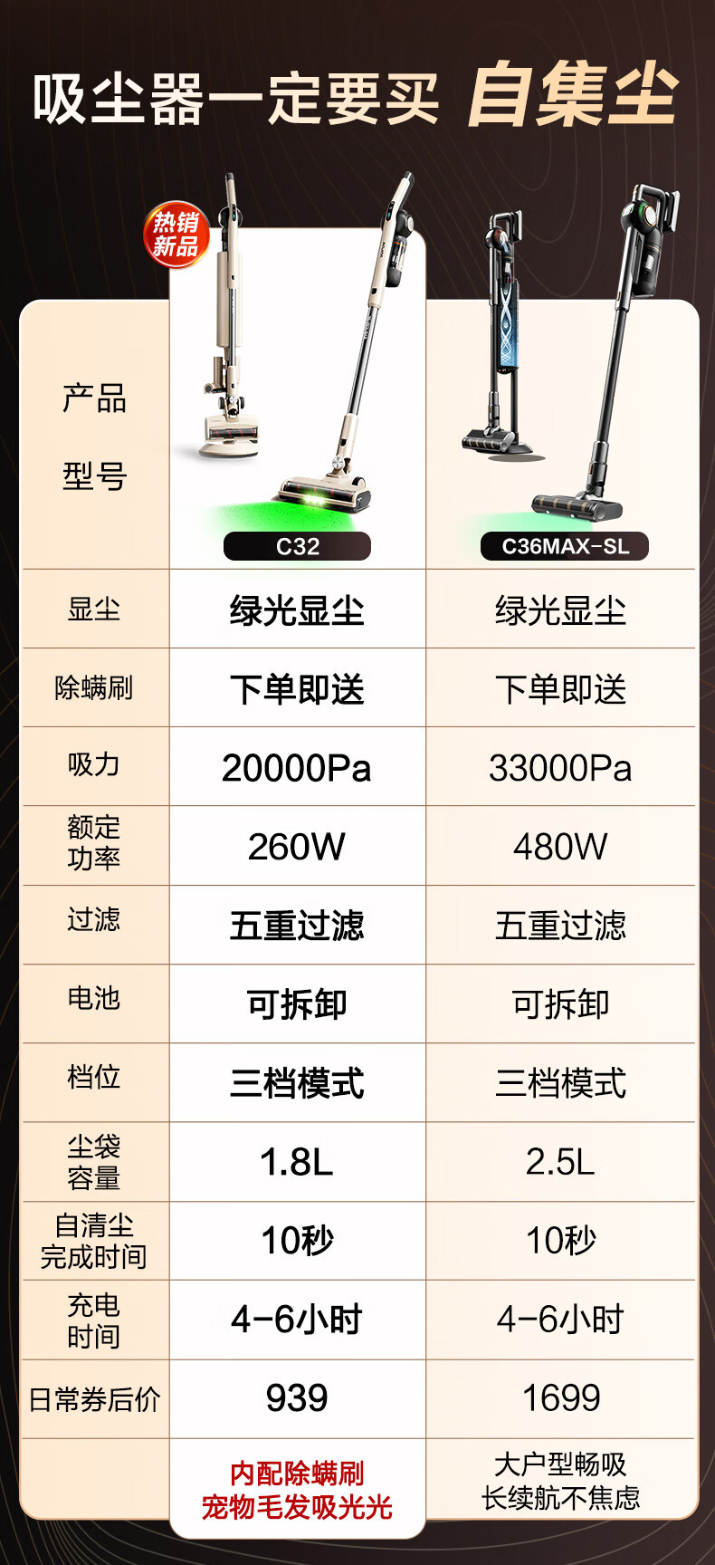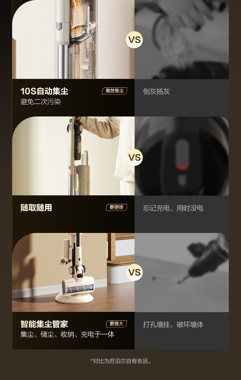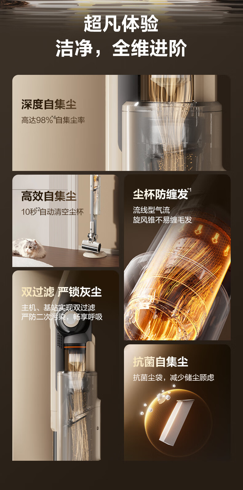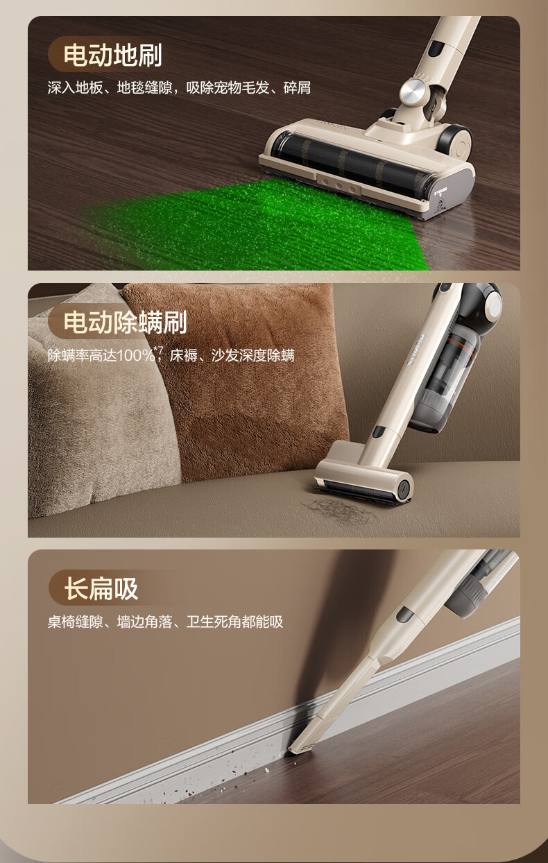 苏泊尔【国家补贴】吸尘器自集尘基站家用手持无线大吸力集尘管家绿光除螨毛发防缠节日礼物C32-SL